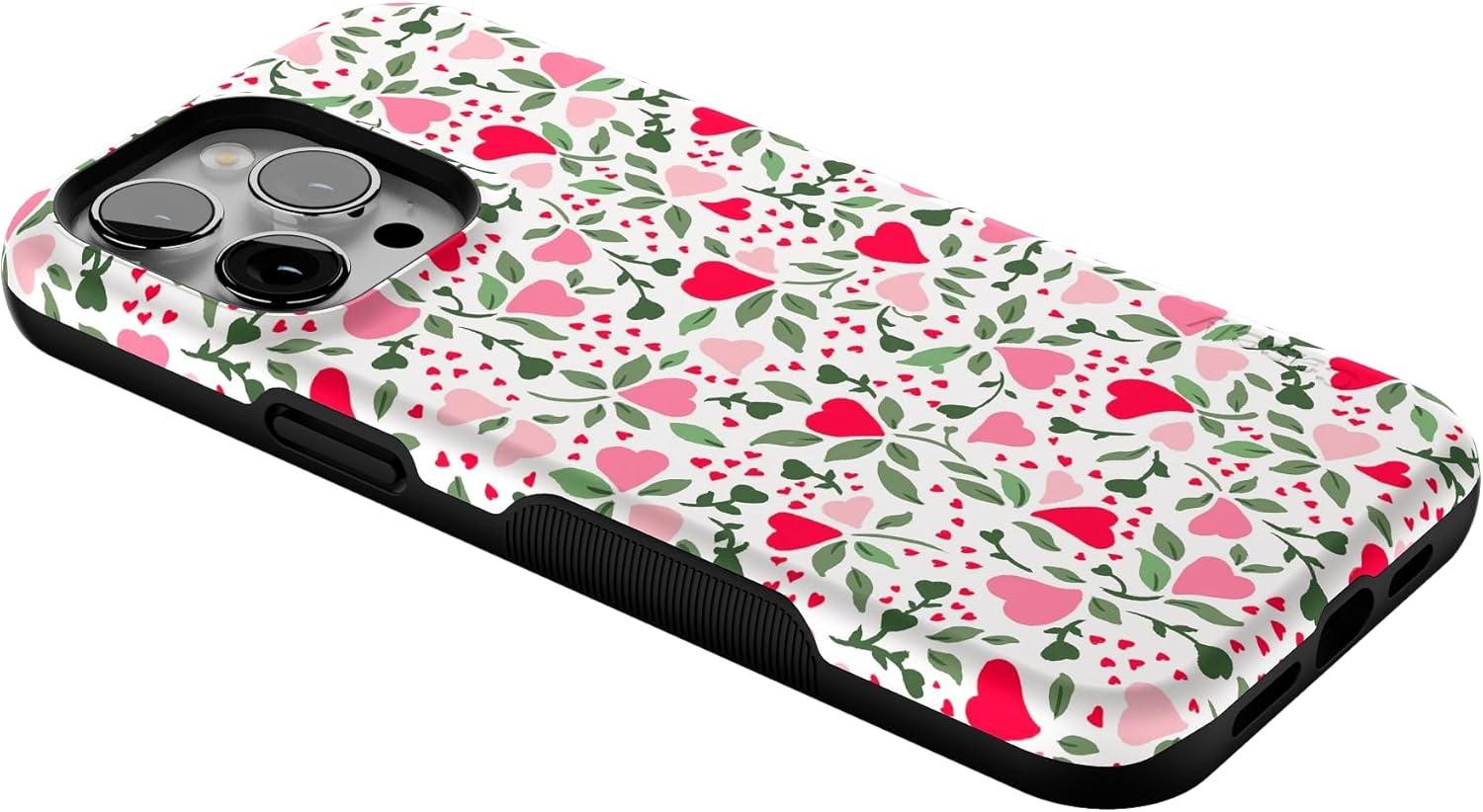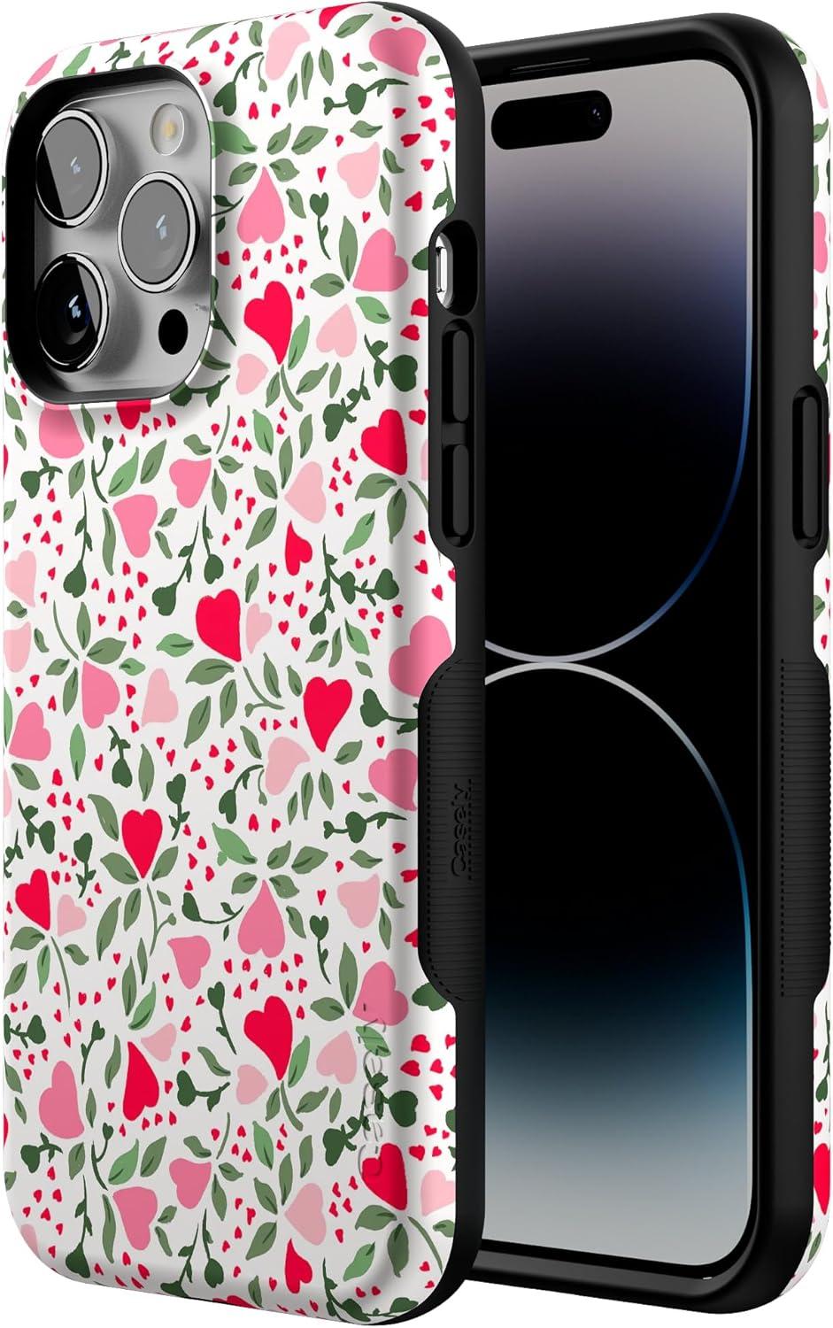 Casely iPhone 14 Pro Max Case | Sunday Best | Pastel Garden | Bold Protective Design | MagSafe Compatible Design(Vines of Love | Floral Heart)