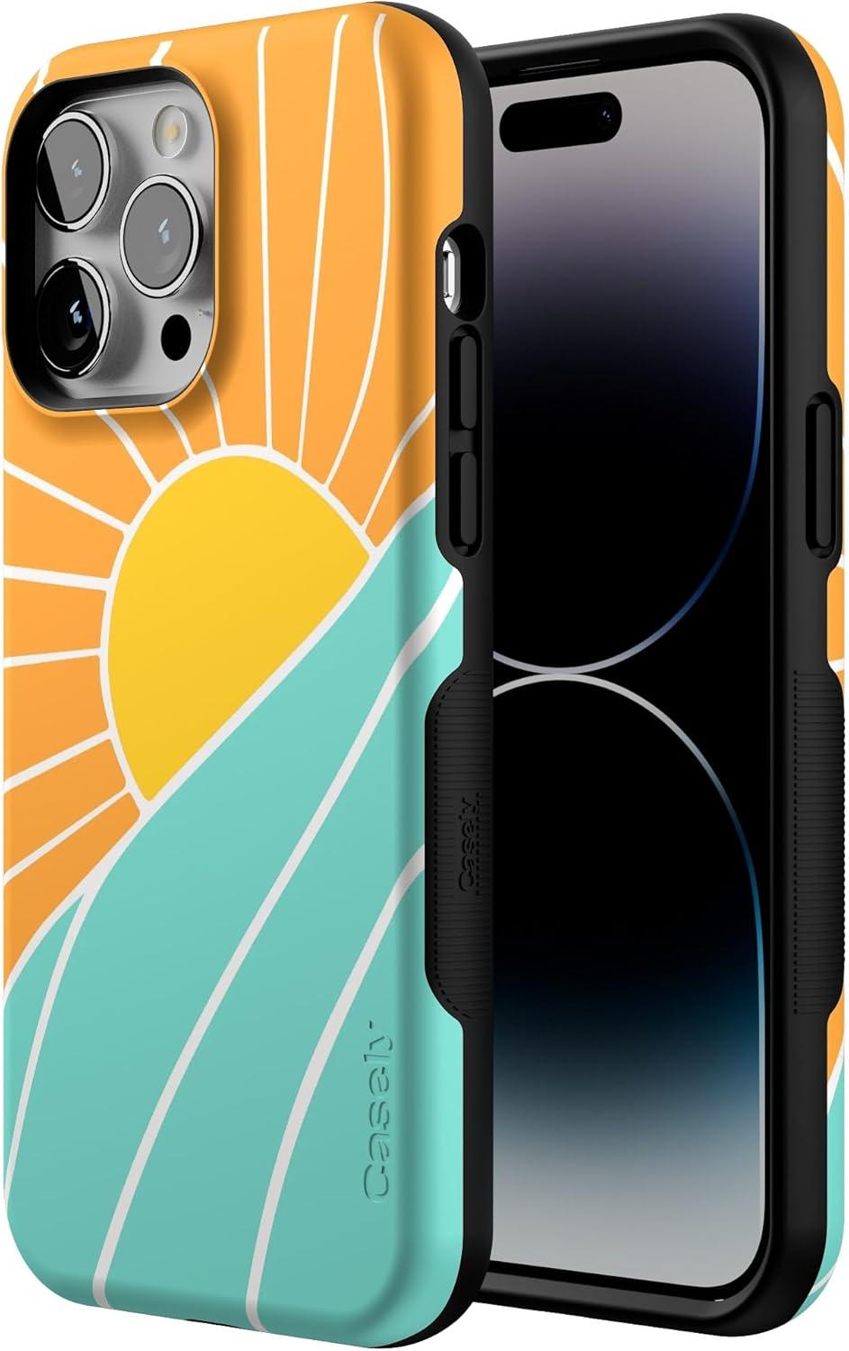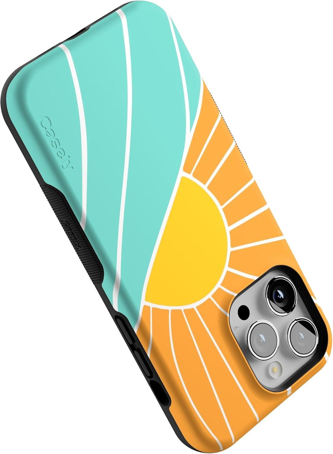 Casely iPhone 14 Pro Max Case | Sunday Best | Pastel Garden | Bold Protective Design | MagSafe Compatible Design(Waves & Rays | Sunshine)