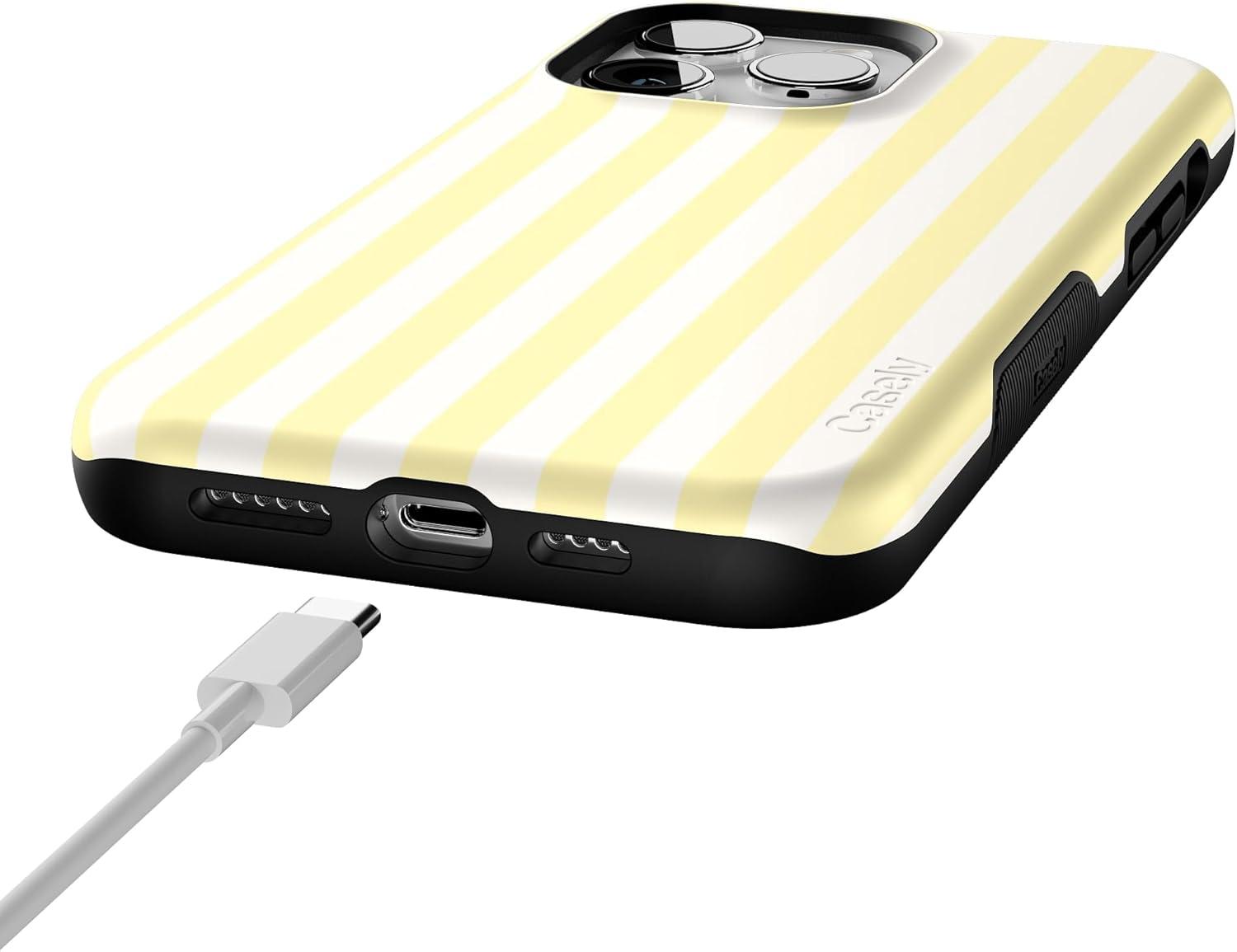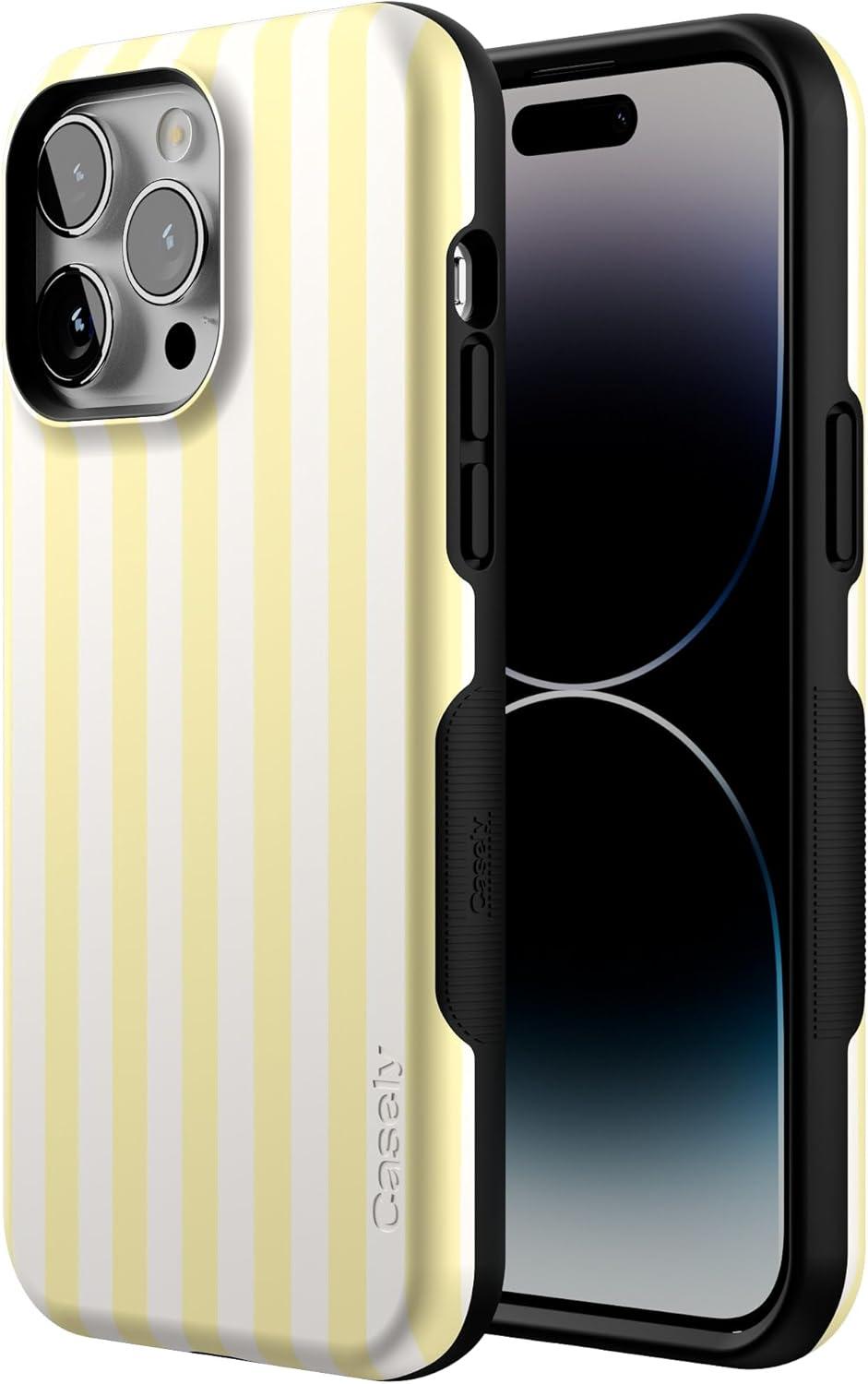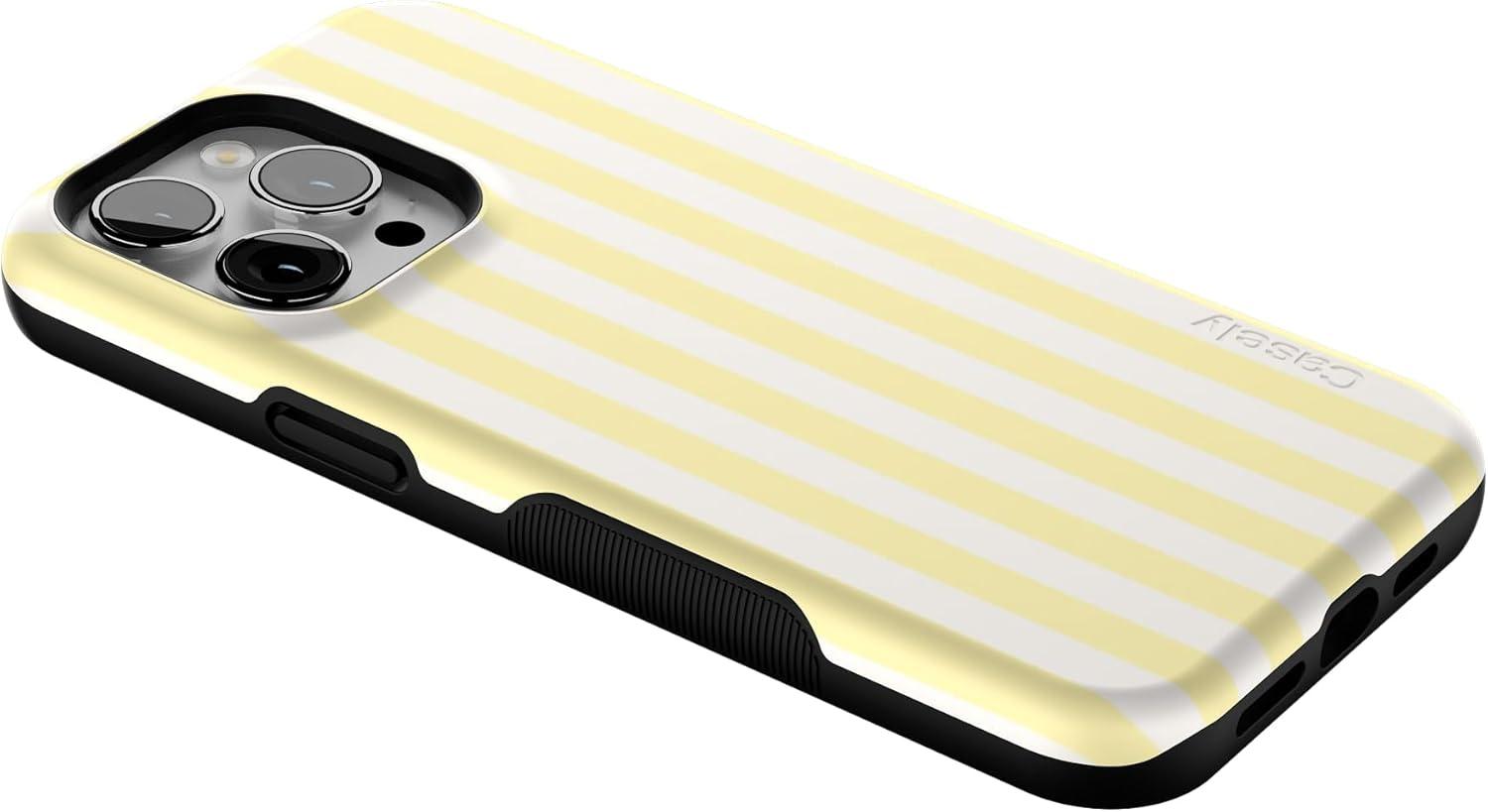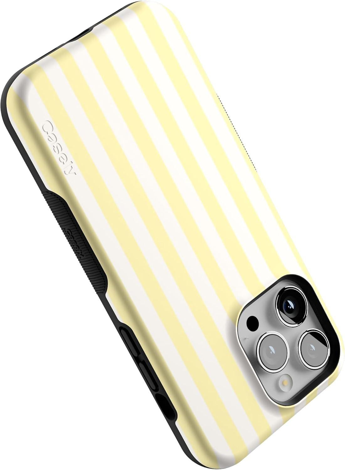 Casely iPhone 14 Pro Max Case | The Boyfriend Collection | Mallard & Co. | Bold Protective Design | Compatible with MagSafe(Butter Yellow Stripes | Sunday Best)