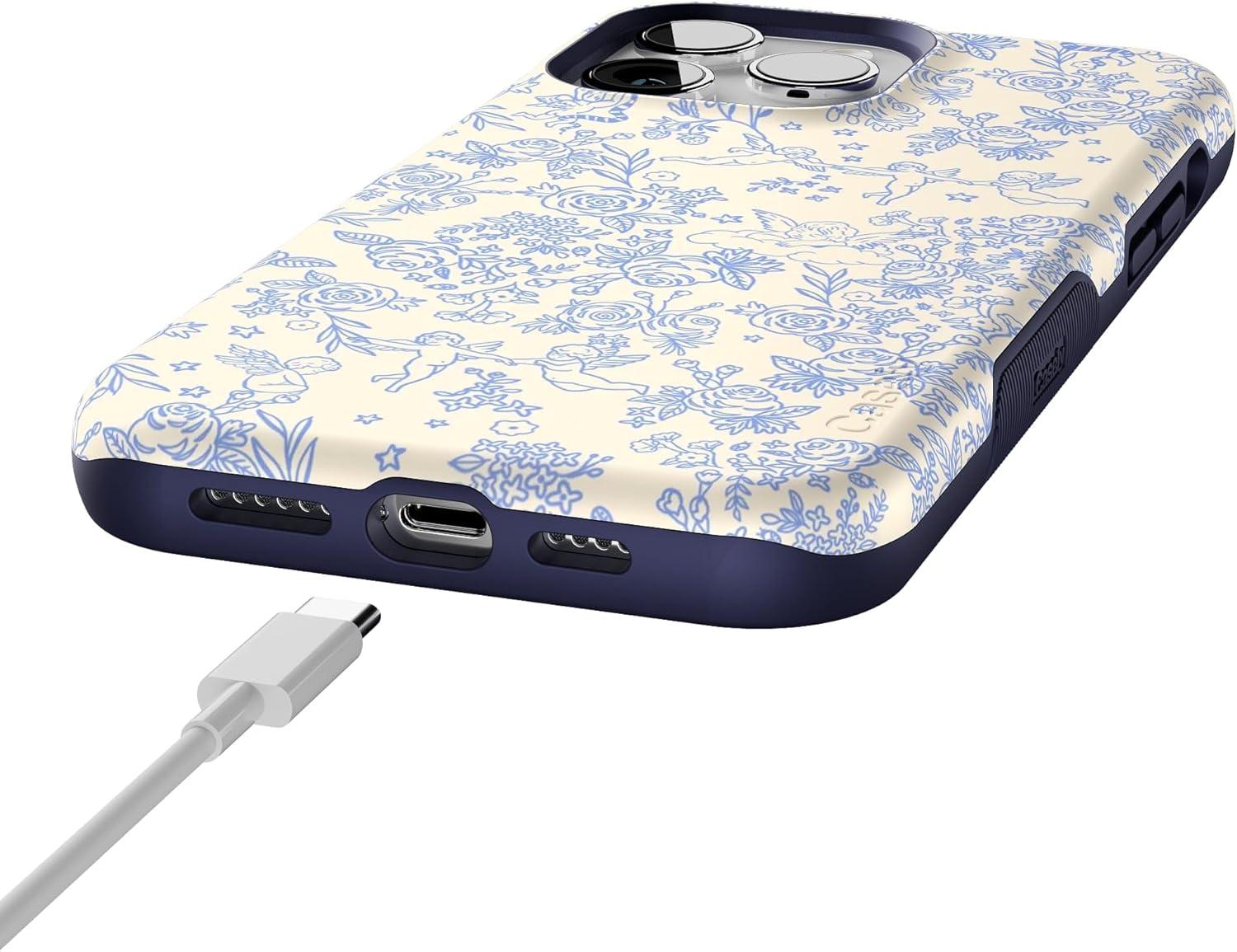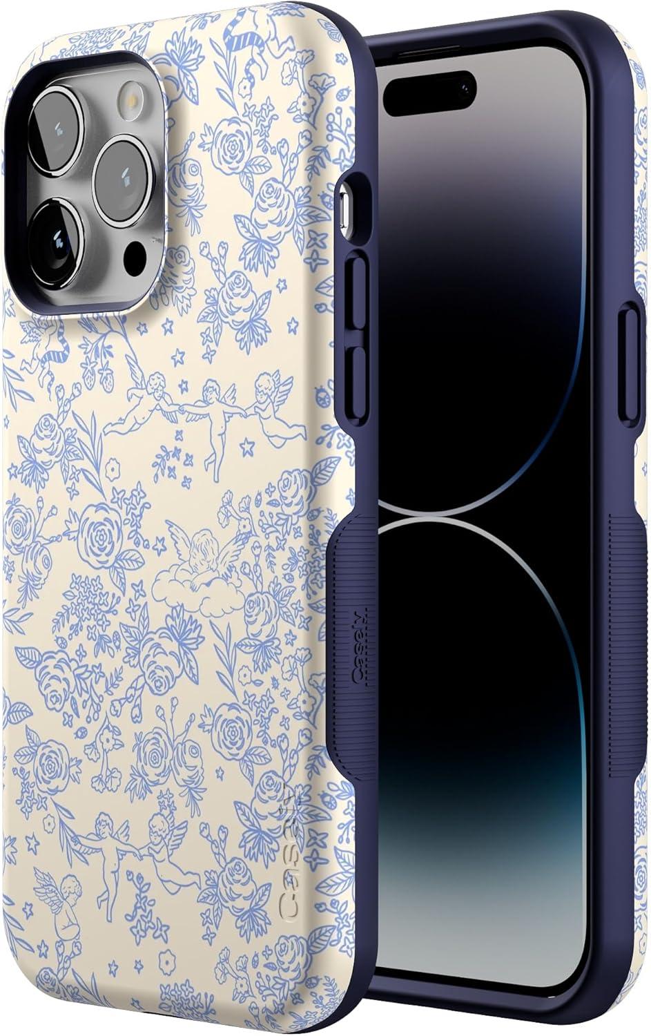 Casely iPhone 14 Pro Max Case | The Boyfriend Collection | Mallard & Co. | Bold Protective Design | Compatible with MagSafe(Cupid’s Canvas | Periwinkle Floral)