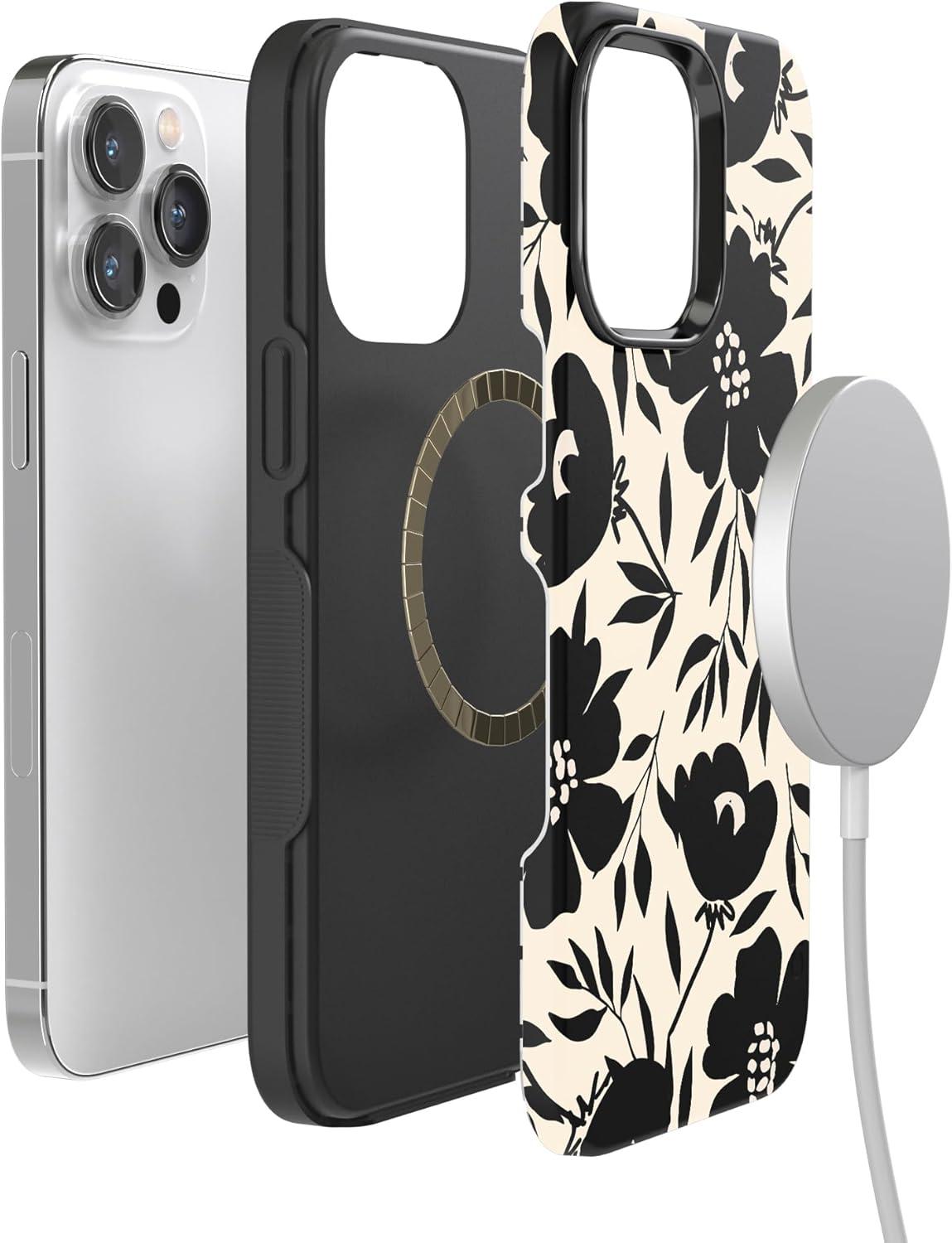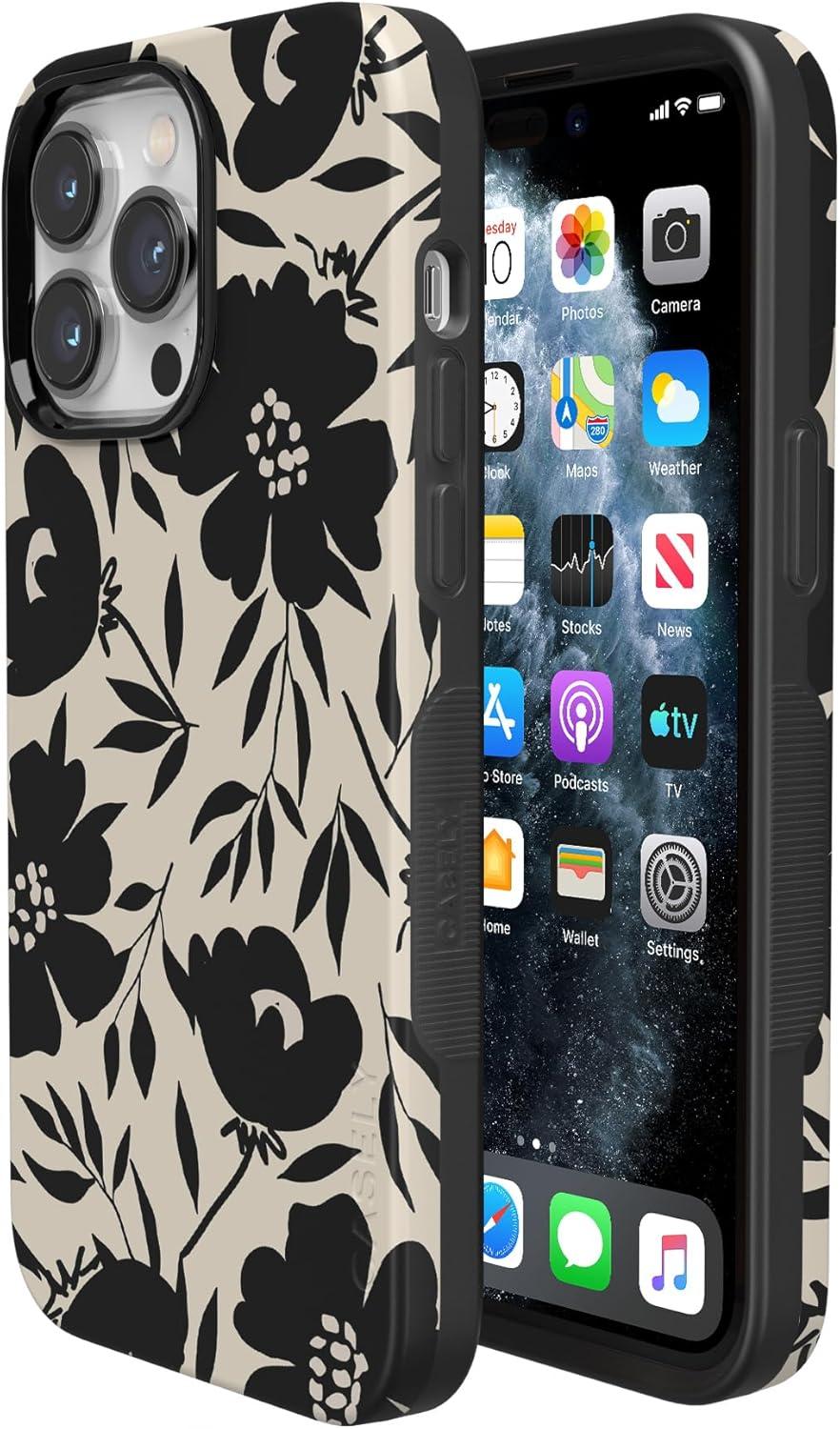 Casely iPhone 14 Pro Max Case | The Boyfriend Collection | Mallard & Co. | Bold Protective Design | Compatible with MagSafe(Dark Fantasy | Contrast Floral)