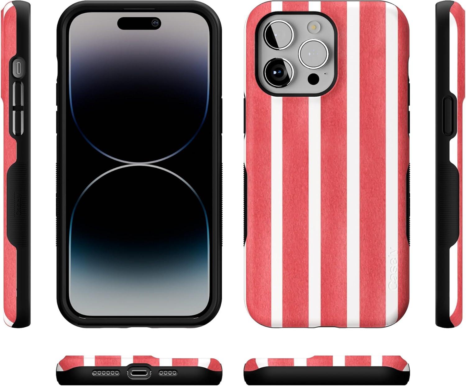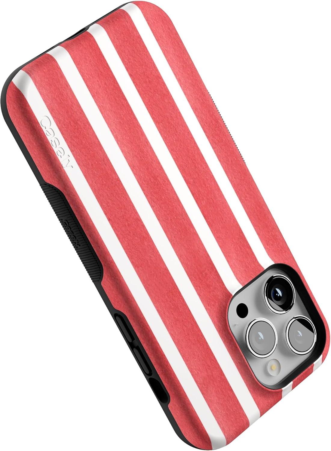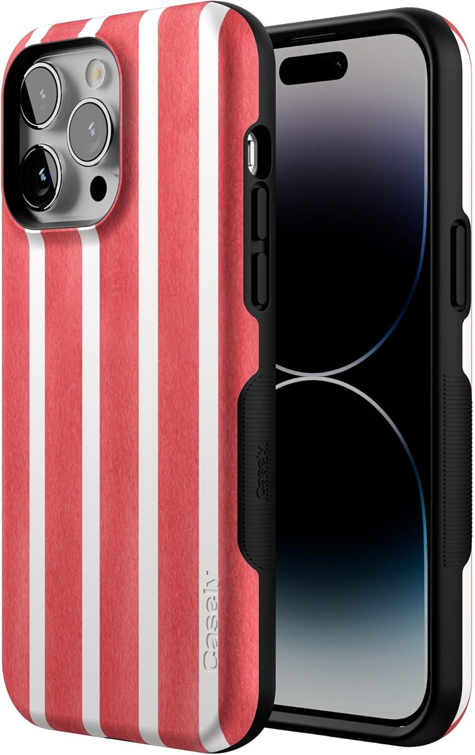 Casely iPhone 14 Pro Max Case | The Boyfriend Collection | Mallard & Co. | Bold Protective Design | Compatible with MagSafe(East Coast Summer | Red Stripes)