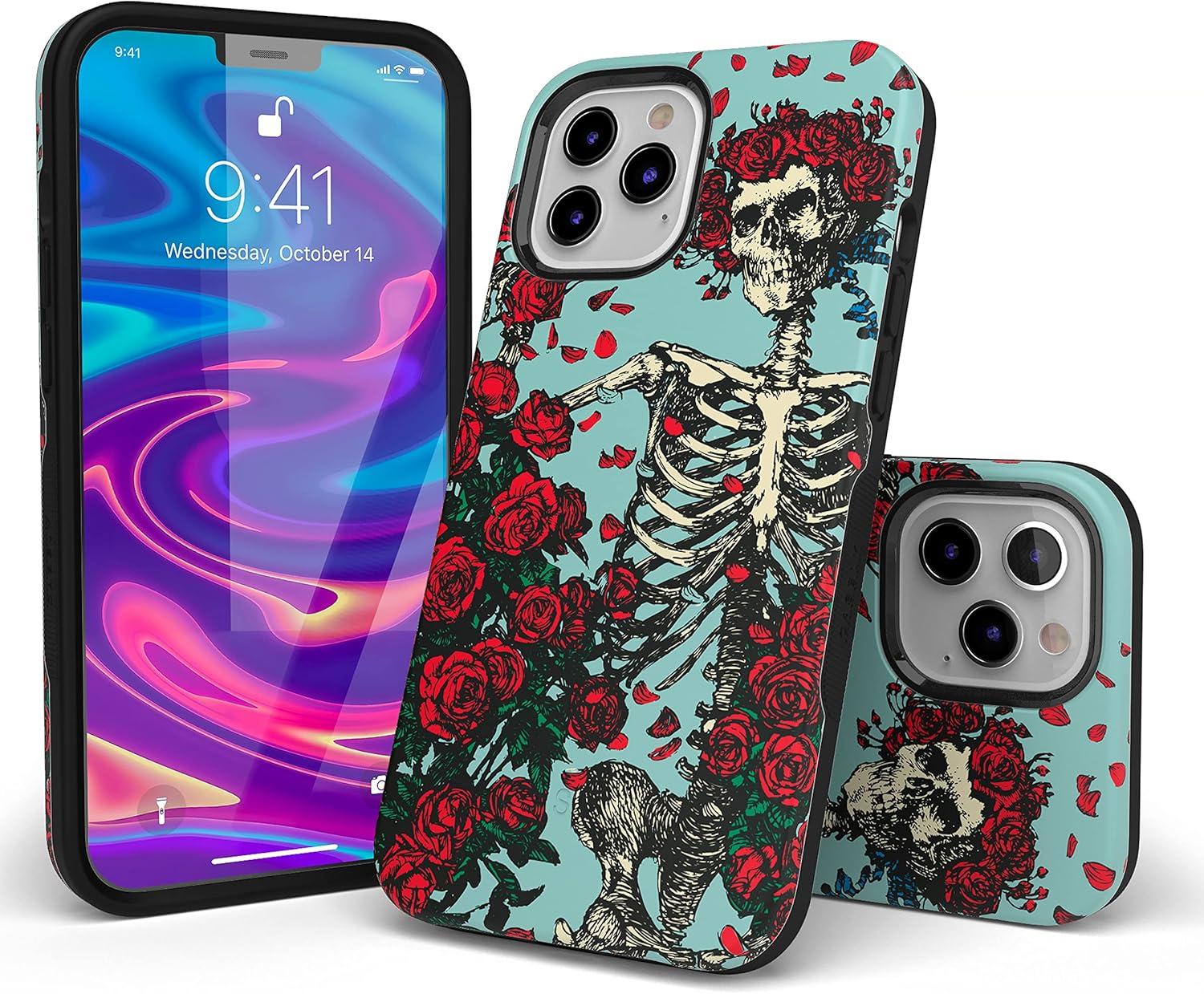 Casely iPhone 14 Pro Max Case | The Boyfriend Collection | Mallard & Co. | Bold Protective Design | Compatible with MagSafe(Forever Grateful | Grateful Dead Skeleton Floral)