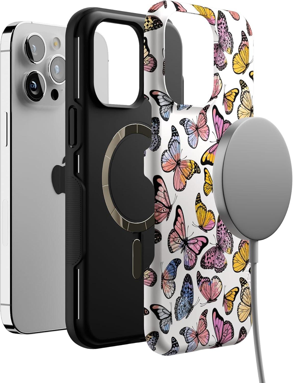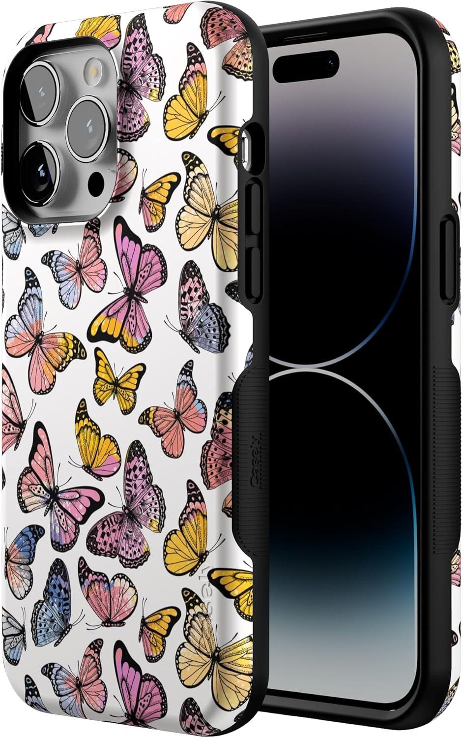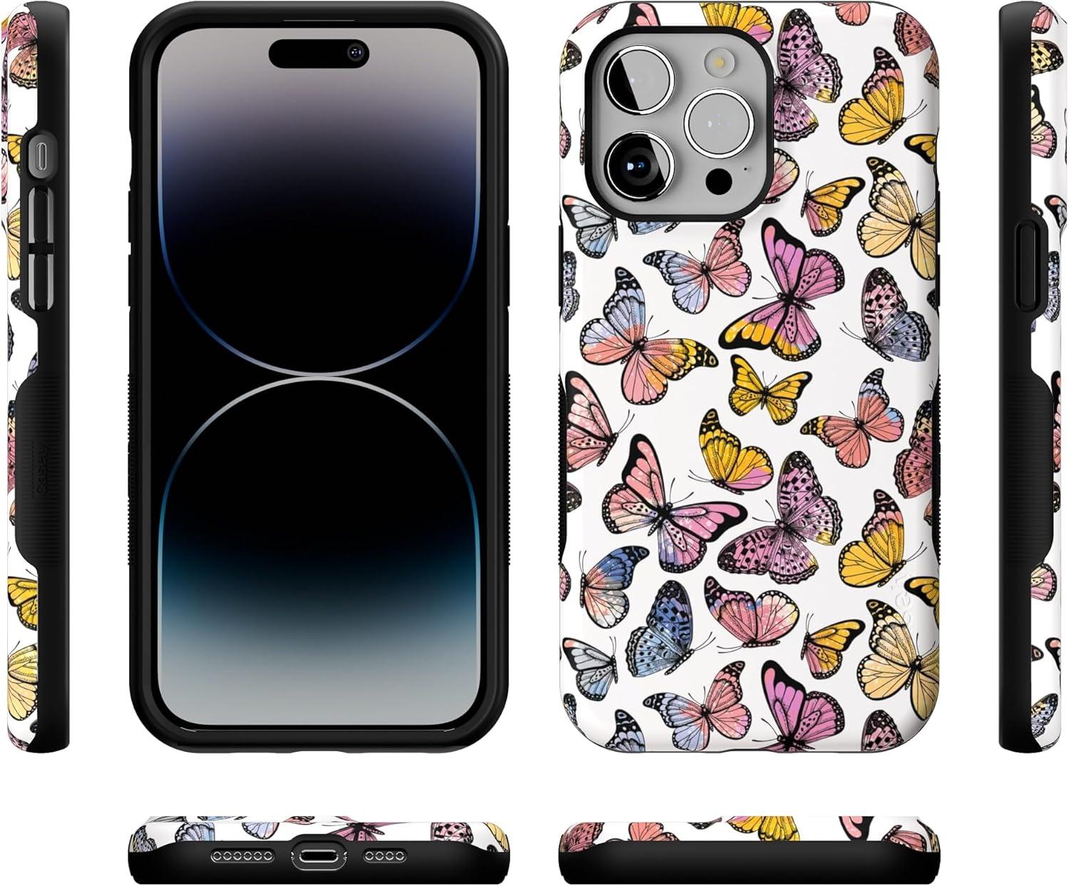 Casely iPhone 14 Pro Max Case | The Boyfriend Collection | Mallard & Co. | Bold Protective Design | Compatible with MagSafe(Free Spirit | Rainbow Butterfly)