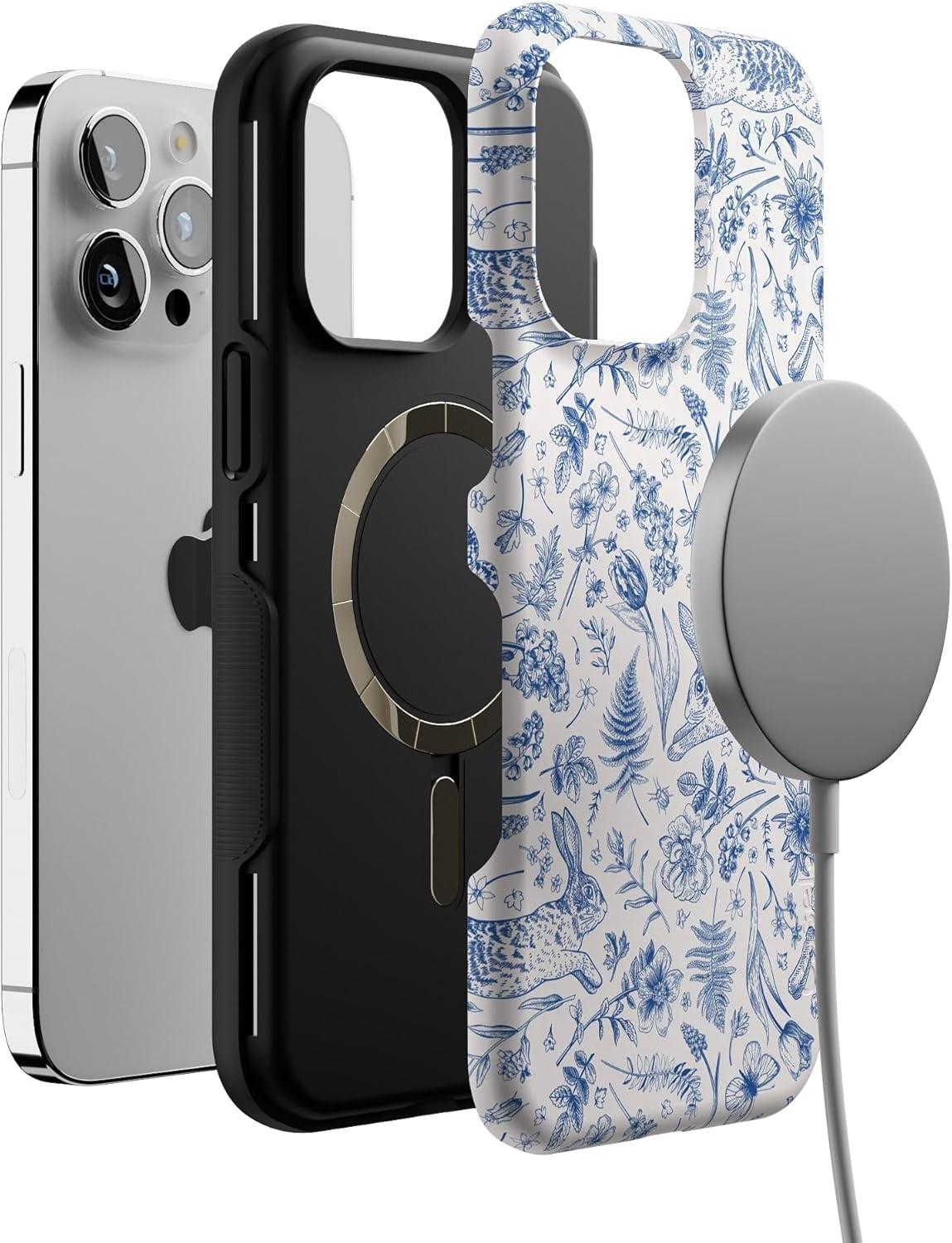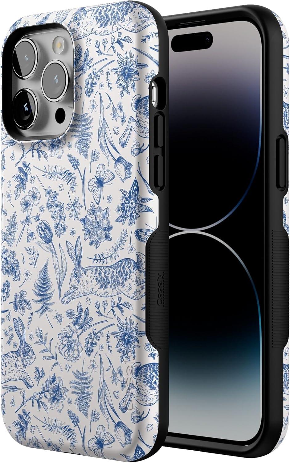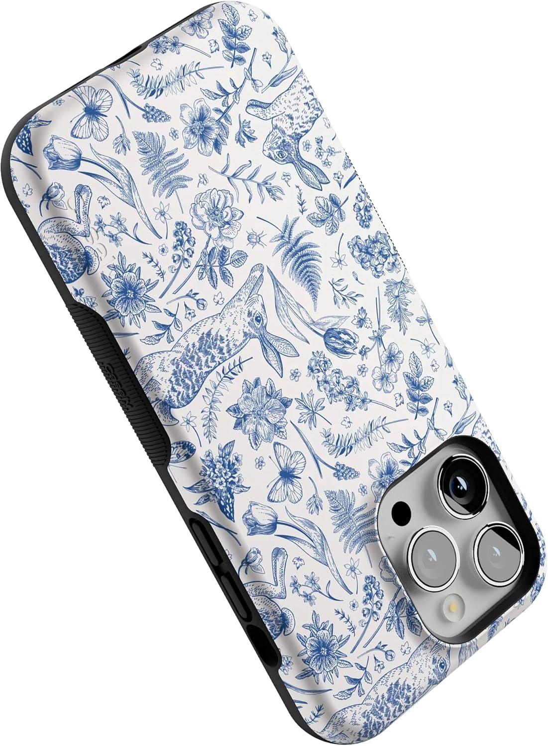 Casely iPhone 14 Pro Max Case | The Boyfriend Collection | Mallard & Co. | Bold Protective Design | Compatible with MagSafe(Hop & Bloom | Bunny Toile)