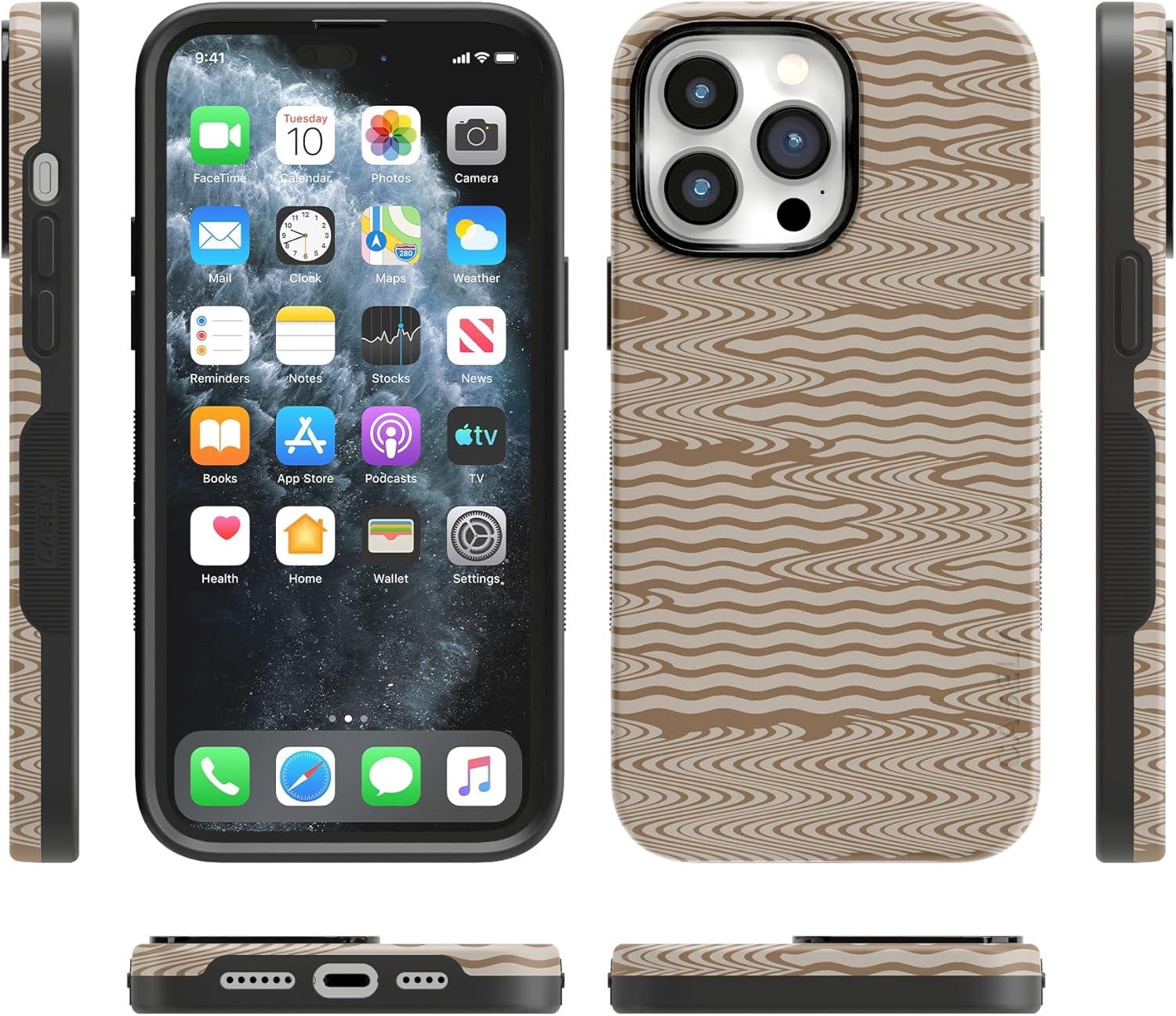 Casely iPhone 14 Pro Max Case | The Boyfriend Collection | Mallard & Co. | Bold Protective Design | Compatible with MagSafe(Mocha Ripple | Brown Waves)