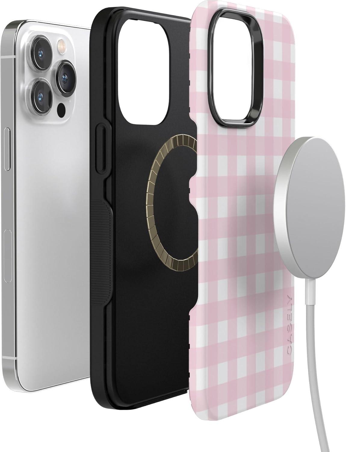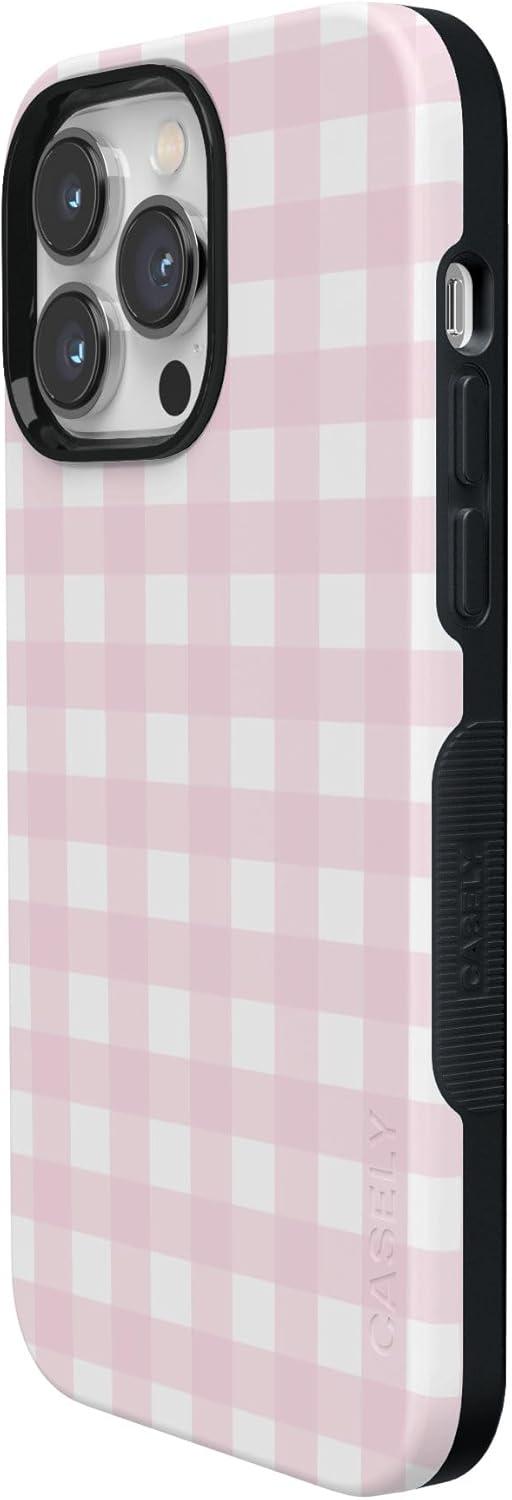 Casely iPhone 14 Pro Max Case | The Boyfriend Collection | Mallard & Co. | Bold Protective Design | Compatible with MagSafe(Pink Plaid | Sunday Best)