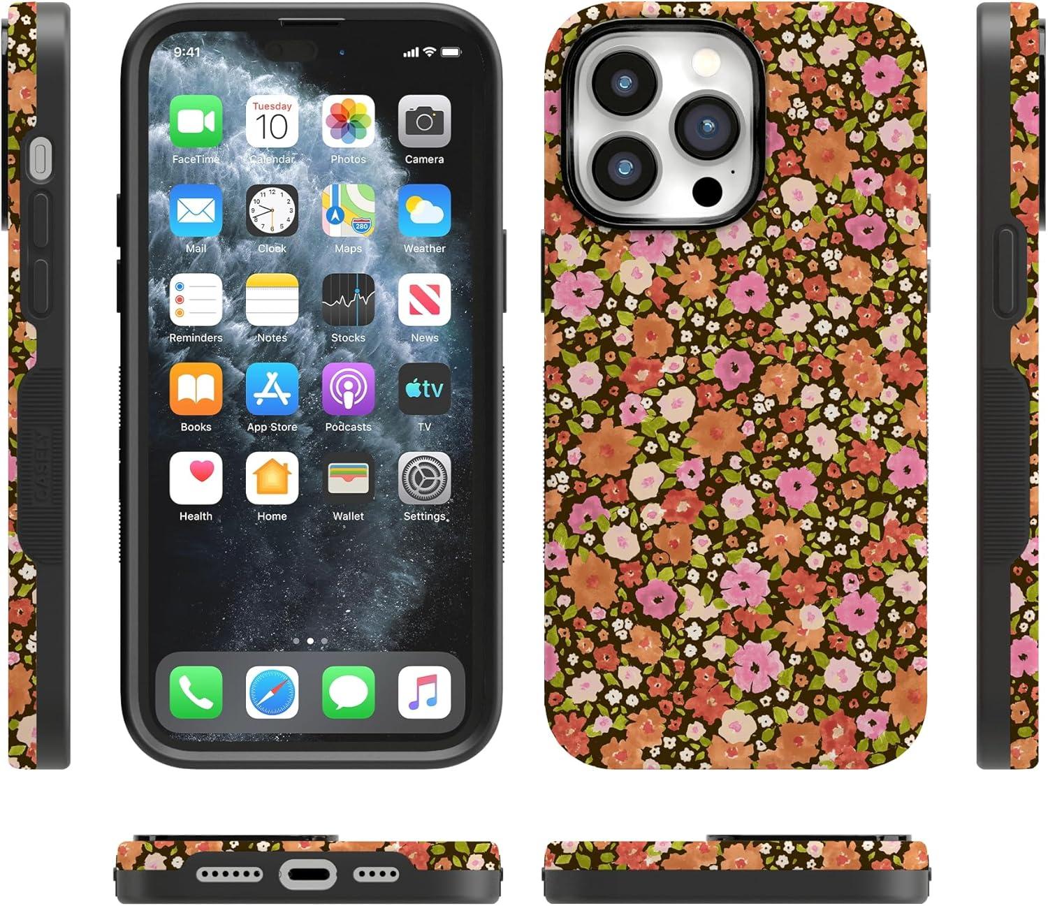 Casely iPhone 14 Pro Max Case | The Boyfriend Collection | Mallard & Co. | Bold Protective Design | Compatible with MagSafe(Rustic Roses | Boho Bouquet)
