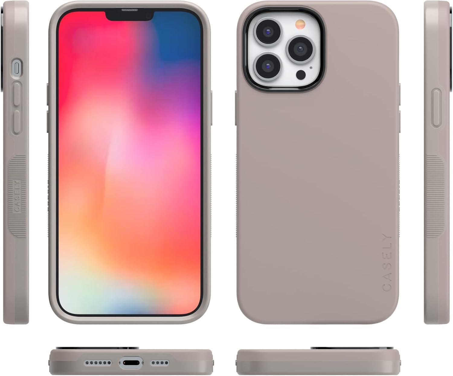 Casely iPhone 14 Pro Max Case | The Boyfriend Collection | Mallard & Co. | Bold Protective Design | Compatible with MagSafe(Taupe on Nude)