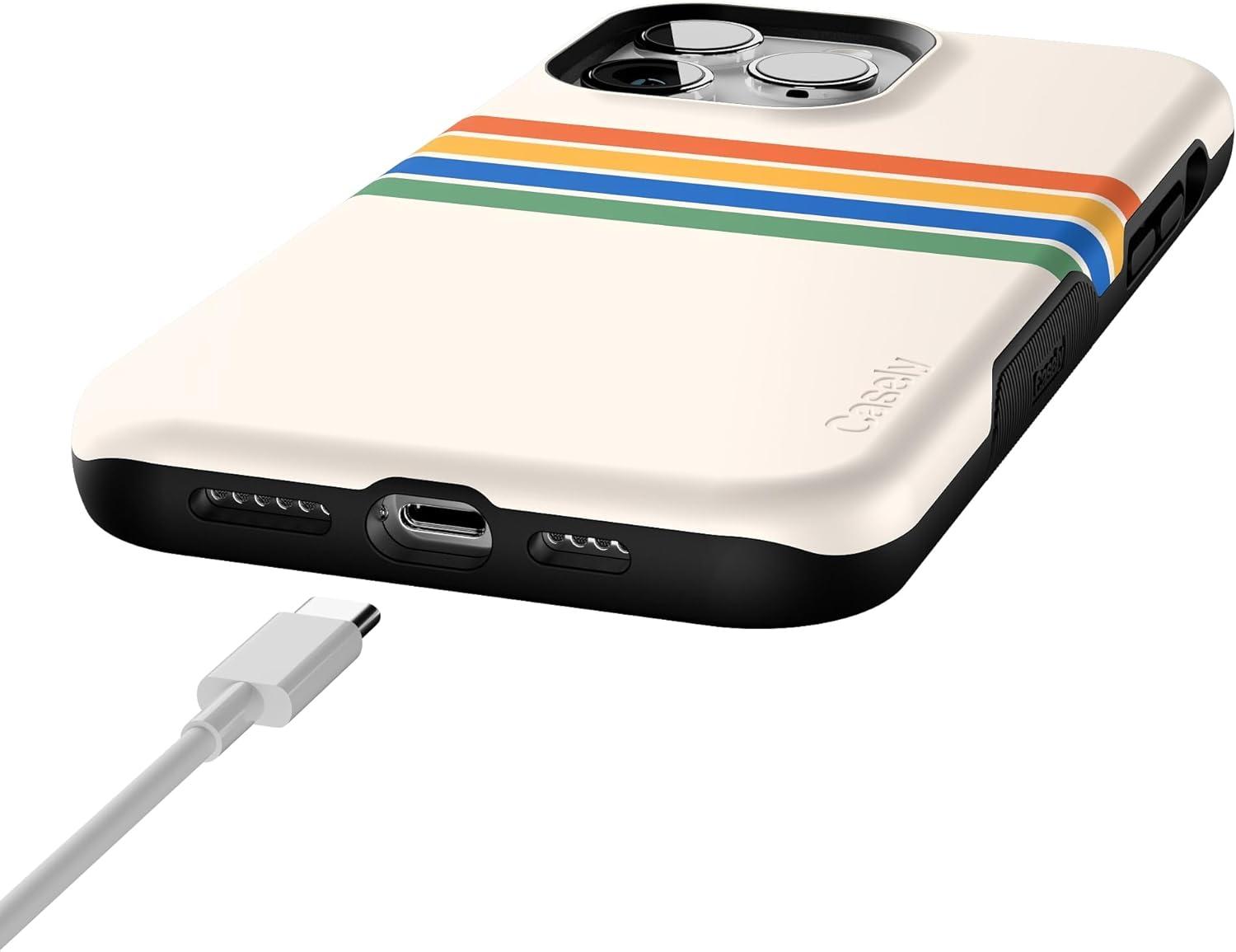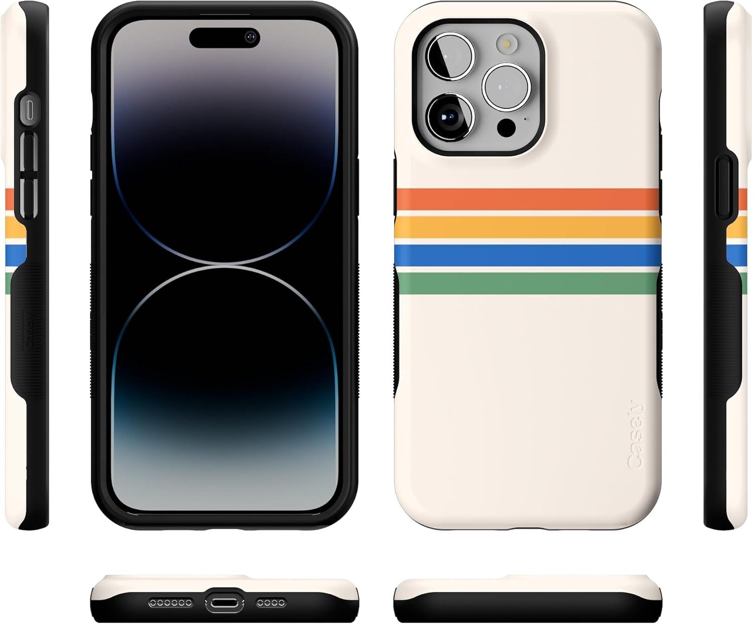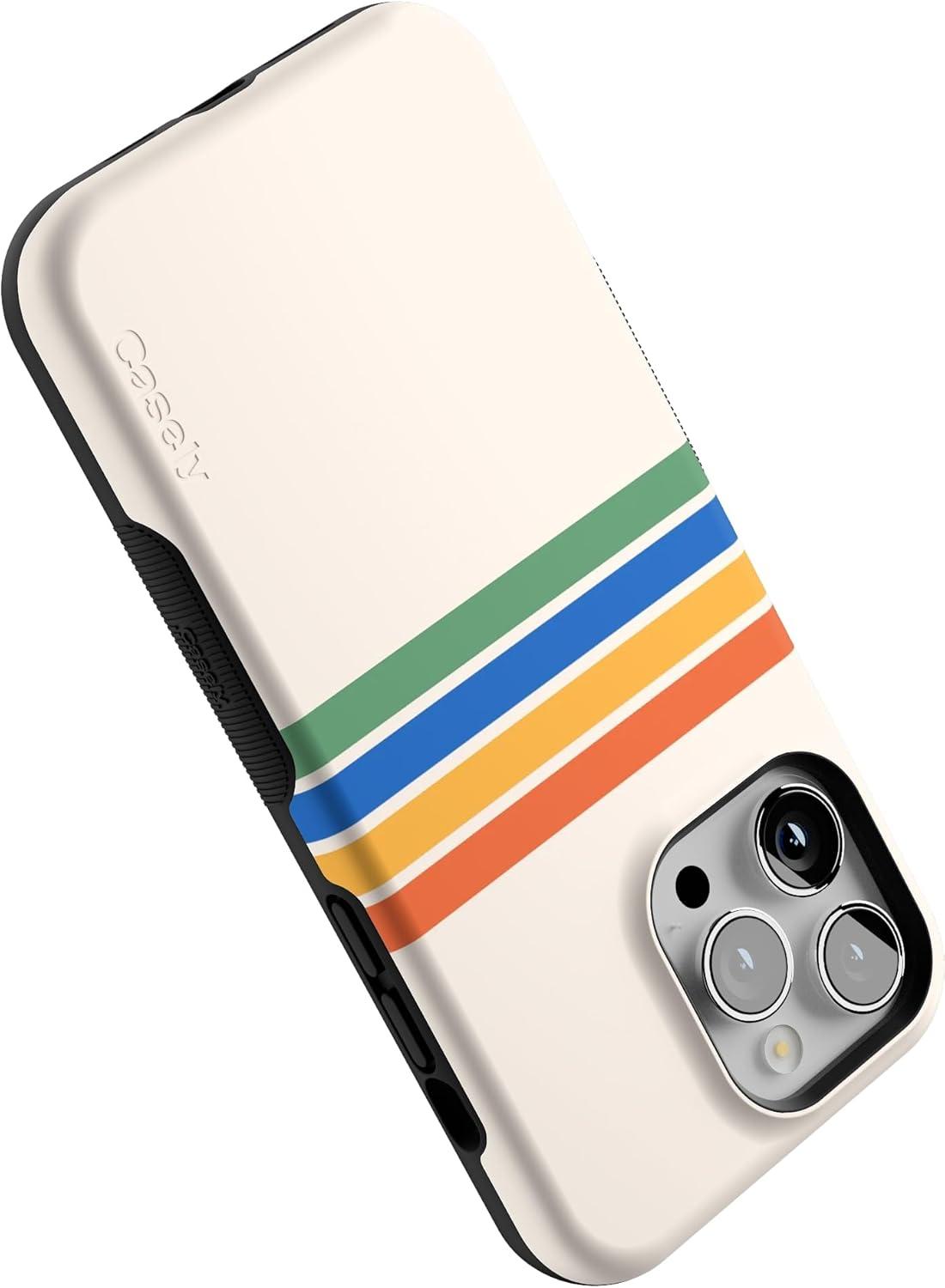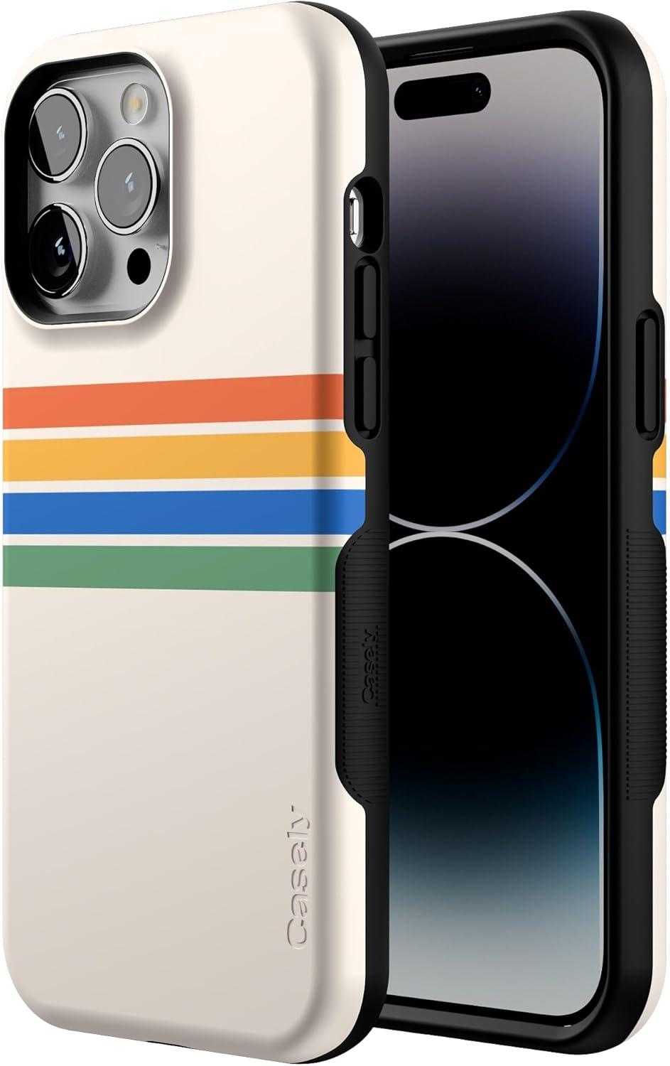 Casely iPhone 14 Pro Max Case | The Boyfriend Collection | Mallard & Co. | Bold Protective Design | Compatible with MagSafe(Totally Groovy | Rainbow Stripes Color Block)
