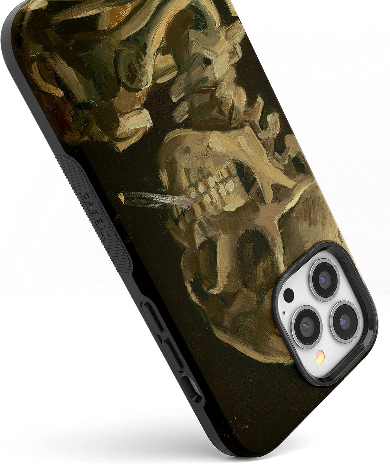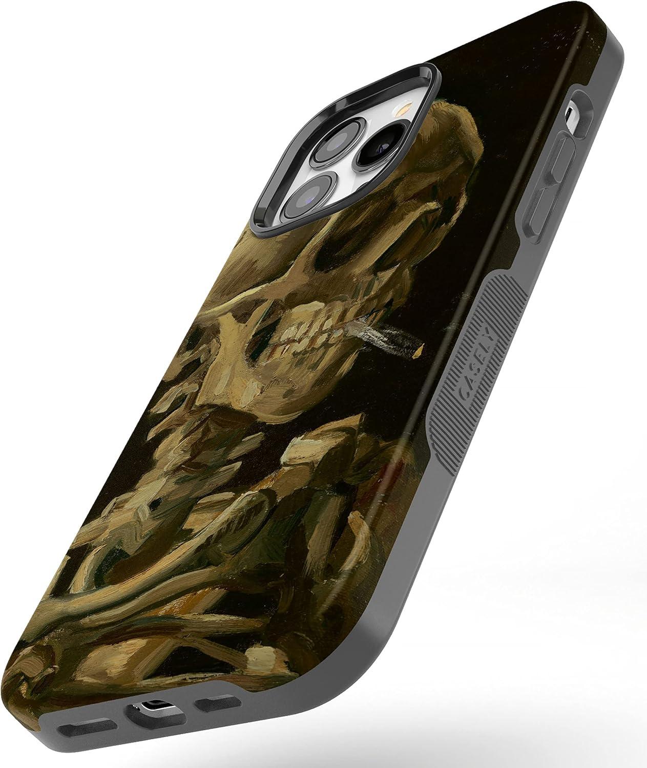 Casely iPhone 14 Pro Max Case | The Boyfriend Collection | Mallard & Co. | Bold Protective Design | Compatible with MagSafe(Van Gogh | Skull of a Skeleton with Burning Cig)