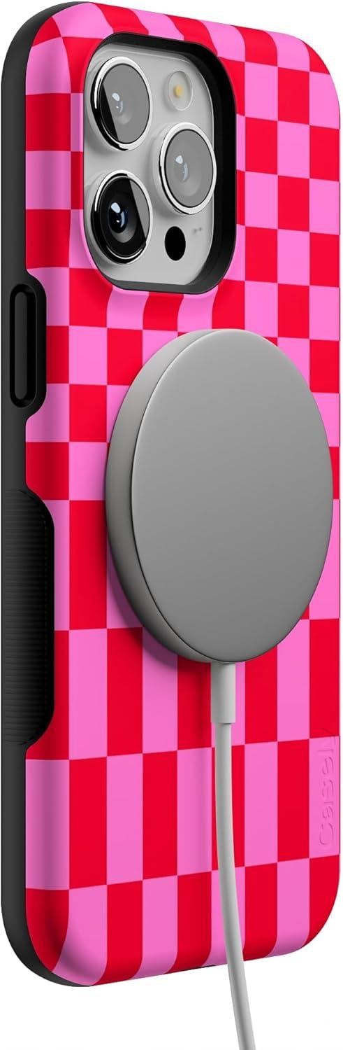 Casely iPhone 14 Pro Max Case | The Boyfriend Collection | Mallard & Co. | Bold Protective Design | Compatible with MagSafe(Vibe Check | Pink Checkerboard)