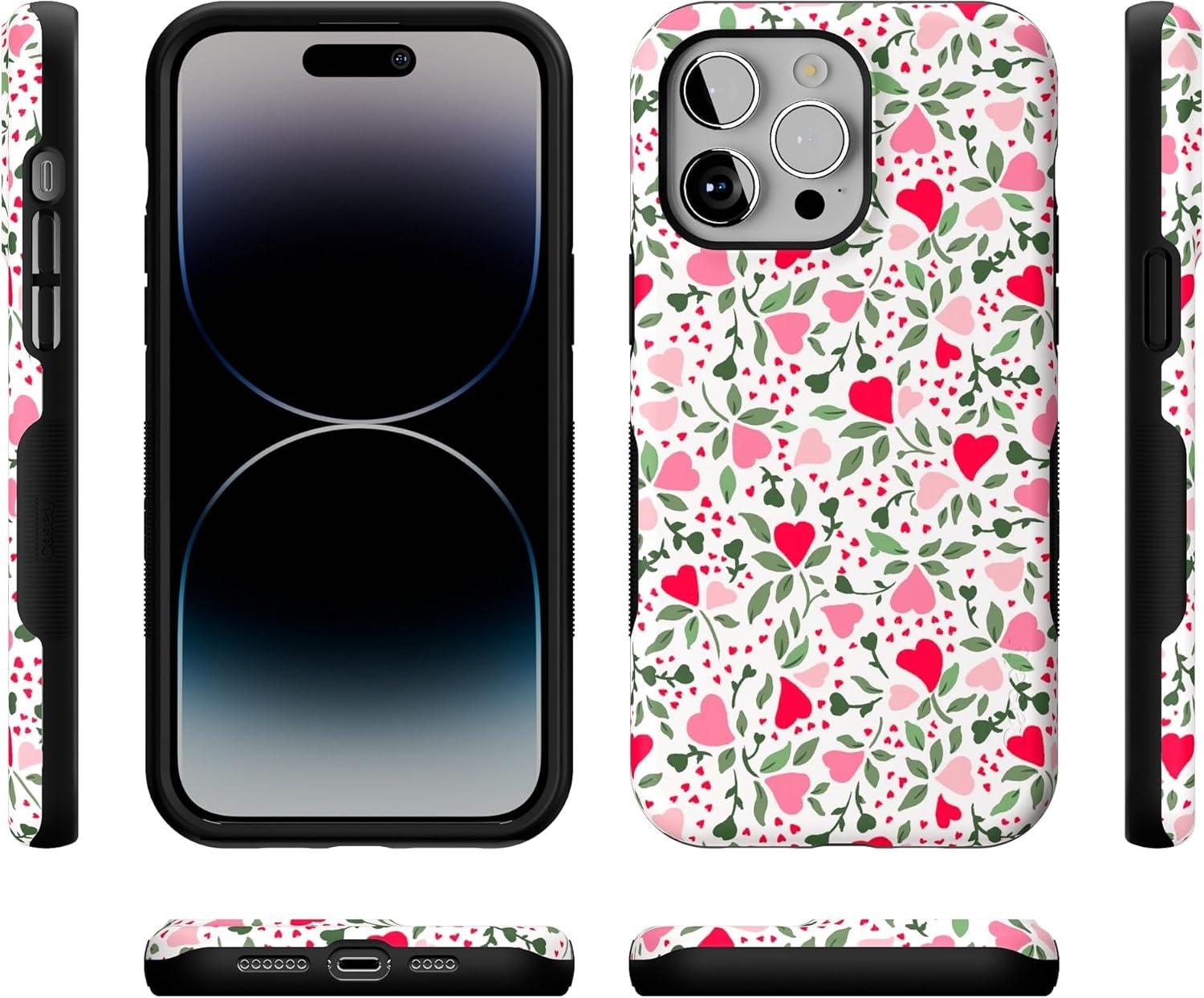 Casely iPhone 14 Pro Max Case | The Boyfriend Collection | Mallard & Co. | Bold Protective Design | Compatible with MagSafe(Vines of Love | Floral Heart)