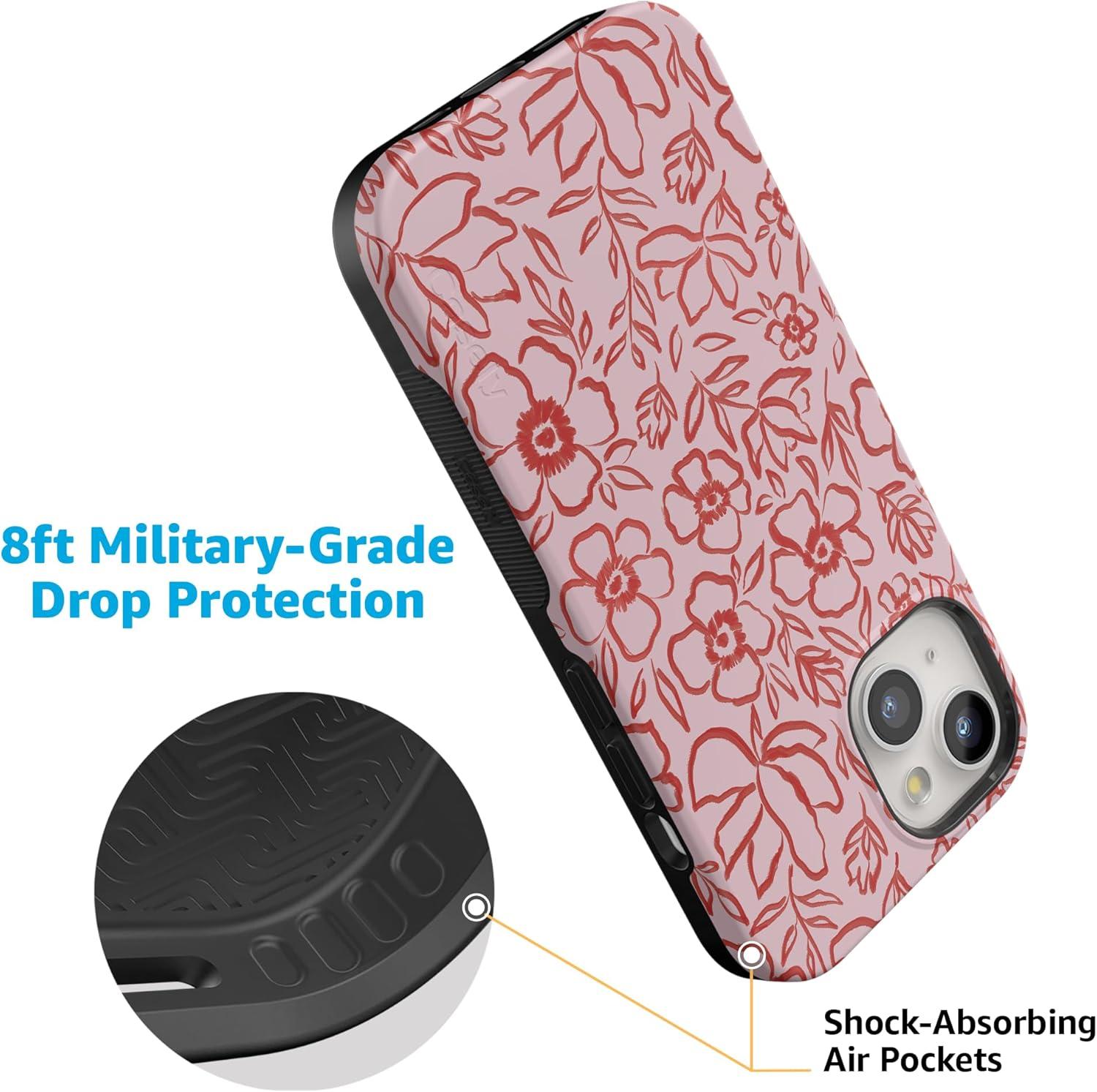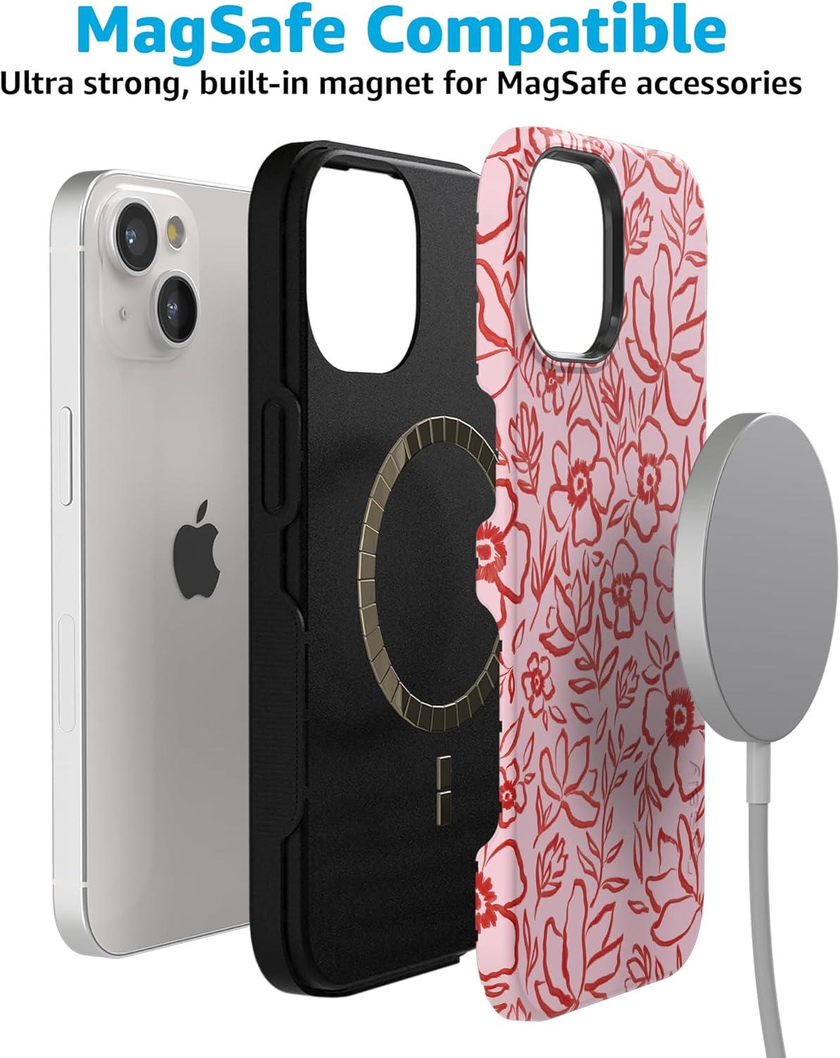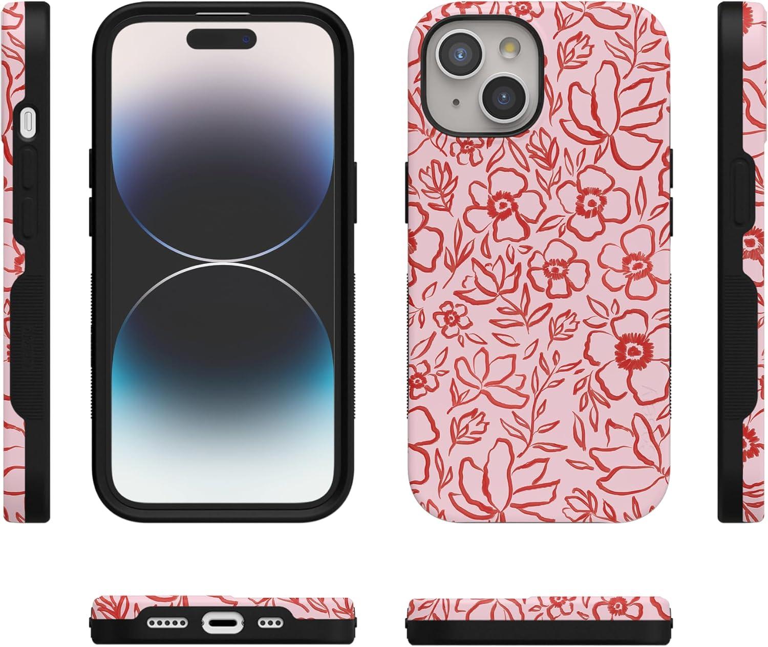 Casely iPhone 15 Case | Be Mine | Tiny Hearts | Bold Protective Design | Compatible with MagSafe(Blush Garden | Floral Doodle)