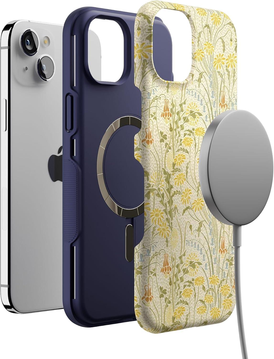Casely iPhone 15 Case | Be Mine | Tiny Hearts | Bold Protective Design | Compatible with MagSafe(Boho Blooms | Golden Floral)