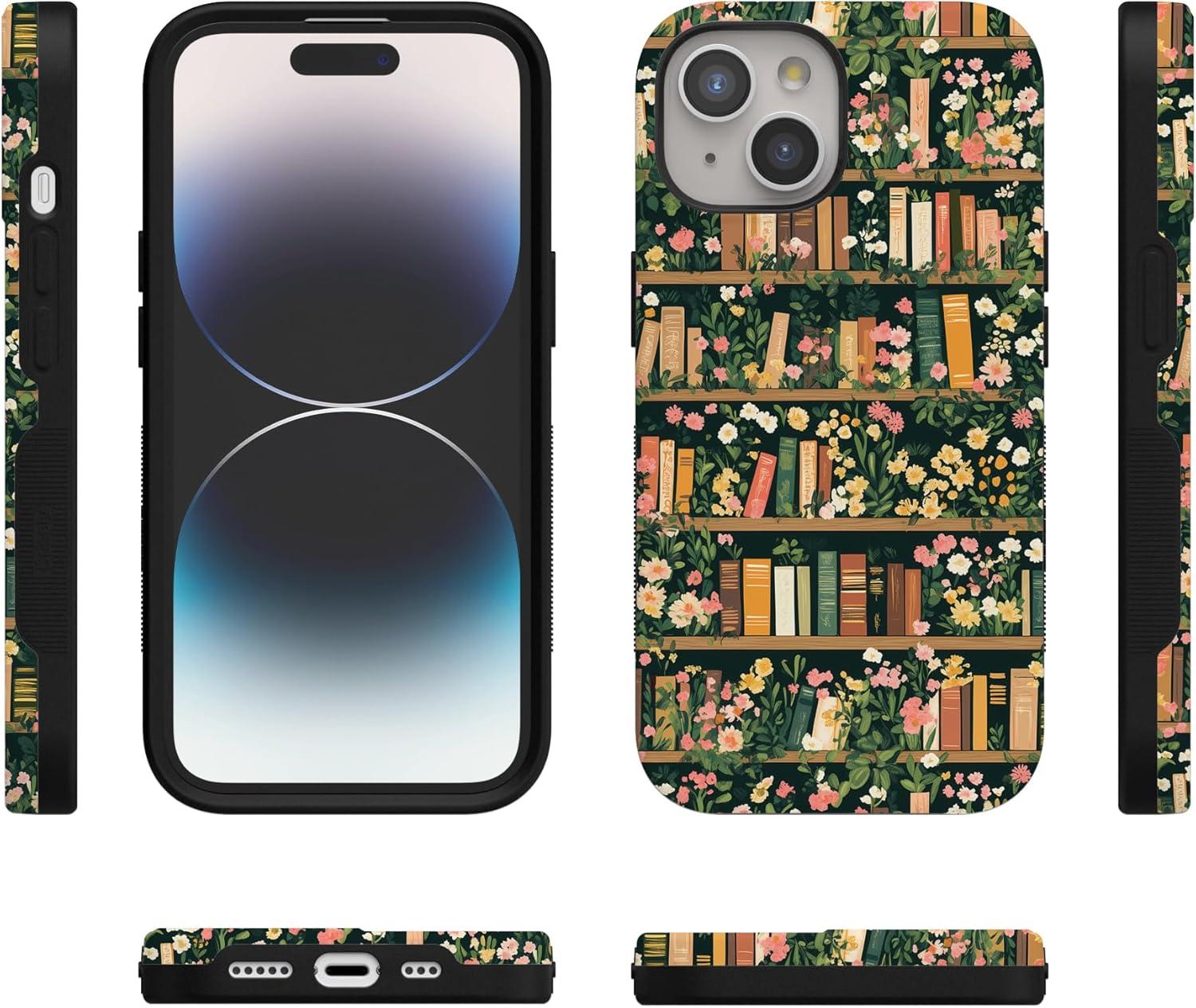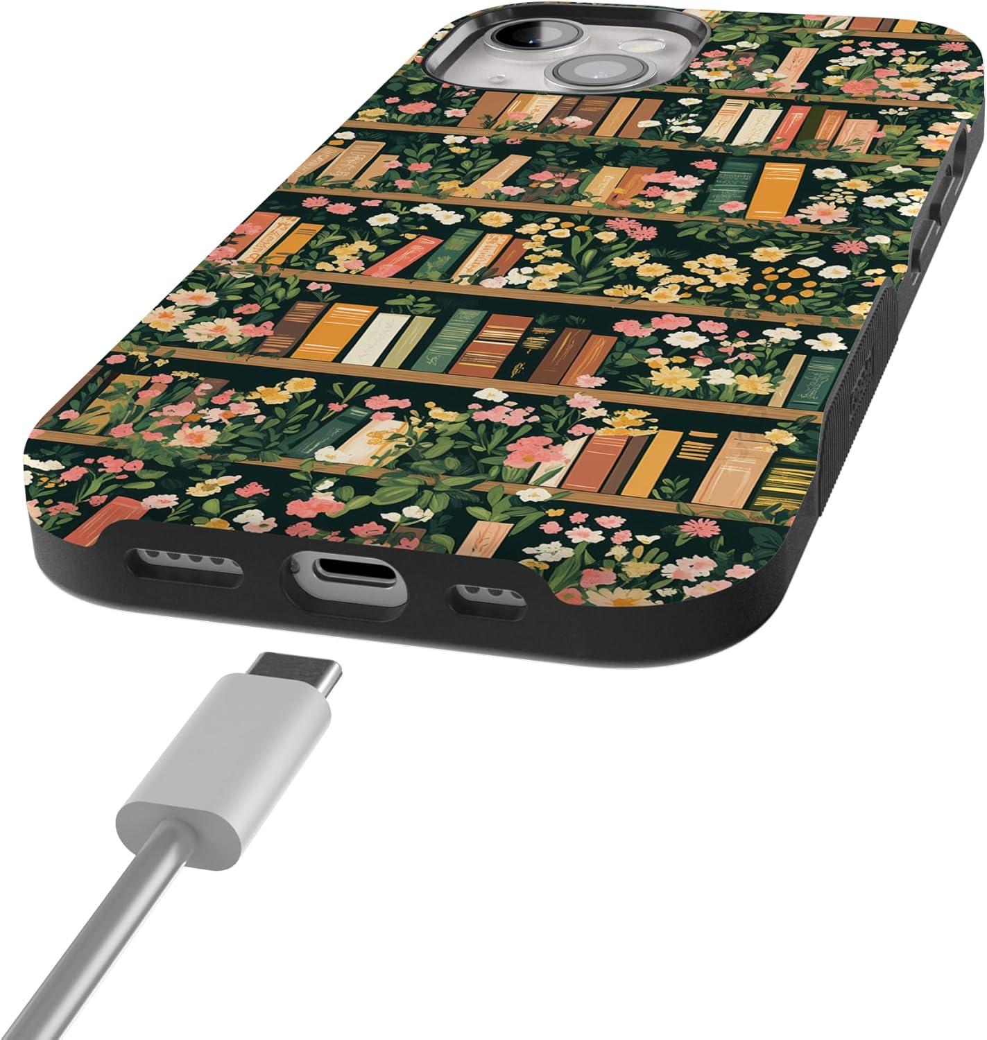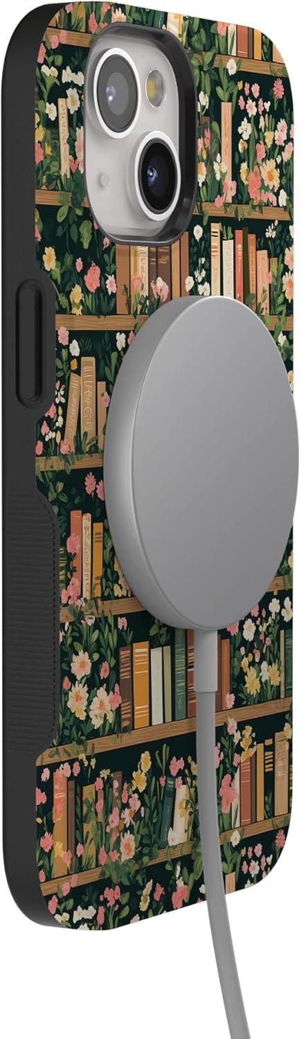 Casely iPhone 15 Case | Be Mine | Tiny Hearts | Bold Protective Design | Compatible with MagSafe(Book Nook | Floral Library)