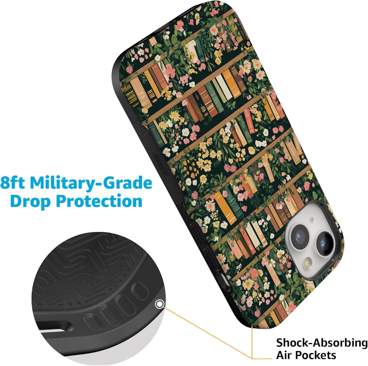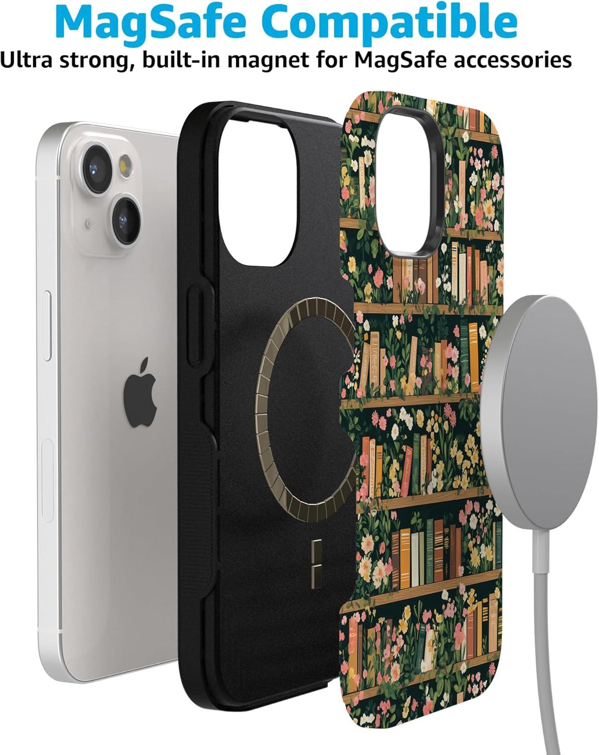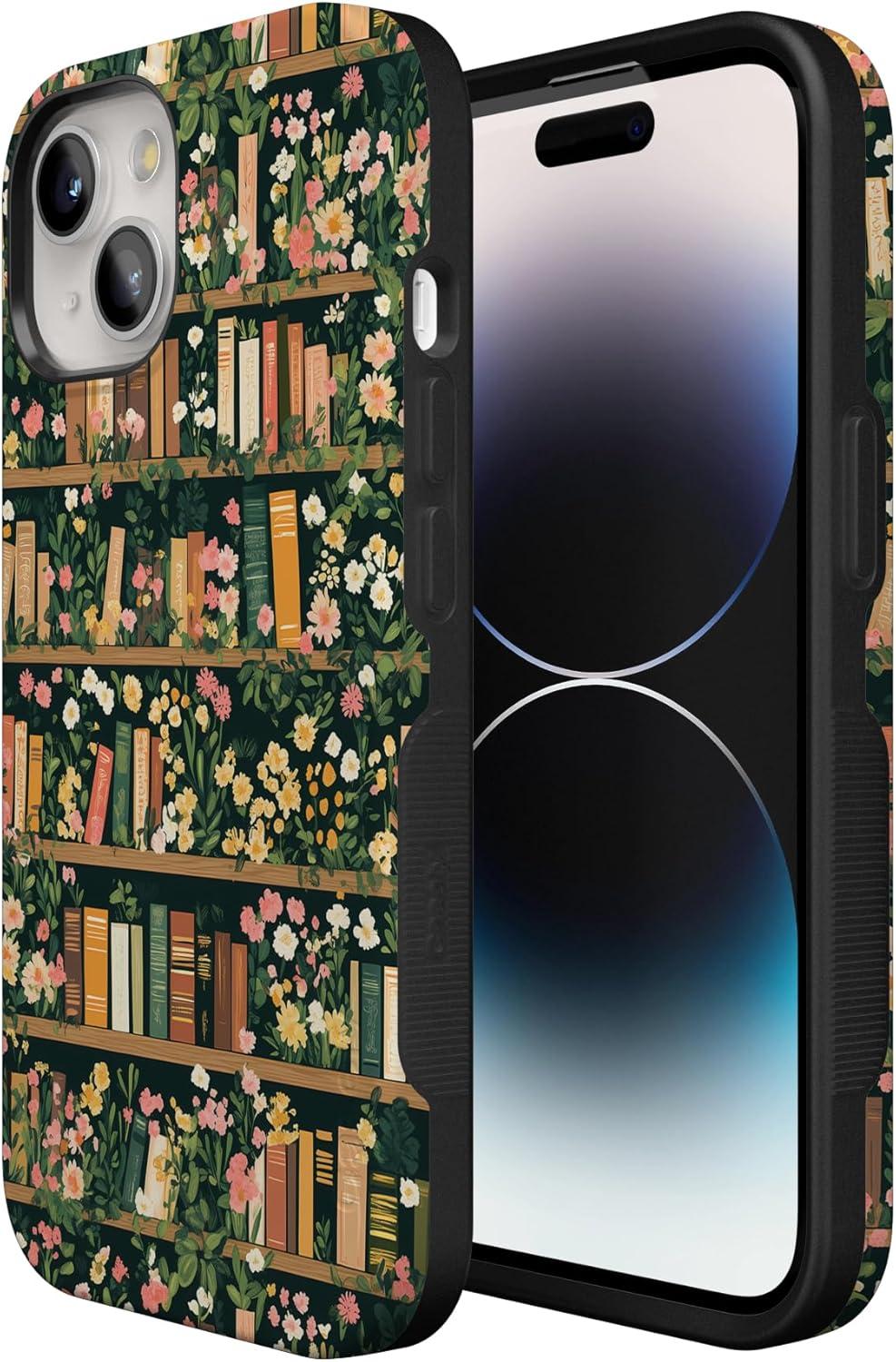 Casely iPhone 15 Case | Be Mine | Tiny Hearts | Bold Protective Design | Compatible with MagSafe(Book Nook | Floral Library)