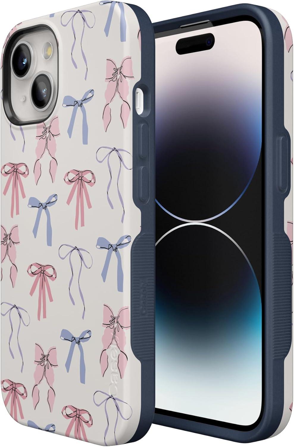 Casely iPhone 15 Case | Be Mine | Tiny Hearts | Bold Protective Design | Compatible with MagSafe(Coquette Girlie | Pastel Bows)