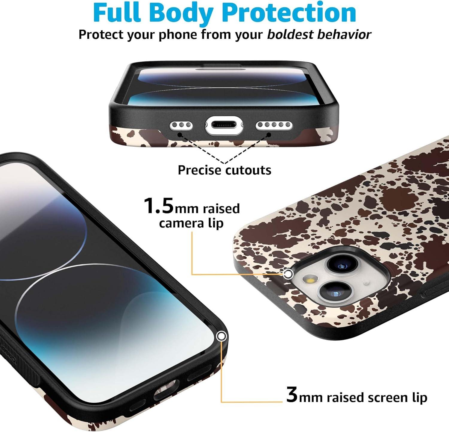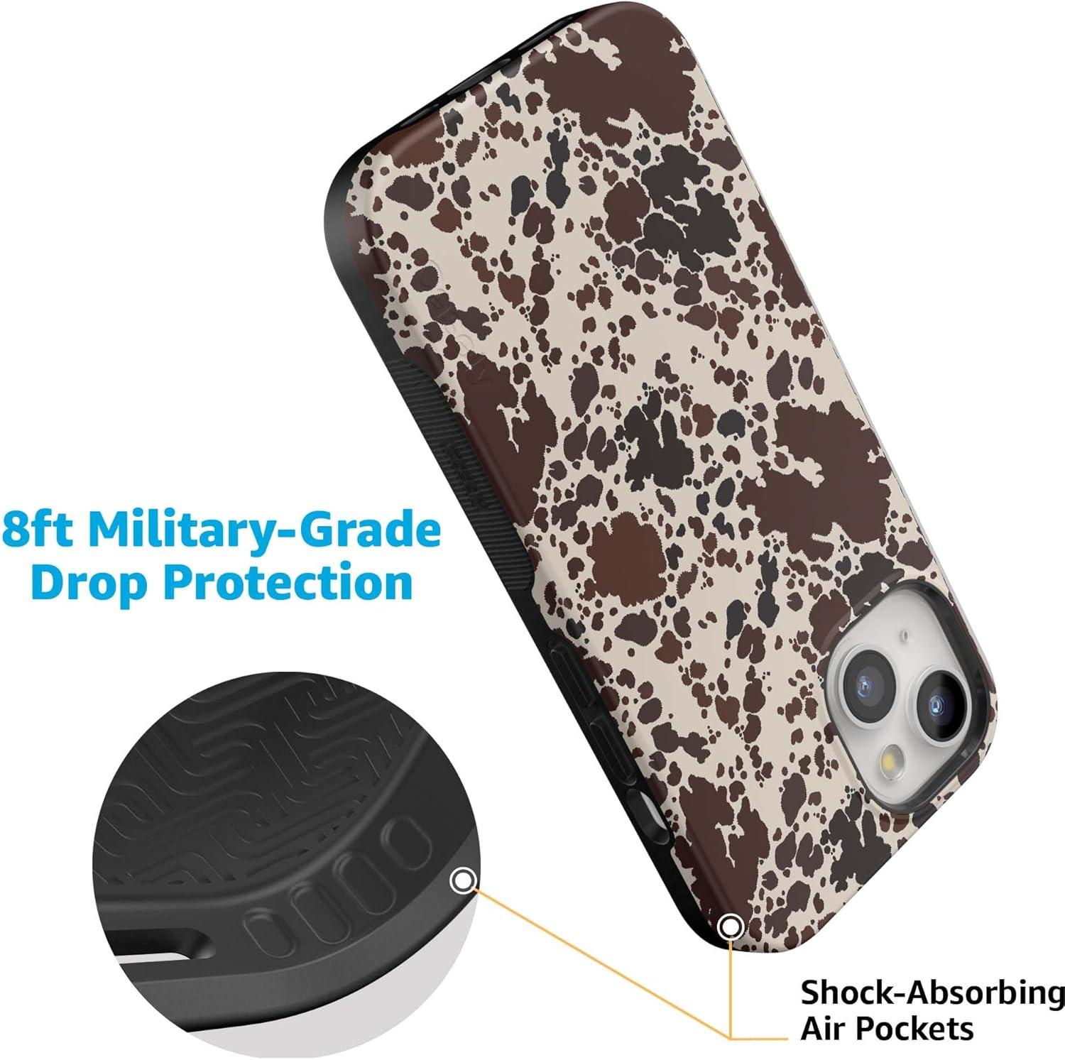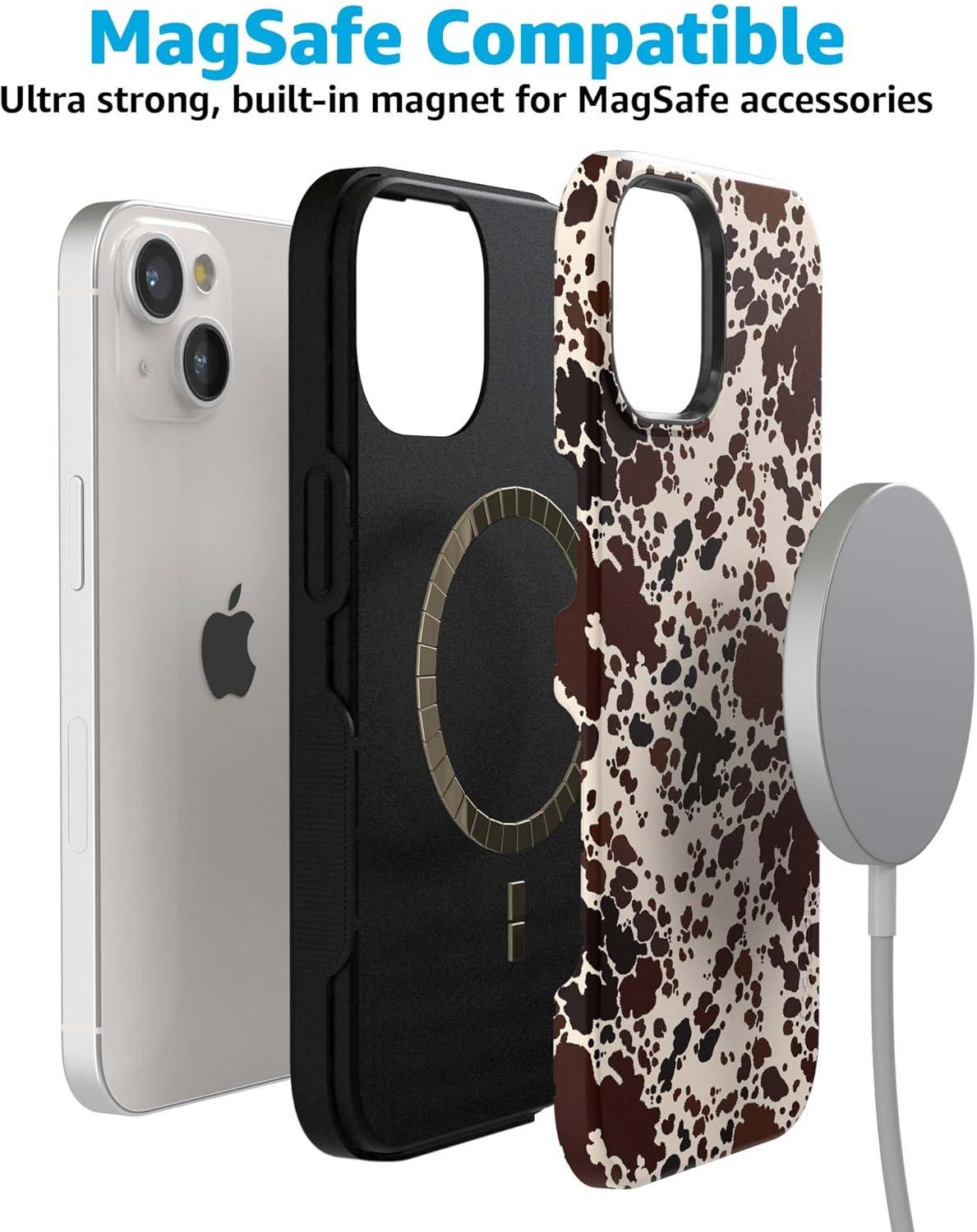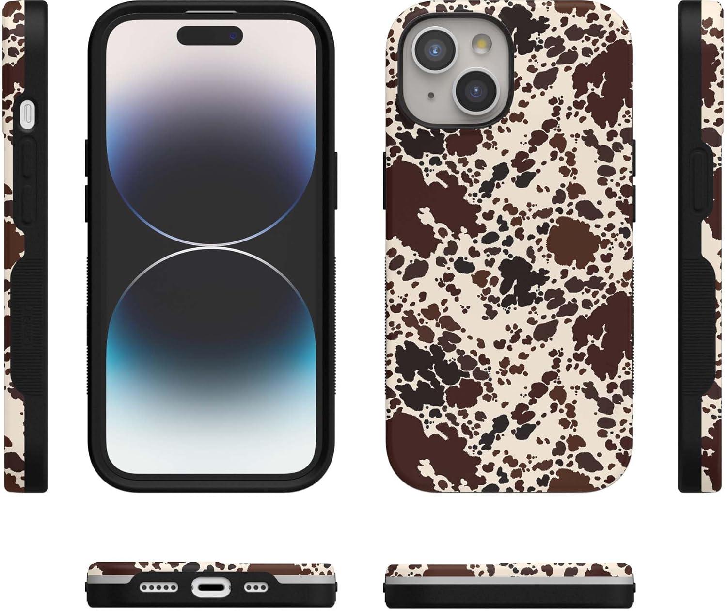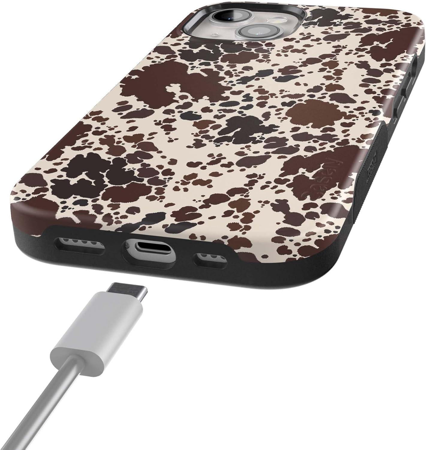 Casely iPhone 15 Case | Be Mine | Tiny Hearts | Bold Protective Design | Compatible with MagSafe(Cowgirl Envy | Cow Print)