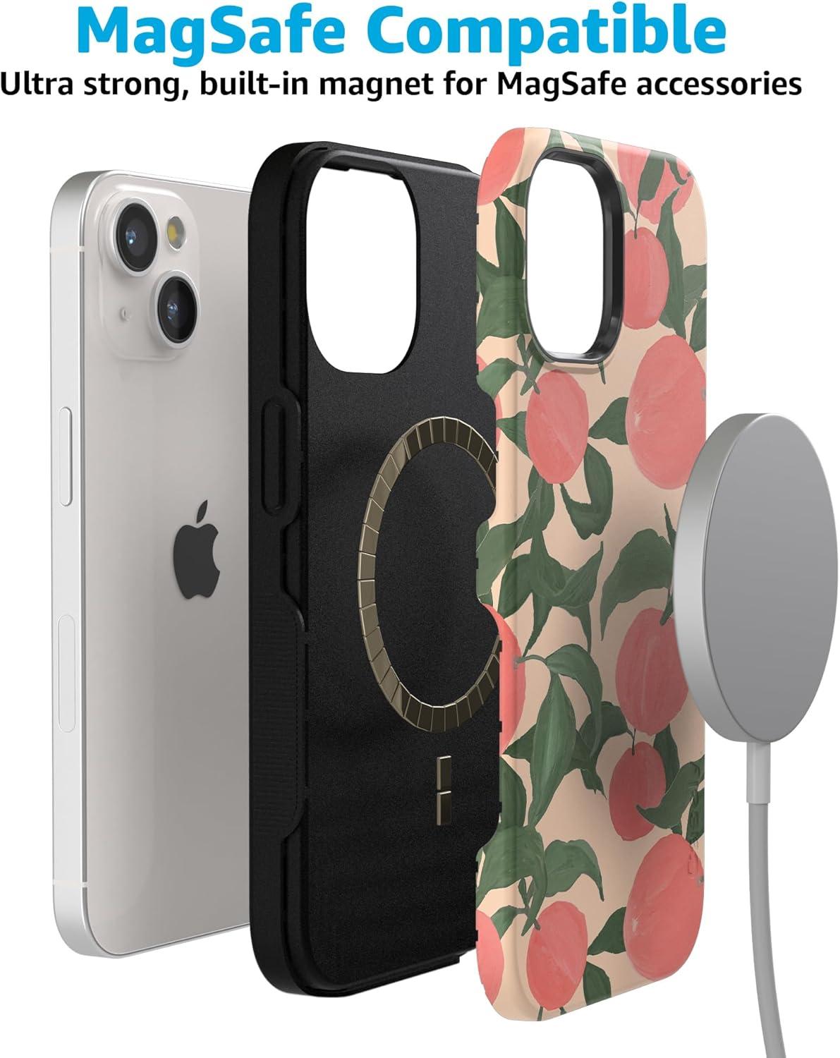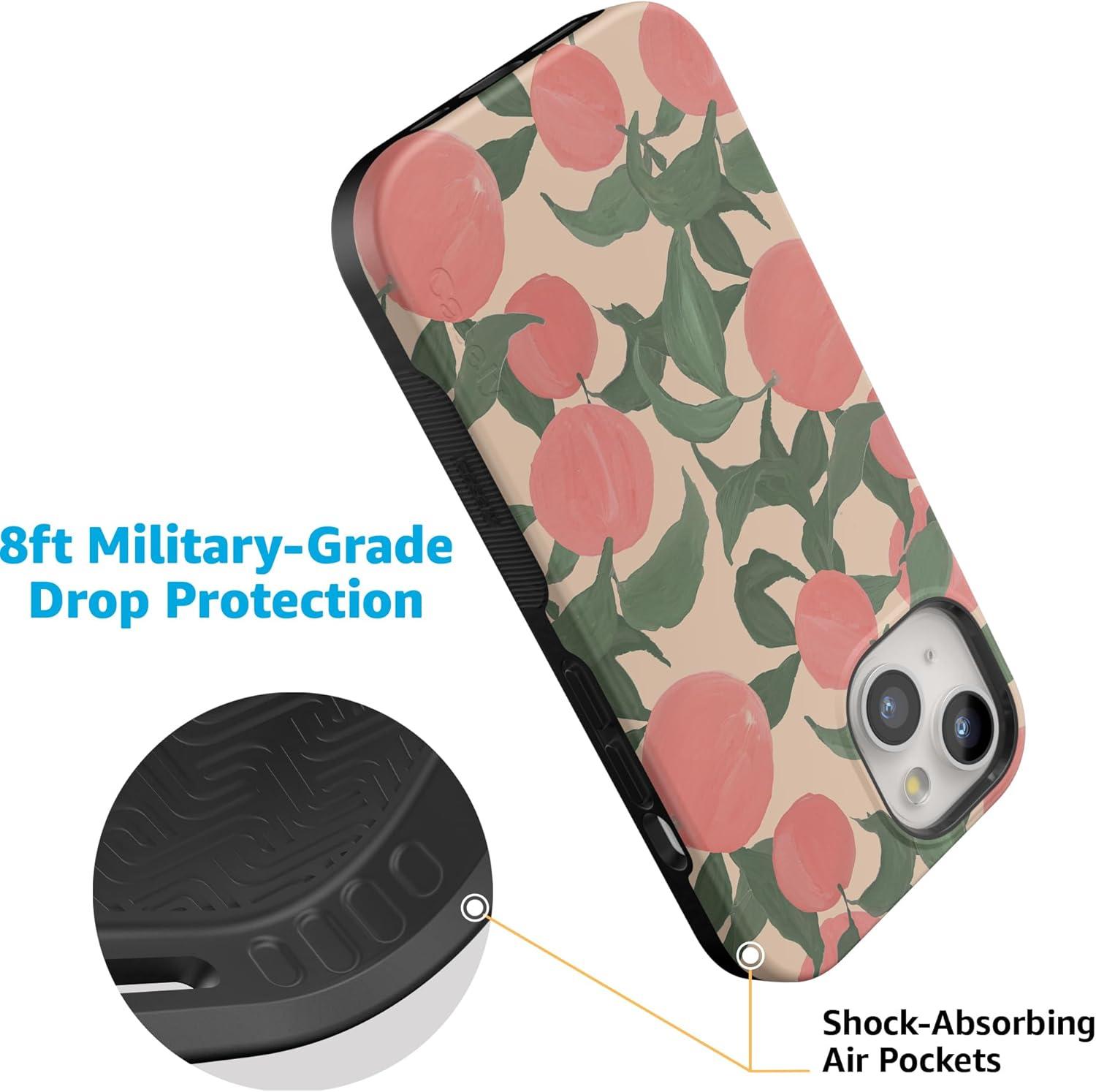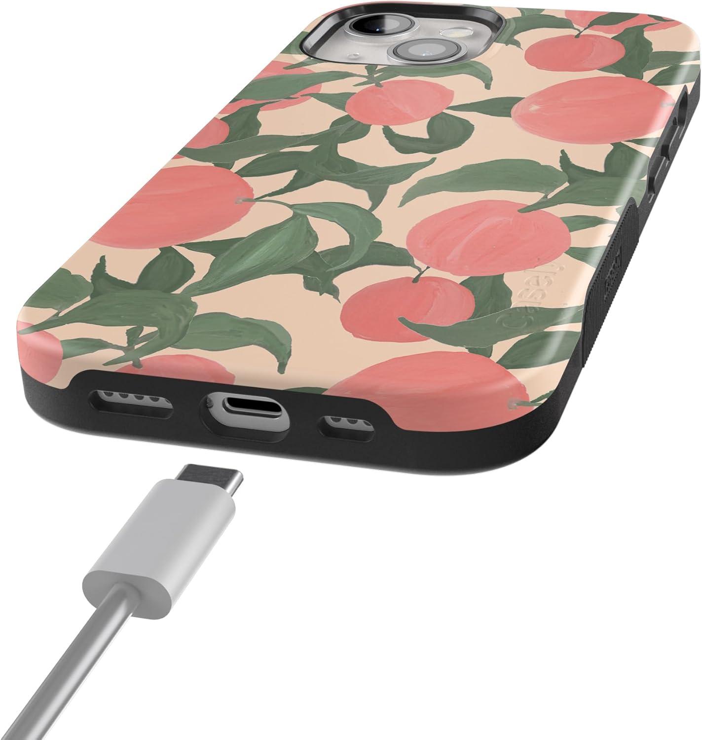 Casely iPhone 15 Case | Be Mine | Tiny Hearts | Bold Protective Design | Compatible with MagSafe(Feeling Peachy | Blush Vines)