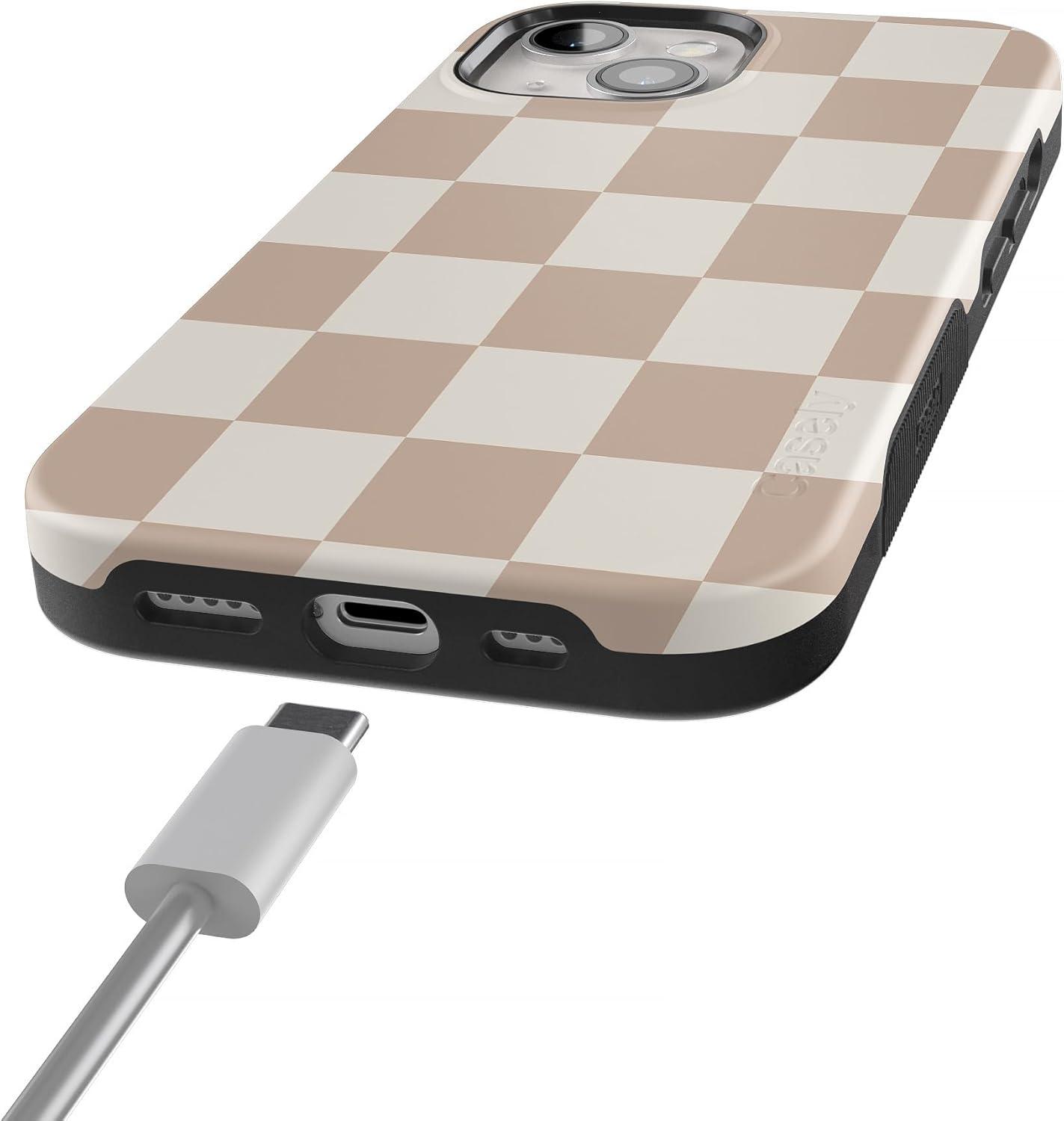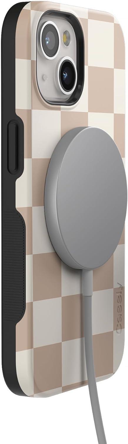 Casely iPhone 15 Case | Be Mine | Tiny Hearts | Bold Protective Design | Compatible with MagSafe(Fit Check | Neutral Checkerboard)
