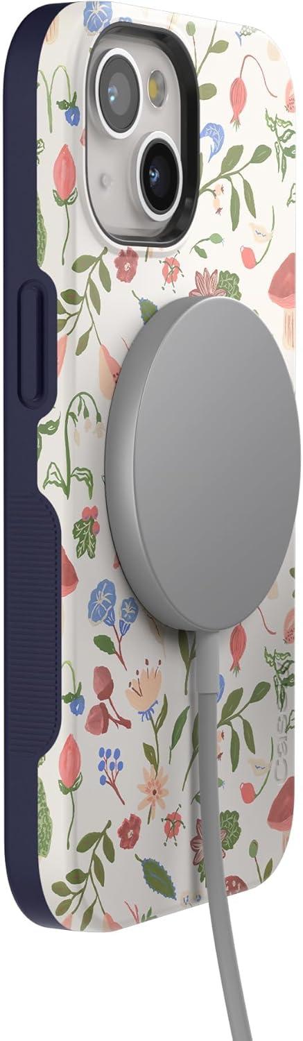 Casely iPhone 15 Case | Be Mine | Tiny Hearts | Bold Protective Design | Compatible with MagSafe(Garden Party | Mushroom Floral)