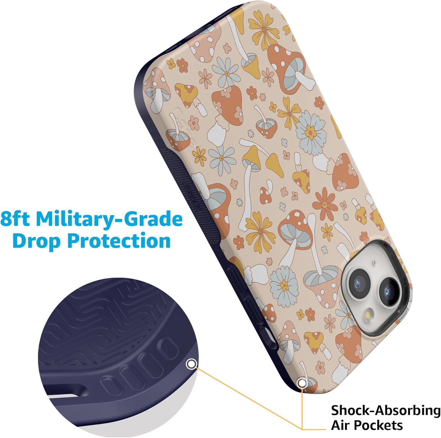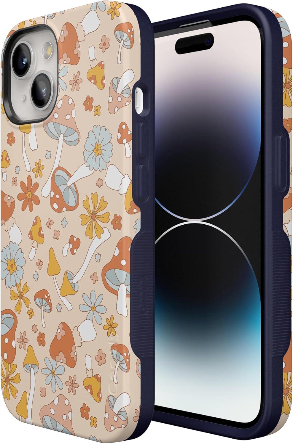 Casely iPhone 15 Case | Be Mine | Tiny Hearts | Bold Protective Design | Compatible with MagSafe(Mushroom Magic | Retro Floral)