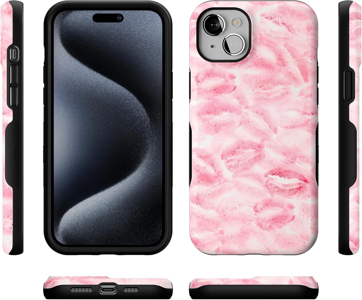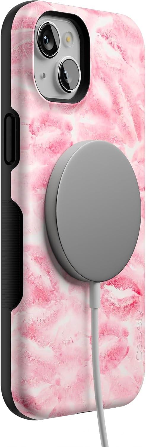 Casely iPhone 15 Case | Be Mine | Tiny Hearts | Bold Protective Design | Compatible with MagSafe(Sealed with a Kiss | Pink Lipstick)