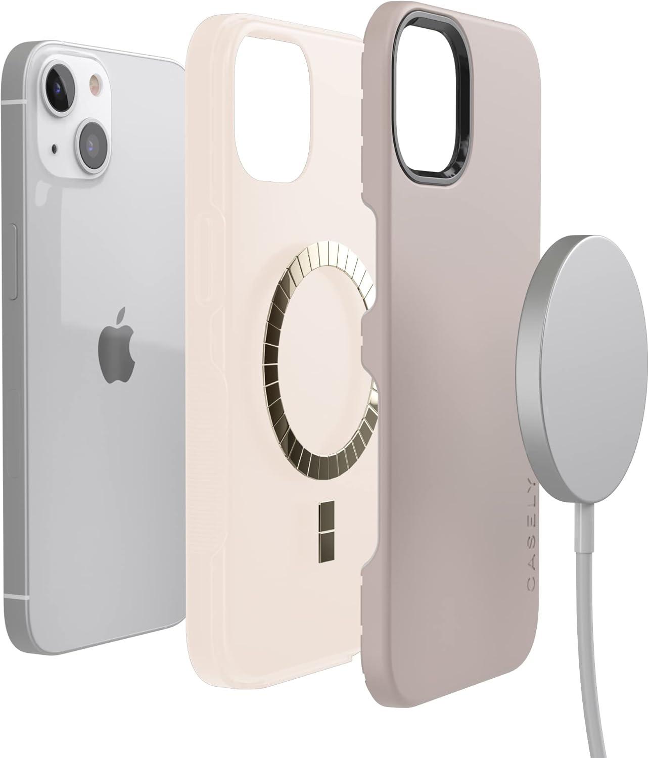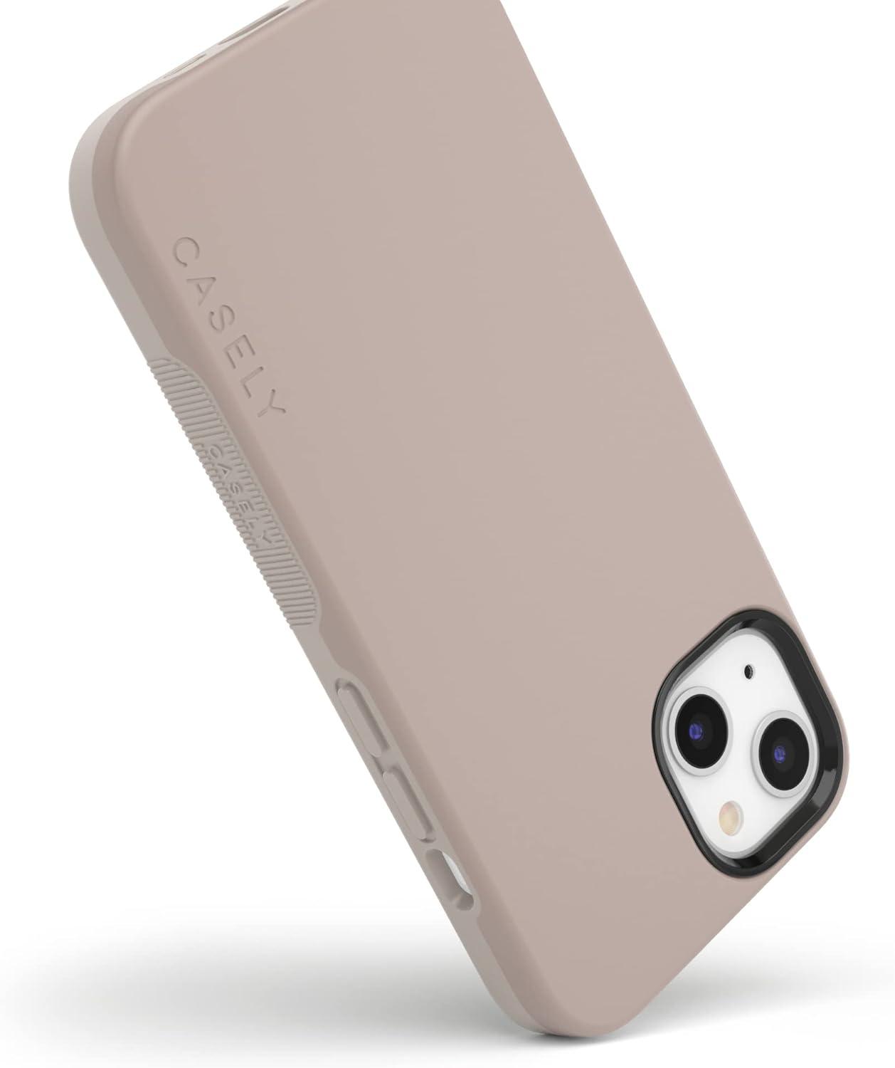 Casely iPhone 15 Case | Be Mine | Tiny Hearts | Bold Protective Design | Compatible with MagSafe(Taupe on Nude)