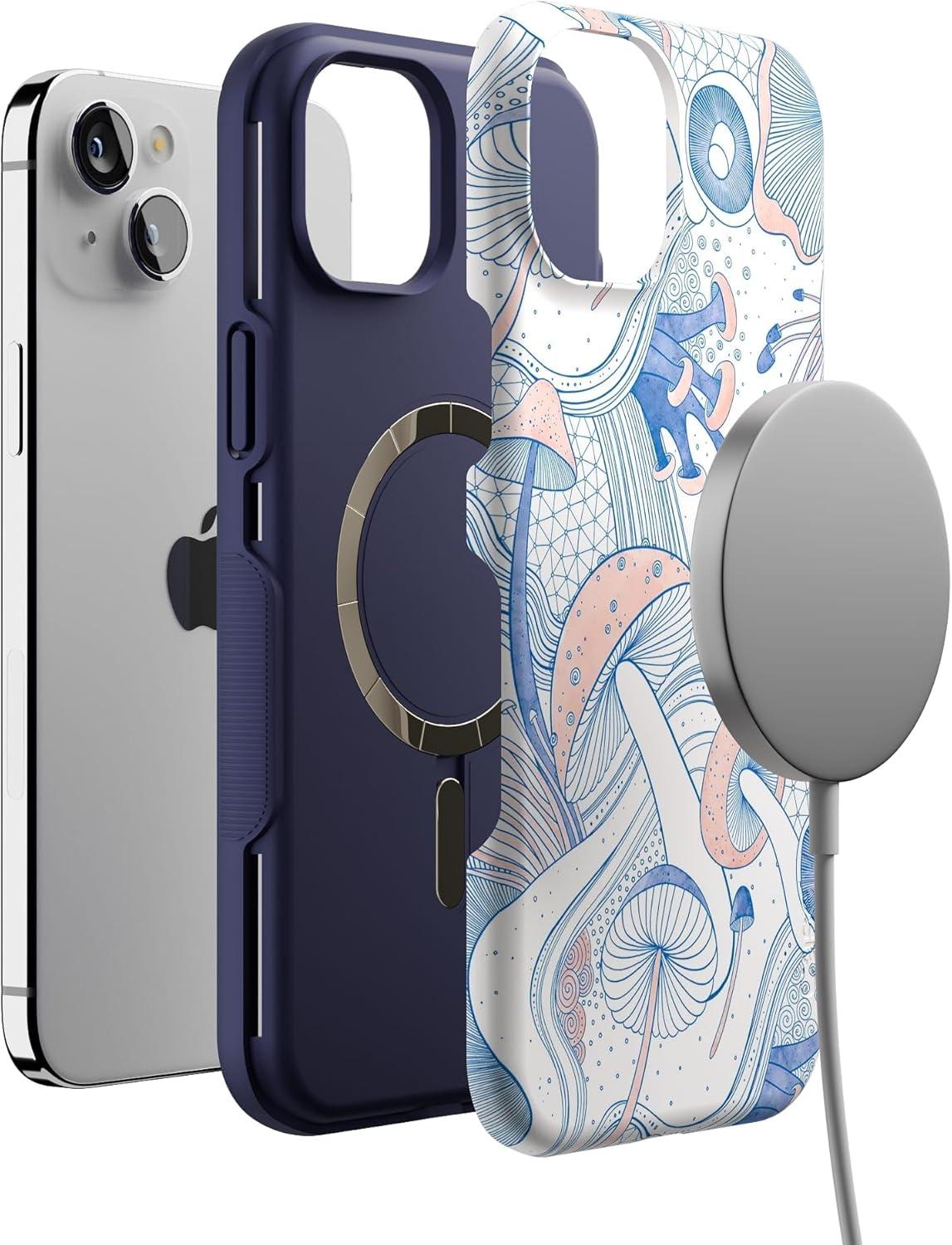 Casely iPhone 15 Case | Be Mine | Tiny Hearts | Bold Protective Design | Compatible with MagSafe(The Fun Guy | Enchanted Forest Mushroom Floral)