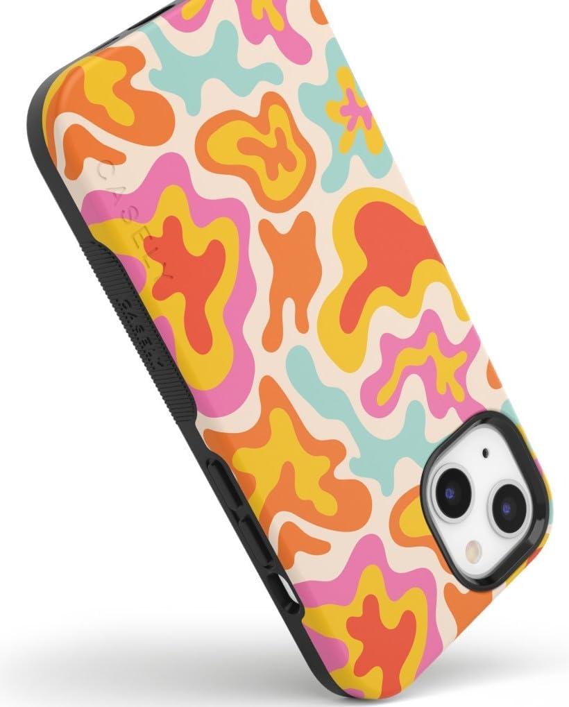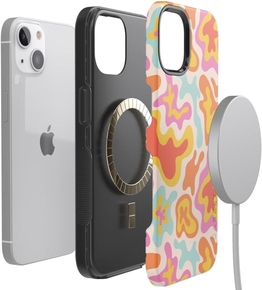 Casely iPhone 15 Case | Be Mine | Tiny Hearts | Bold Protective Design | Compatible with MagSafe(Tropical Color Splash | Abstract Retro)