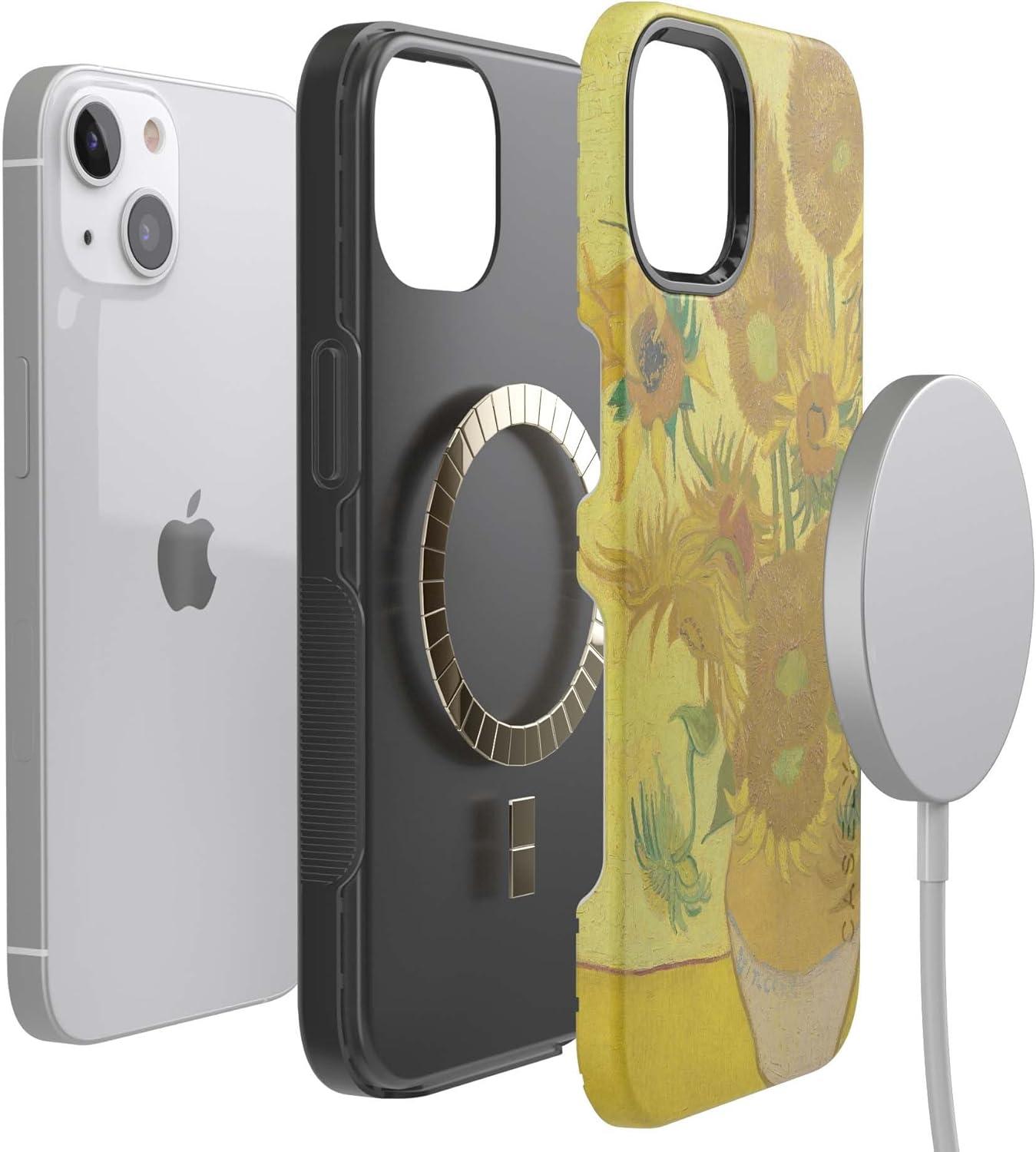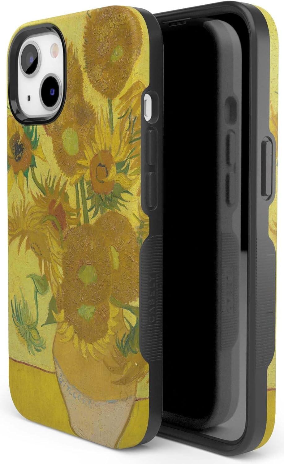 Casely iPhone 15 Case | Be Mine | Tiny Hearts | Bold Protective Design | Compatible with MagSafe(Van Gogh | Sunflowers Floral)