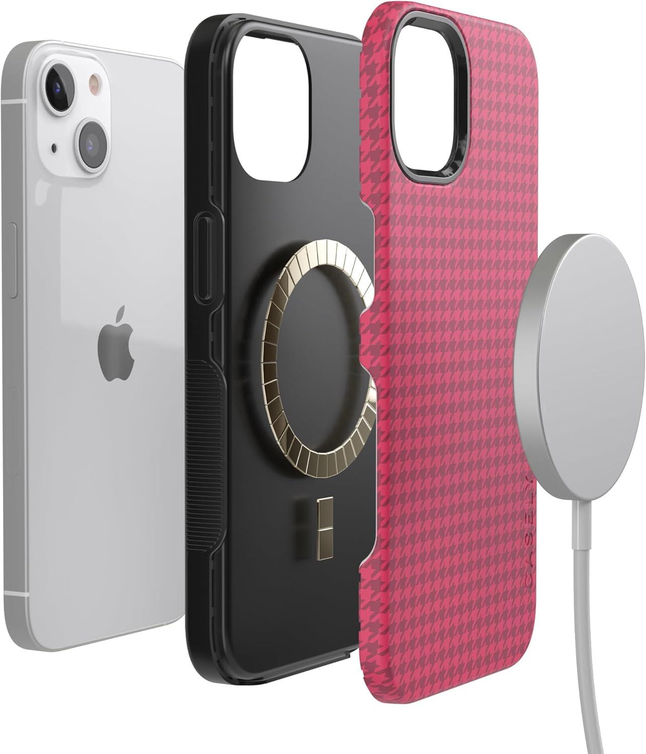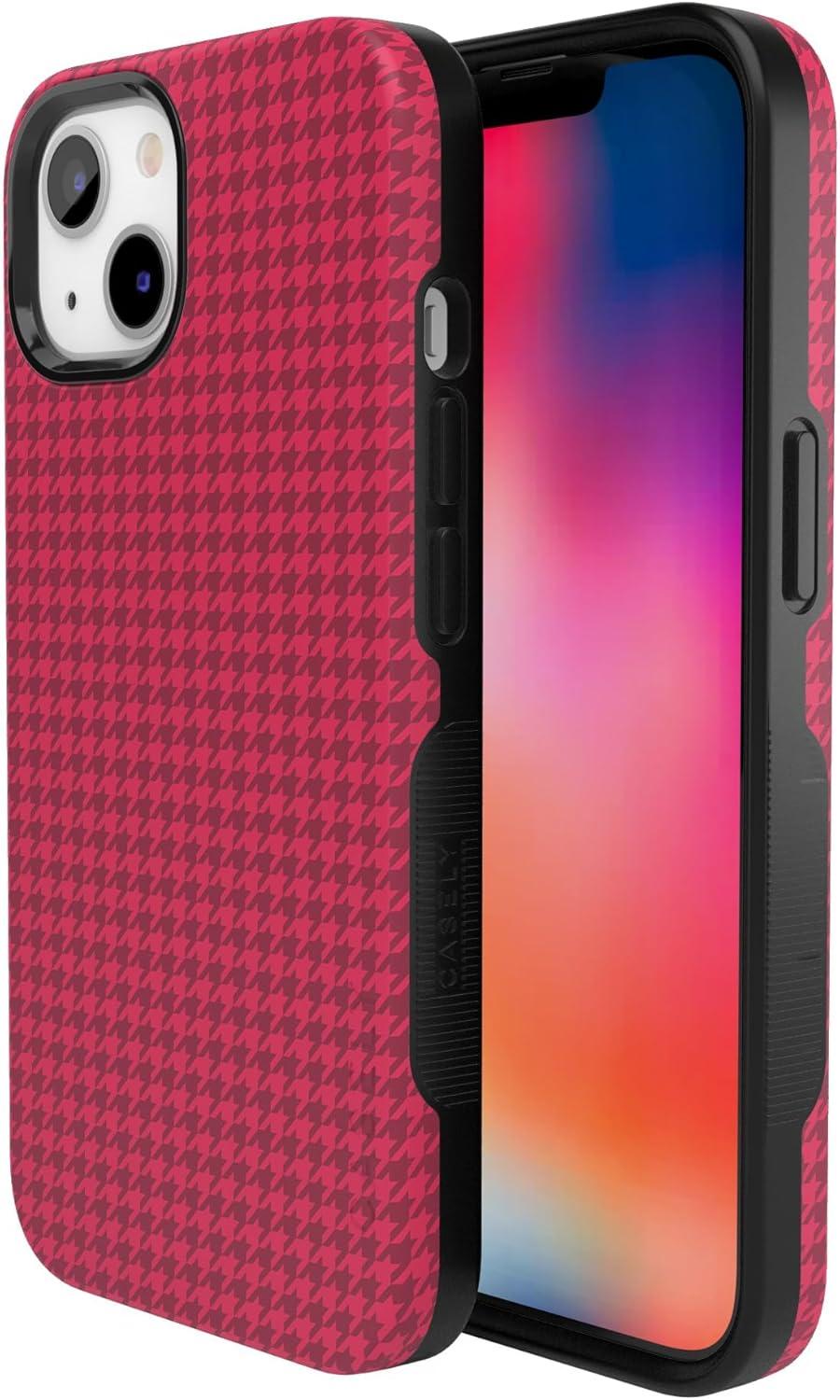 Casely iPhone 15 Case | Best Dressed | Red Houndstooth | Bold Protective Design | MagSafe Compatible Design