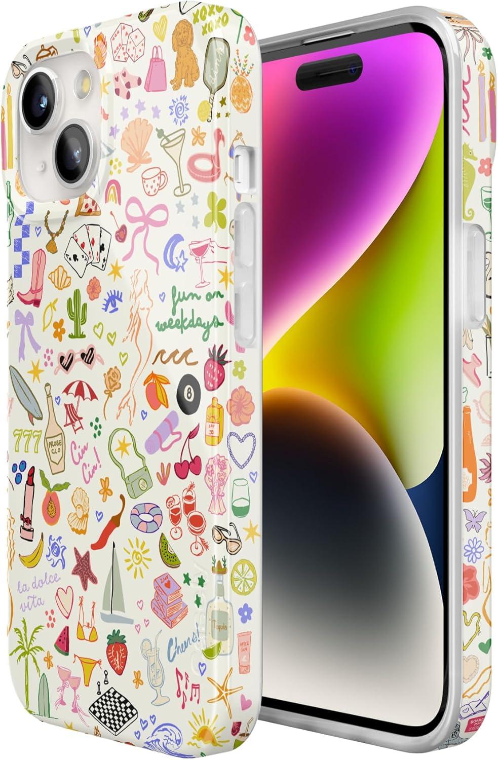 Casely iPhone 15 Case | Falling for You | Plum Floral | Compatible with MagSafe | Classic Ultra Slim Design(All the Fun Things | Fun on Weekdays)