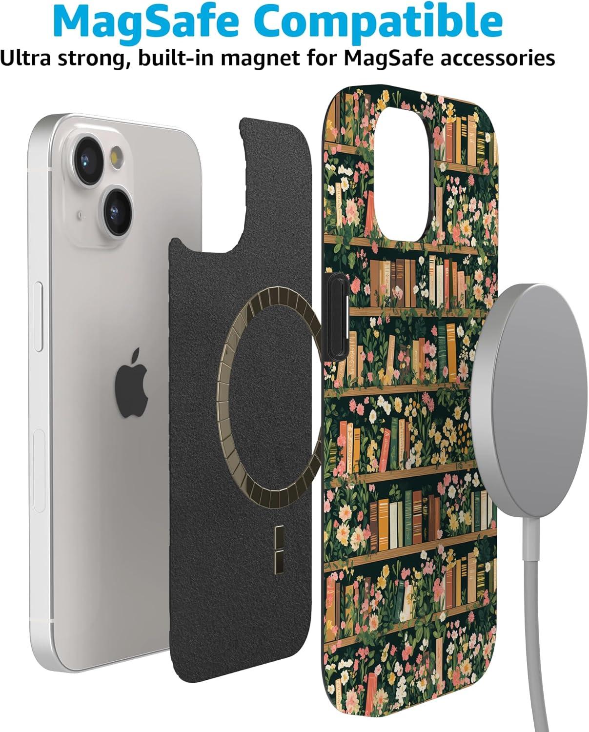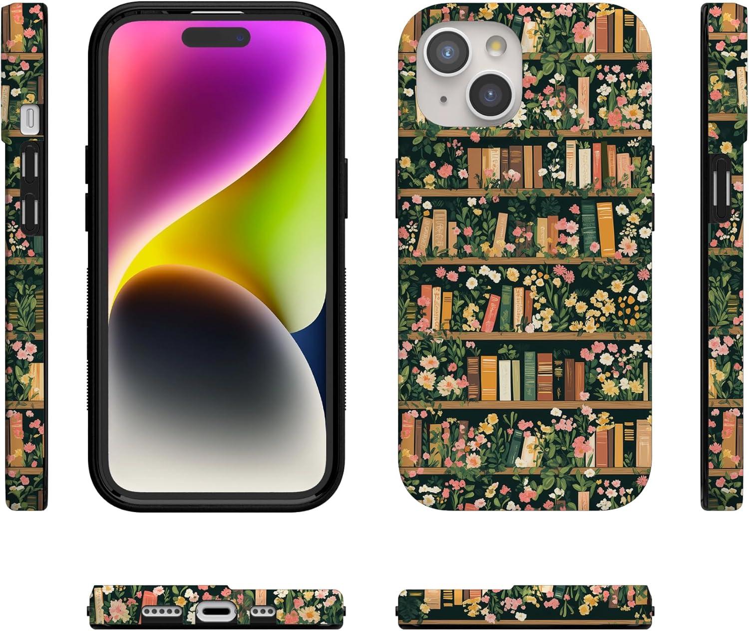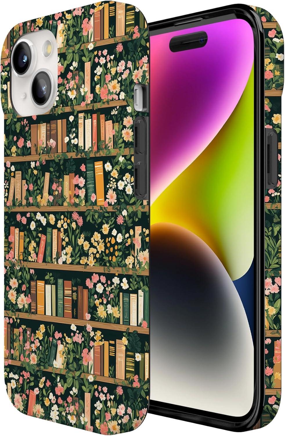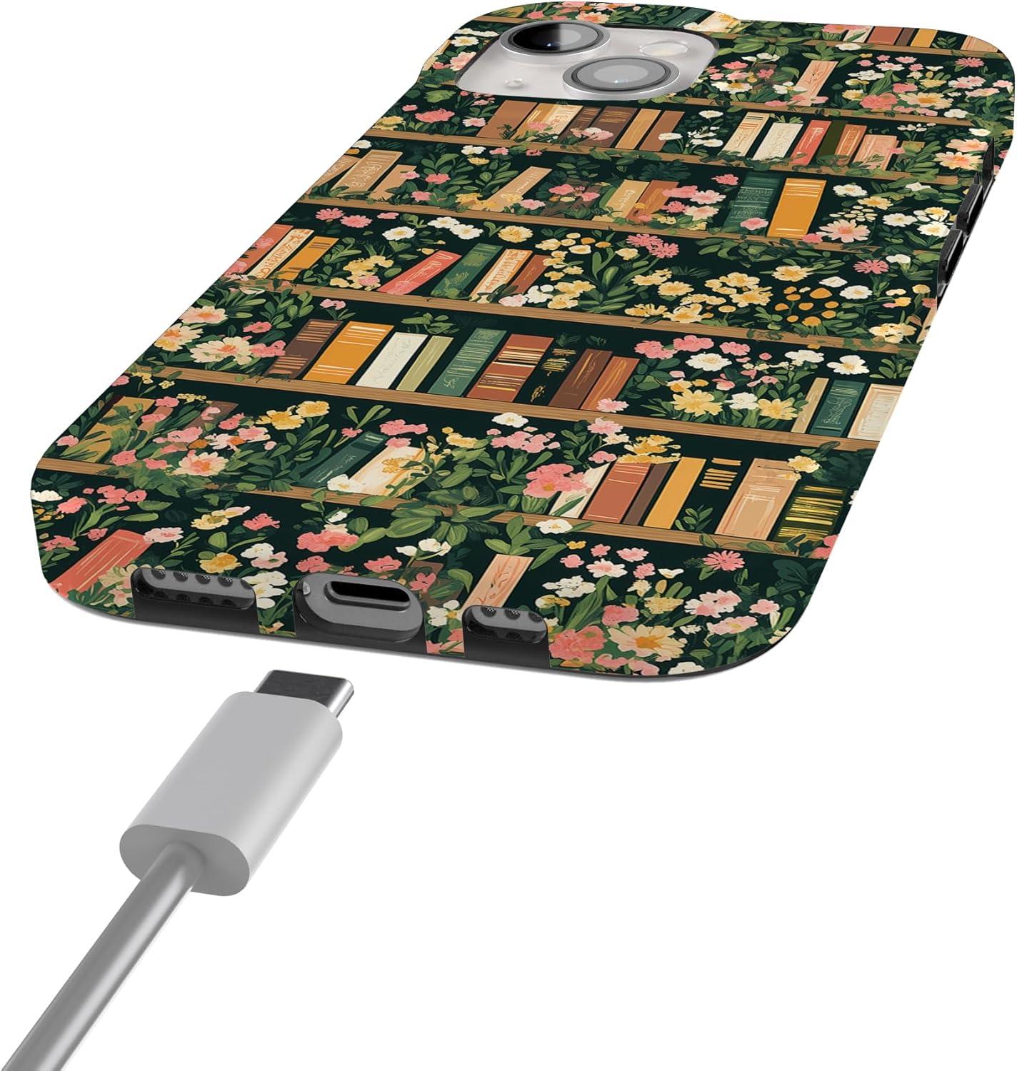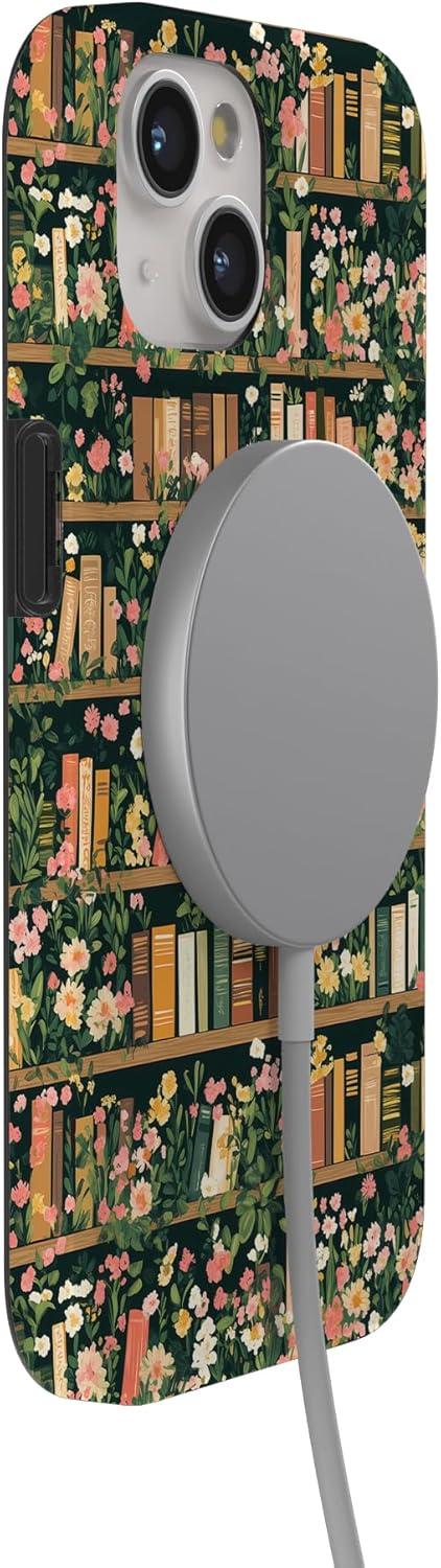 Casely iPhone 15 Case | Falling for You | Plum Floral | Compatible with MagSafe | Classic Ultra Slim Design(Book Nook | Floral Library)