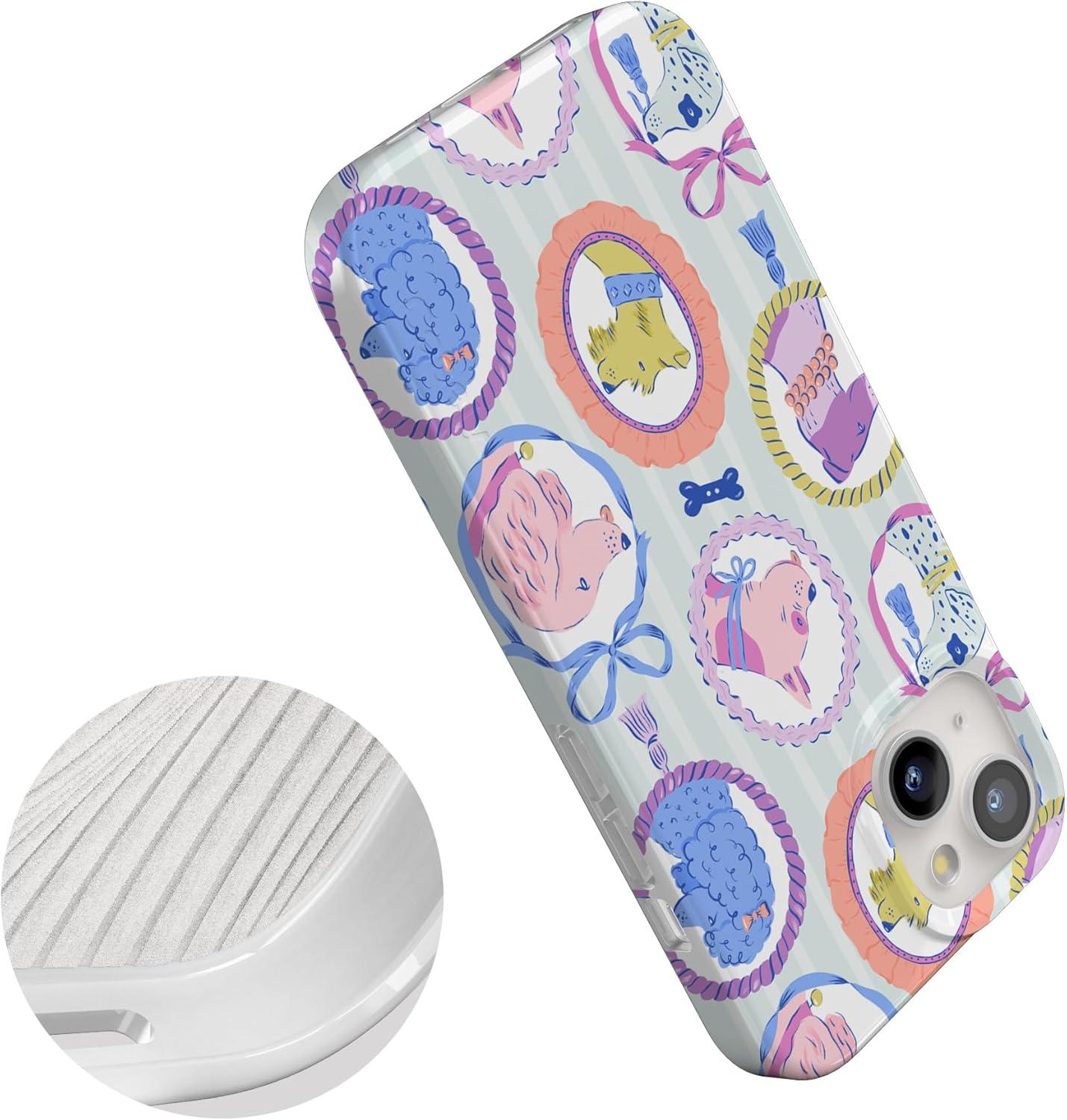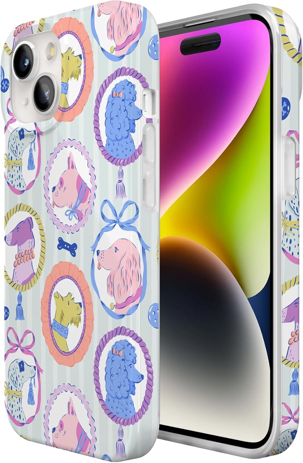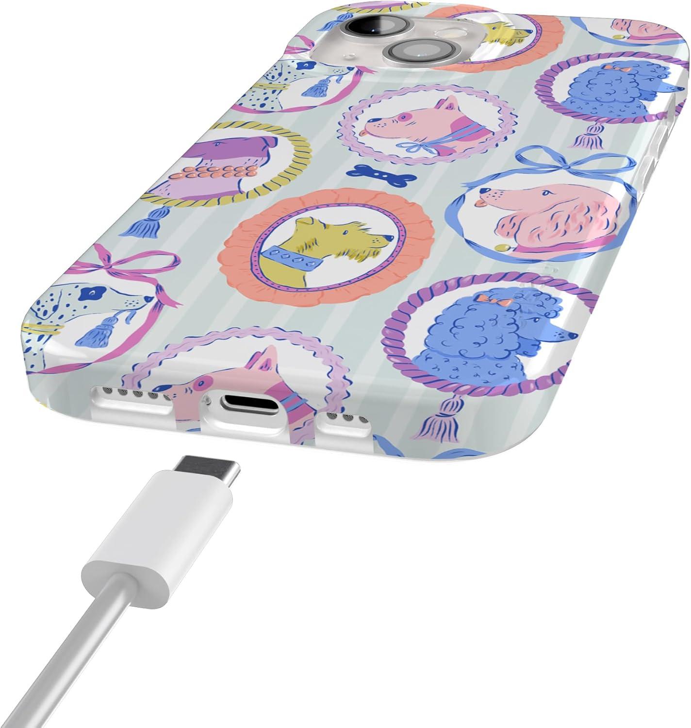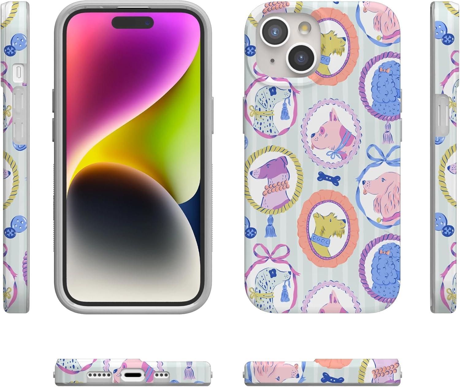 Casely iPhone 15 Case | Falling for You | Plum Floral | Compatible with MagSafe | Classic Ultra Slim Design(Chateau Pups | French Dog)