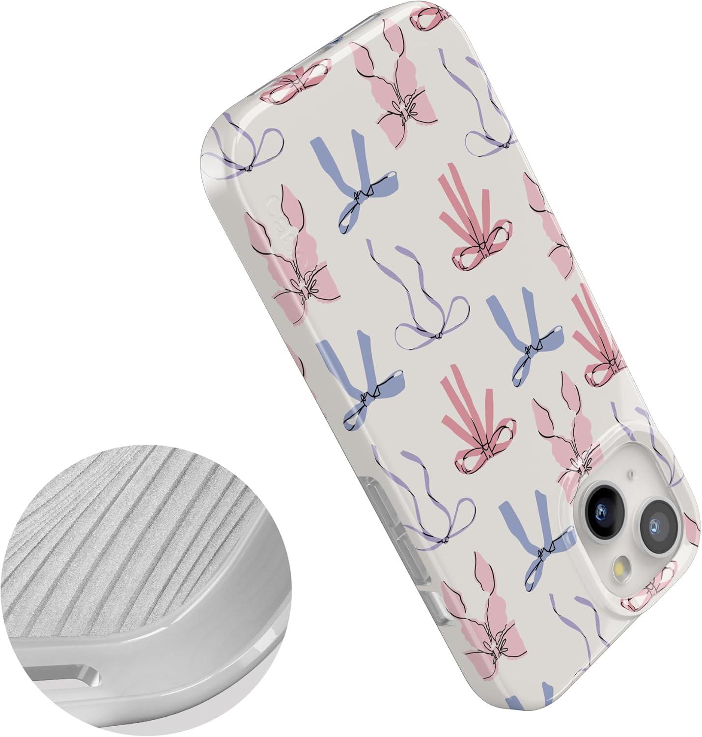 Casely iPhone 15 Case | Falling for You | Plum Floral | Compatible with MagSafe | Classic Ultra Slim Design(Coquette Girlie | Pastel Bows)