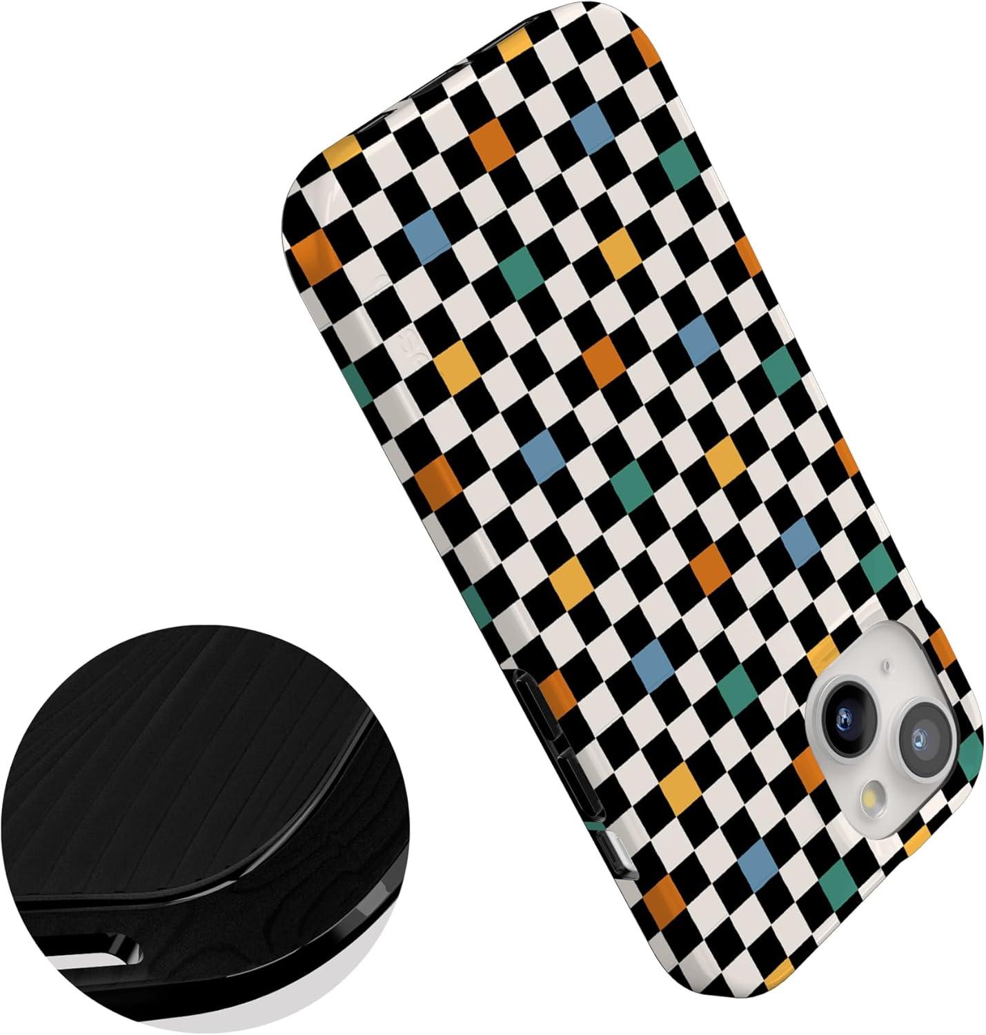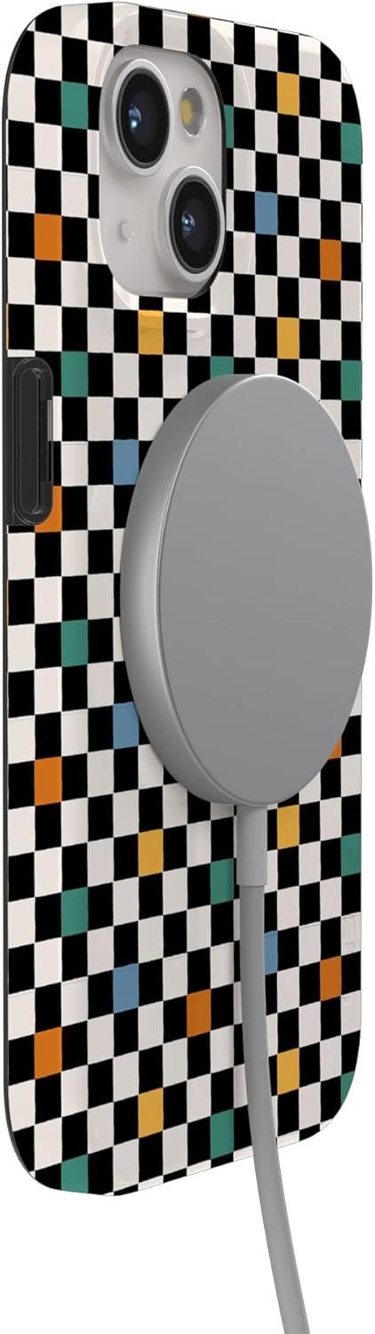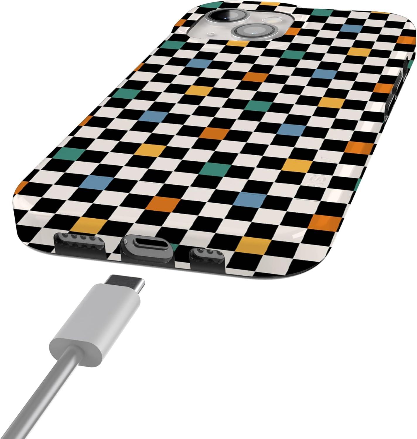 Casely iPhone 15 Case | Falling for You | Plum Floral | Compatible with MagSafe | Classic Ultra Slim Design(Old Skool | Retro Checkerboard)