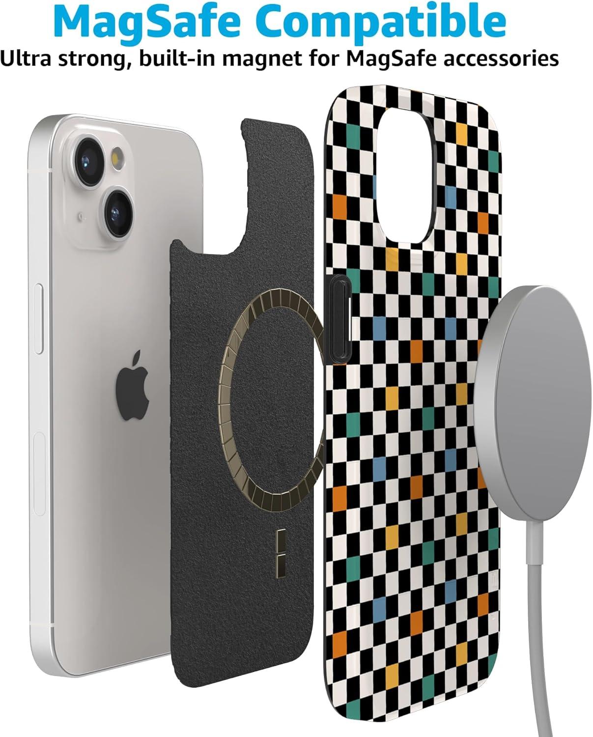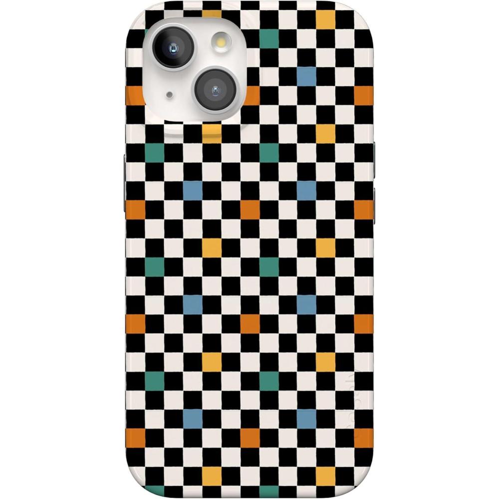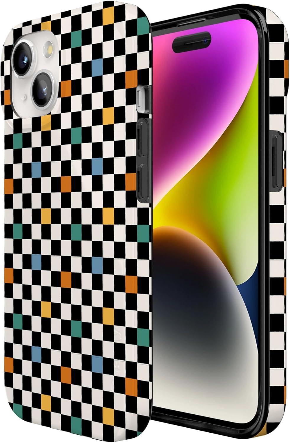Casely iPhone 15 Case | Falling for You | Plum Floral | Compatible with MagSafe | Classic Ultra Slim Design(Old Skool | Retro Checkerboard)