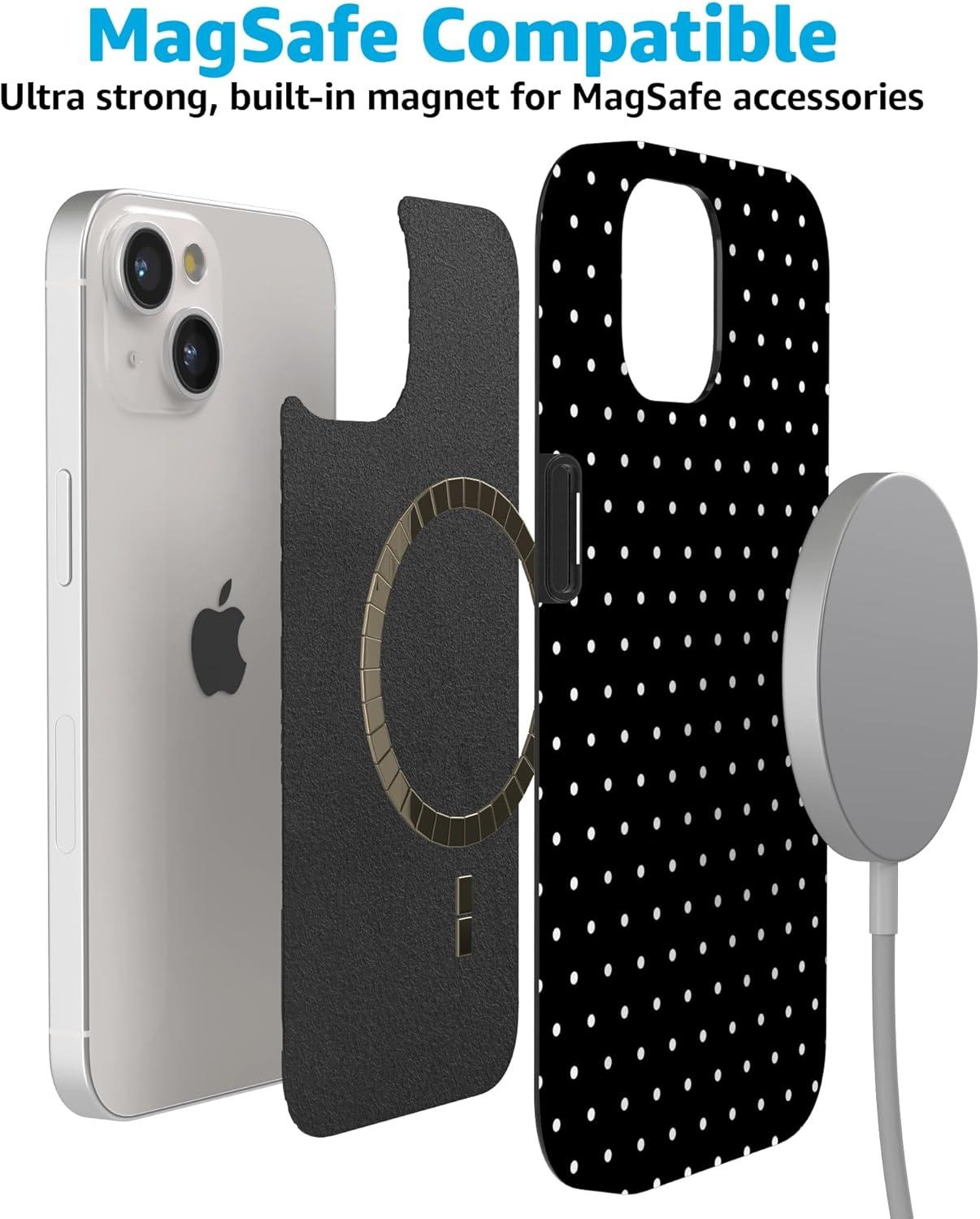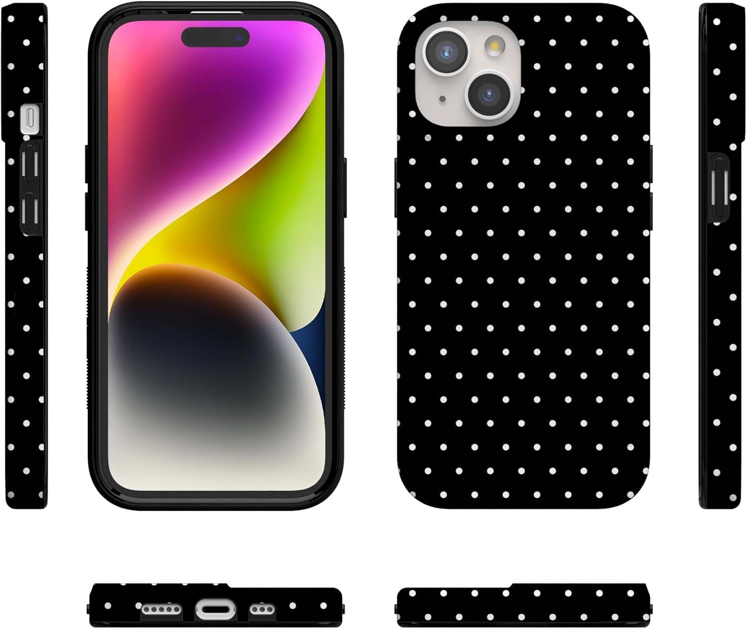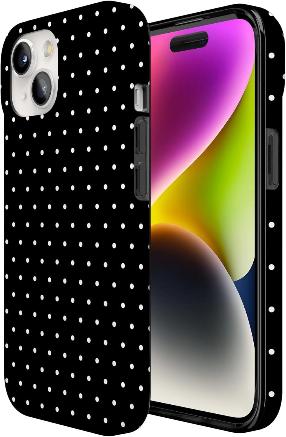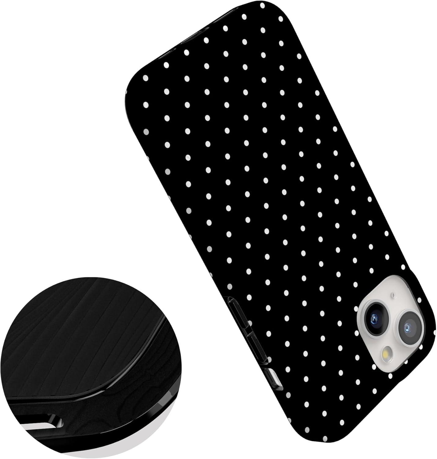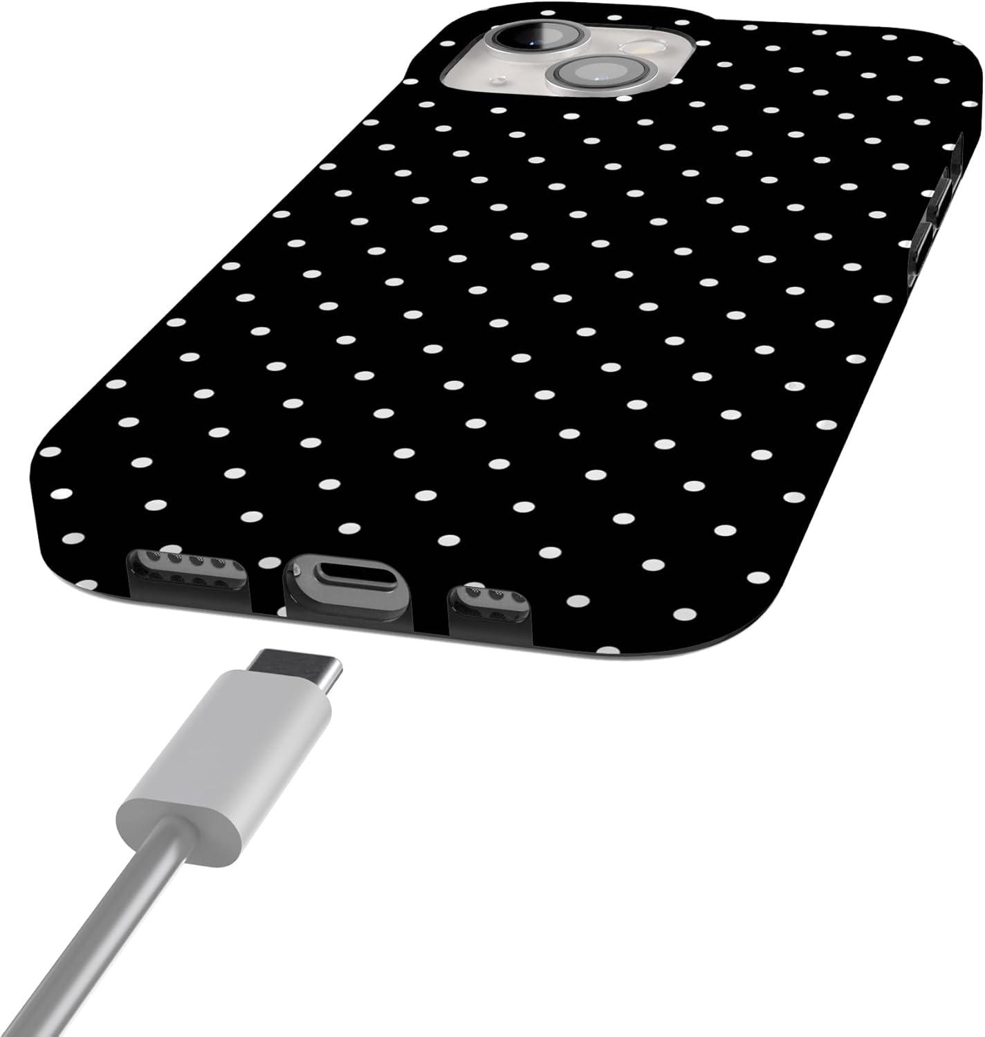 Casely iPhone 15 Case | Falling for You | Plum Floral | Compatible with MagSafe | Classic Ultra Slim Design(On the Dot | Black Polka Dot)