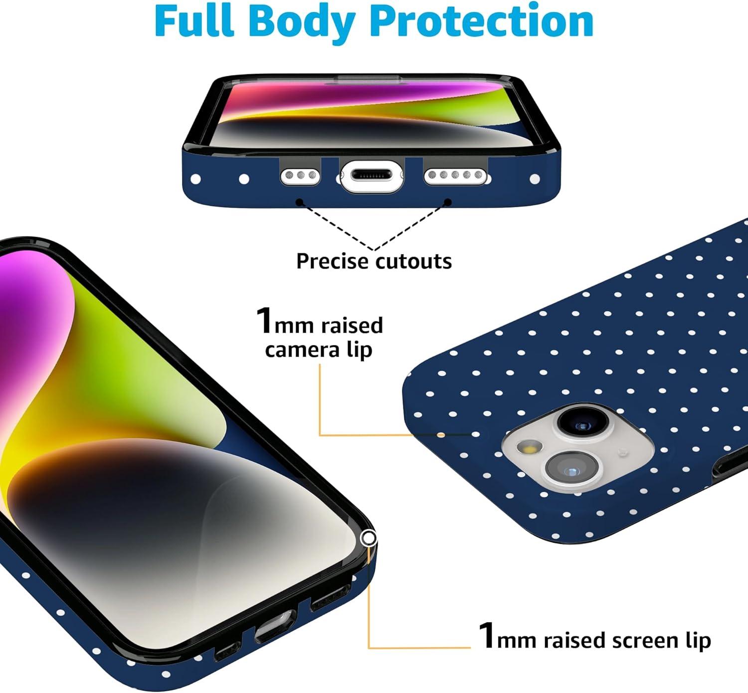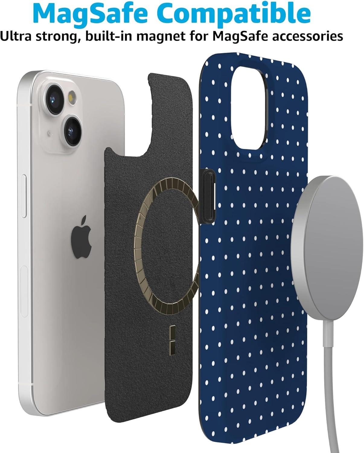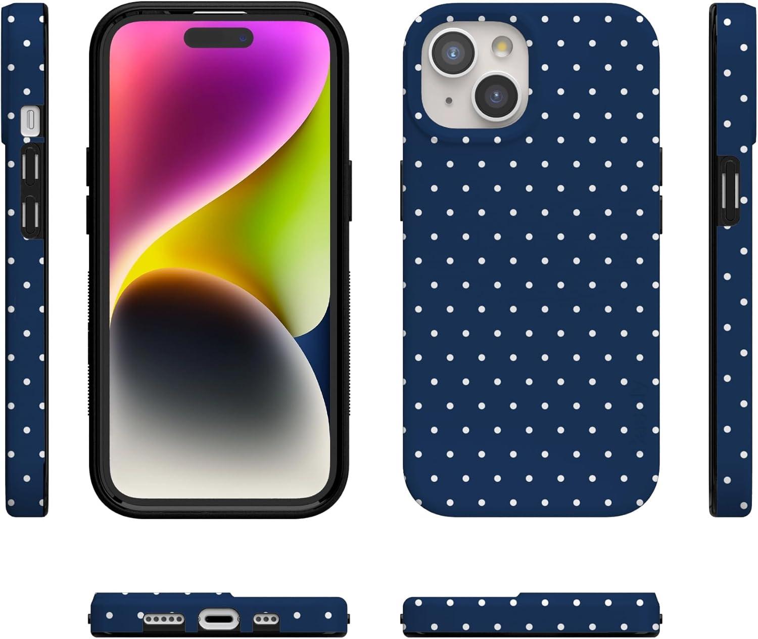 Casely iPhone 15 Case | Falling for You | Plum Floral | Compatible with MagSafe | Classic Ultra Slim Design(On the Dot | Navy Polka Dot)