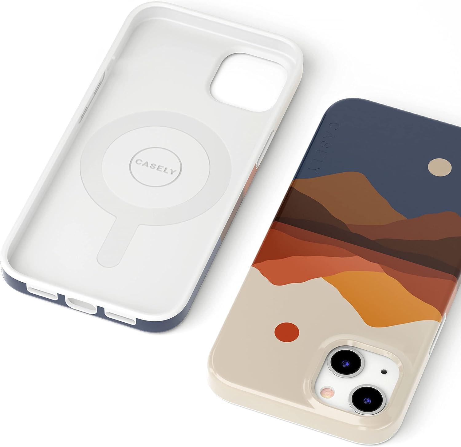 Casely iPhone 15 Case | Falling for You | Plum Floral | Compatible with MagSafe | Classic Ultra Slim Design(Opposites Attract | Day Night Colorblock Mountains)