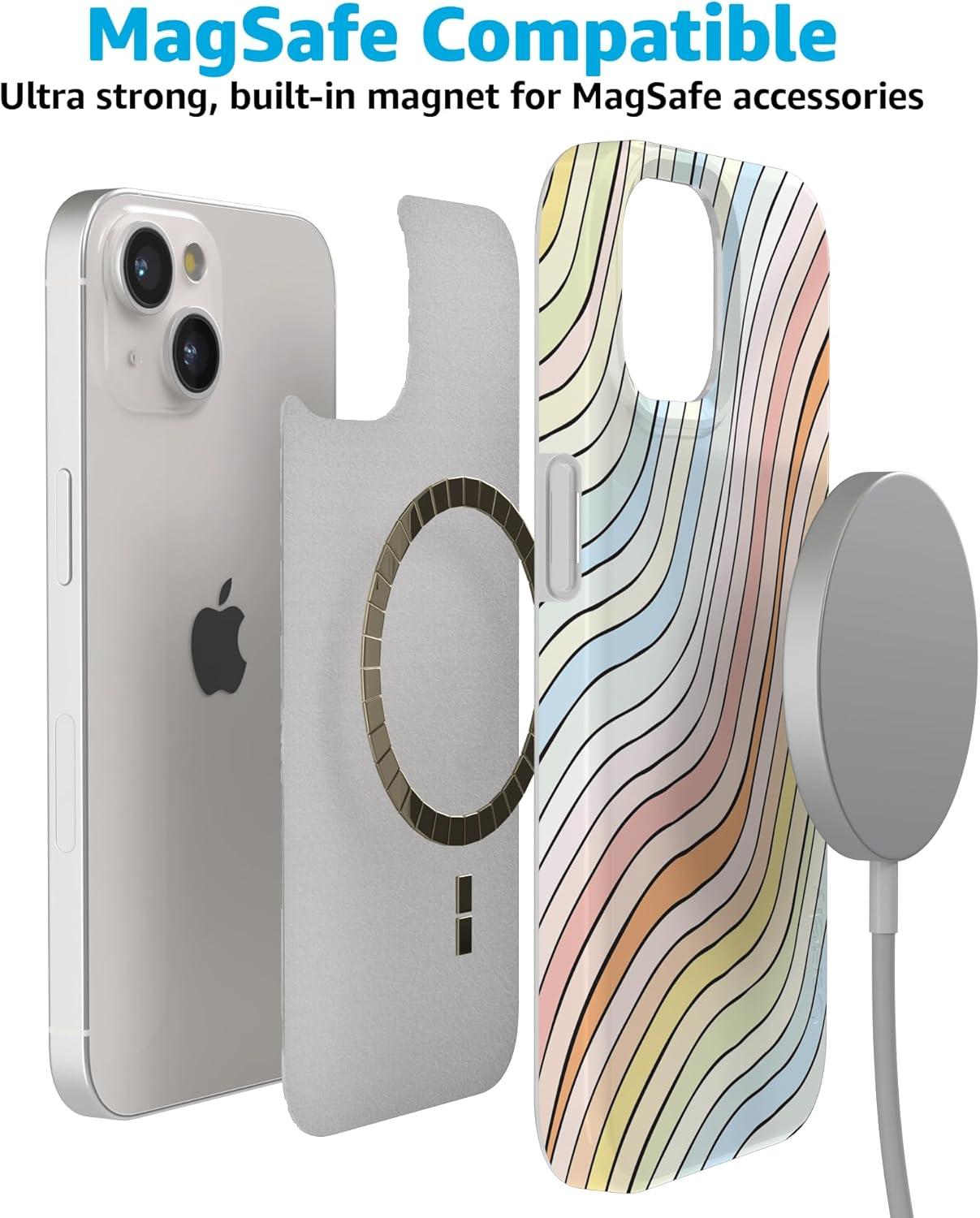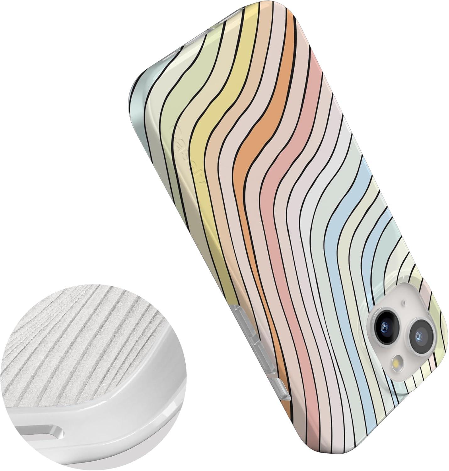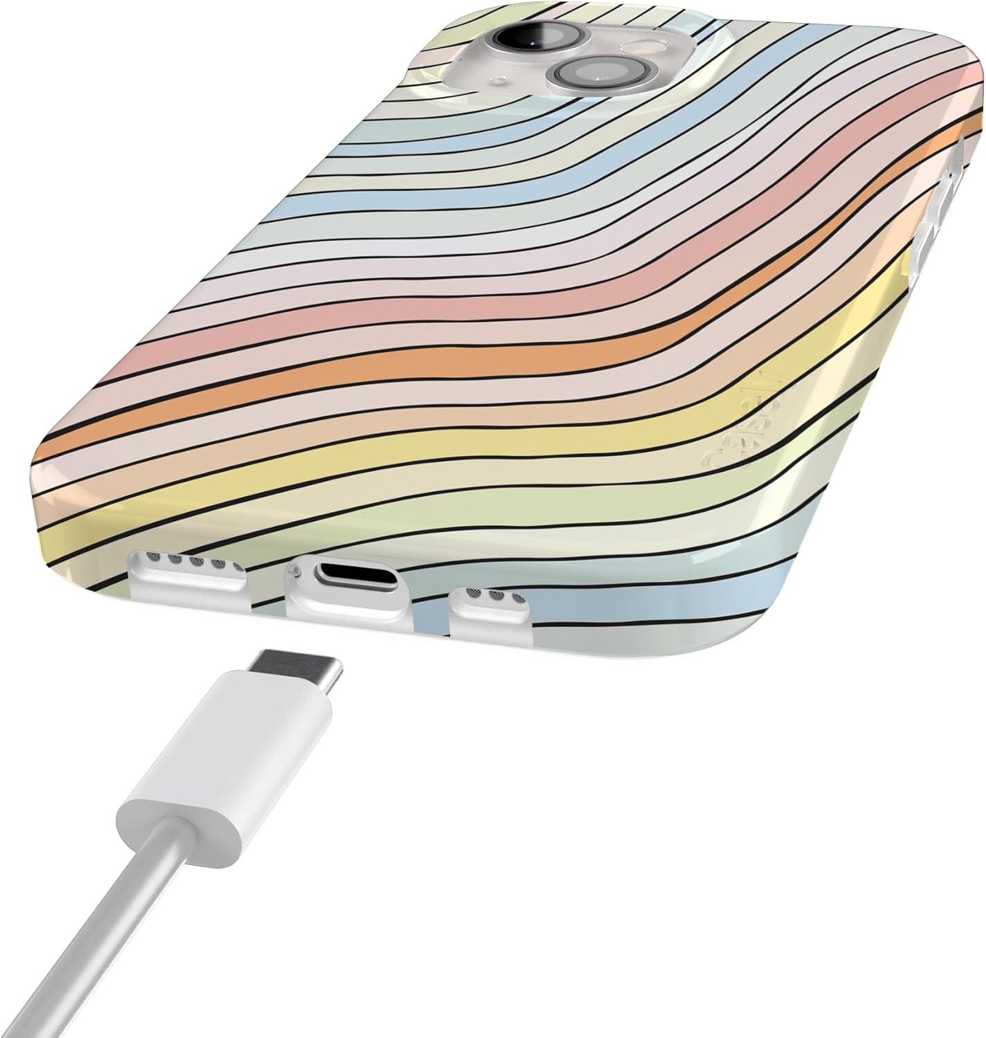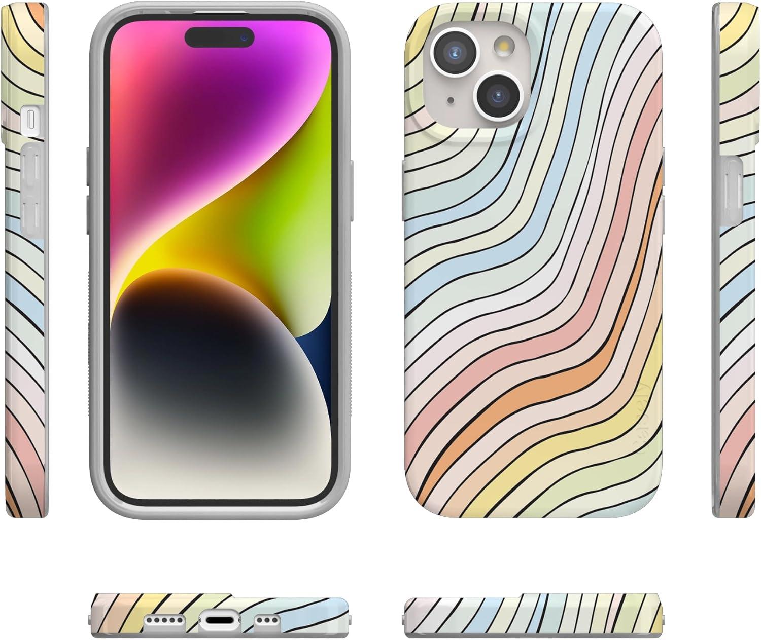 Casely iPhone 15 Case | Falling for You | Plum Floral | Compatible with MagSafe | Classic Ultra Slim Design(Ride The Wave | Pastel Rainbow Lined)