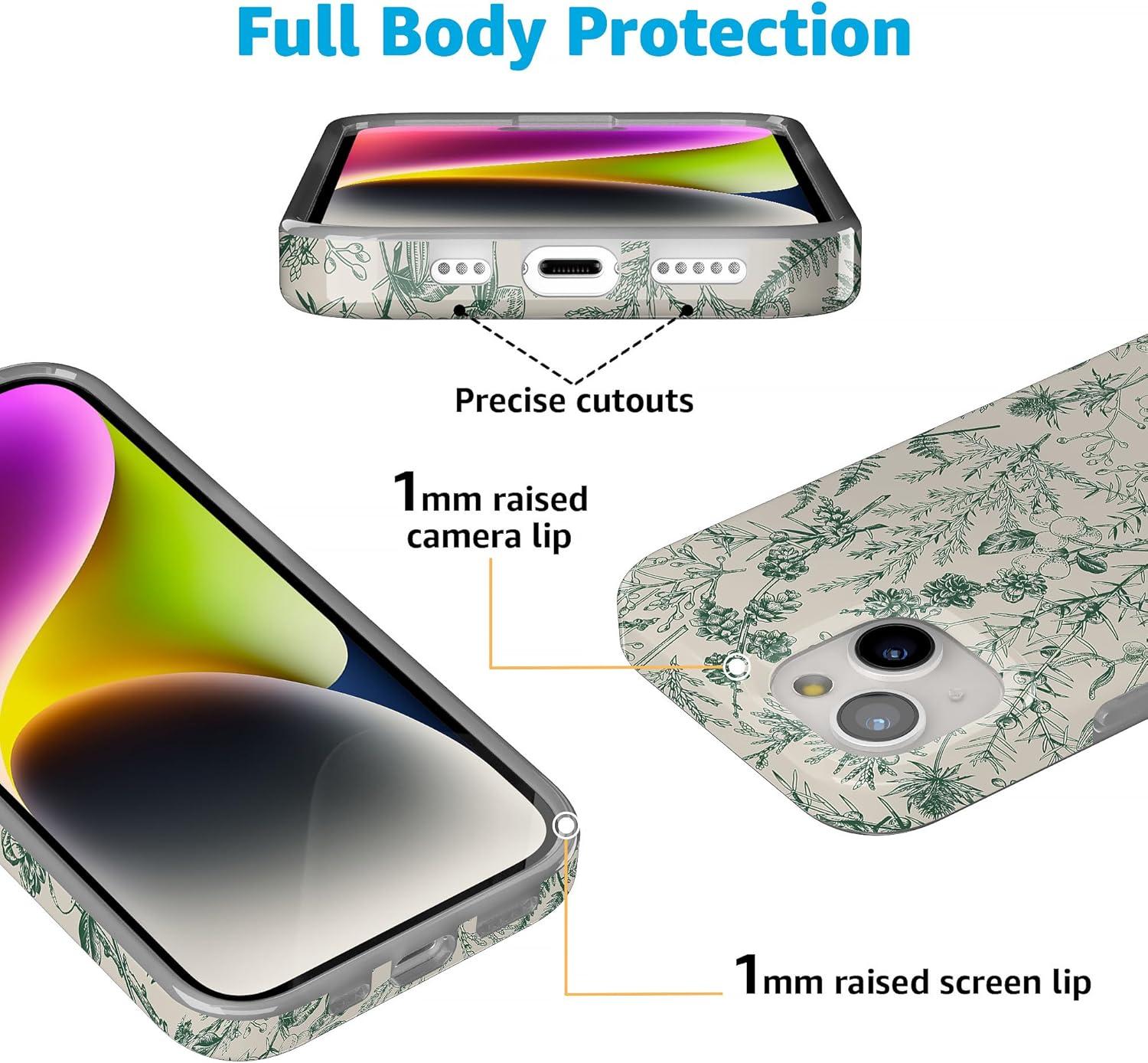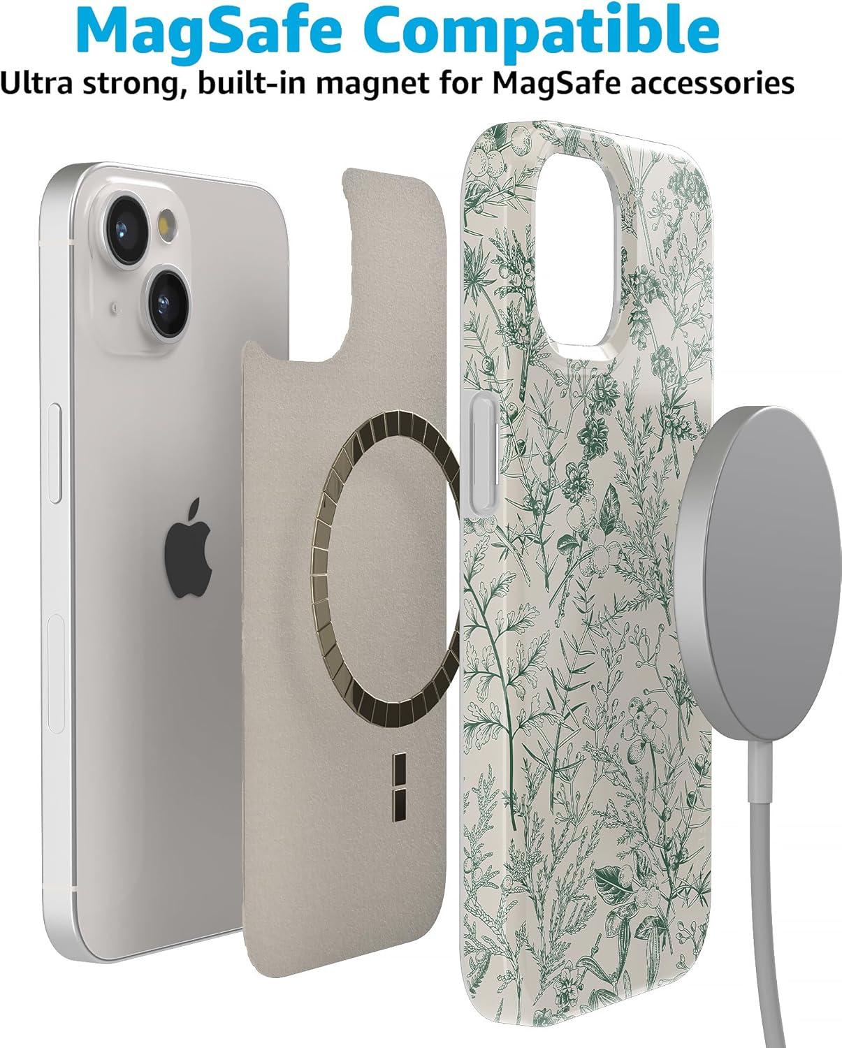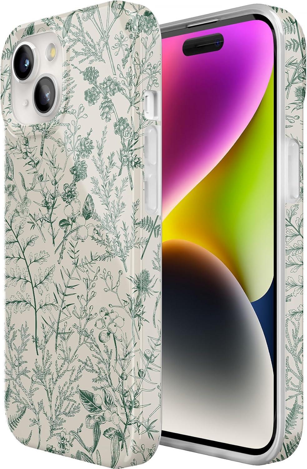 Casely iPhone 15 Case | Falling for You | Plum Floral | Compatible with MagSafe | Classic Ultra Slim Design(Sage Garden | Green Floral Case)