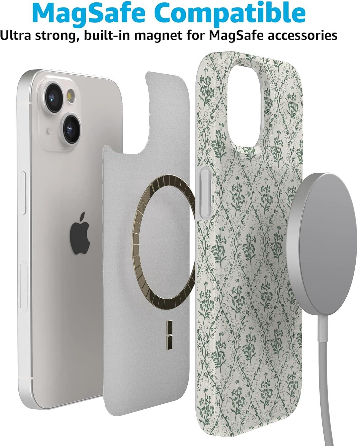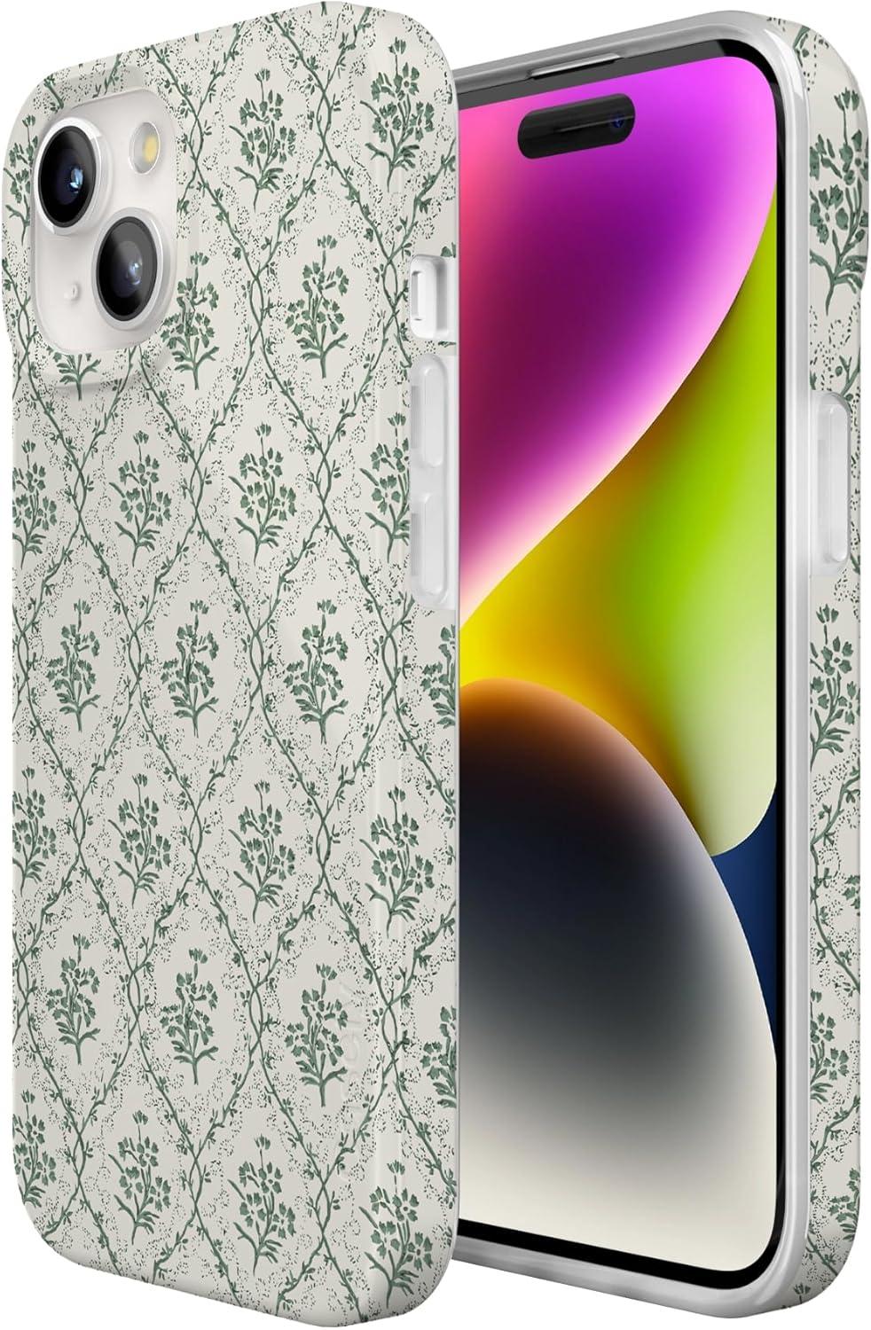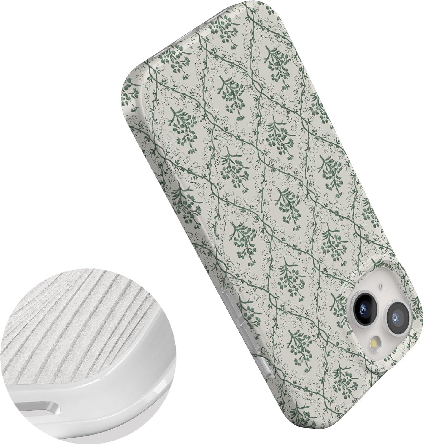 Casely iPhone 15 Case | Falling for You | Plum Floral | Compatible with MagSafe | Classic Ultra Slim Design(Sage Tapestry | Floral Vines)