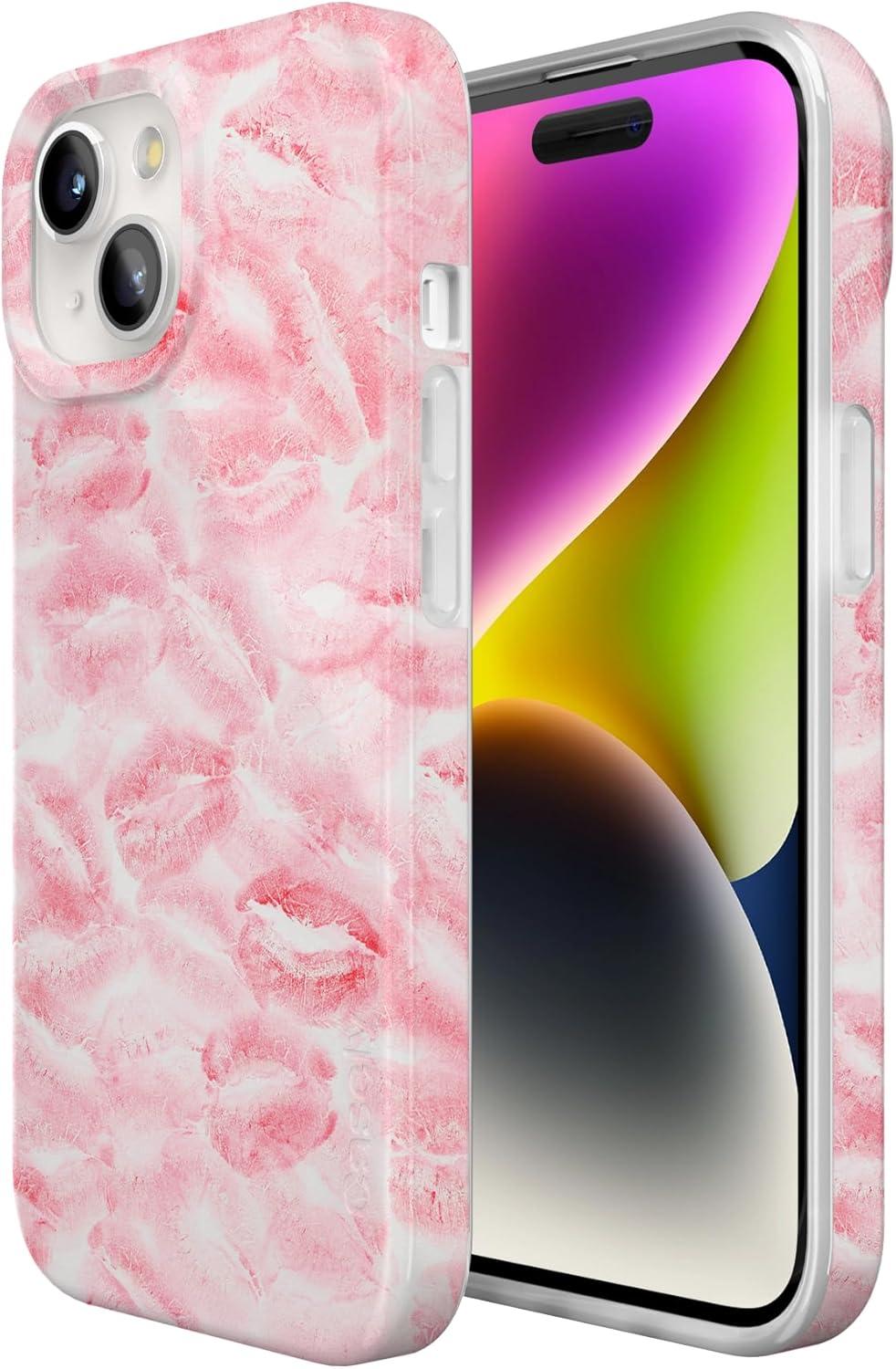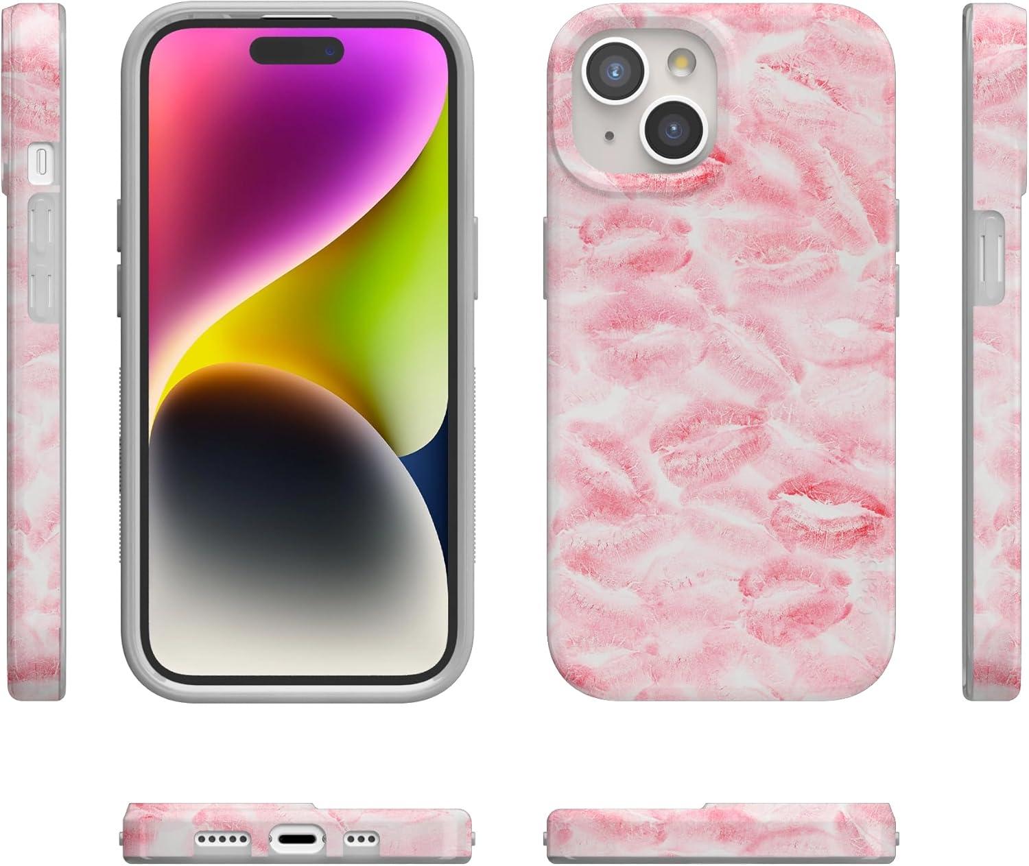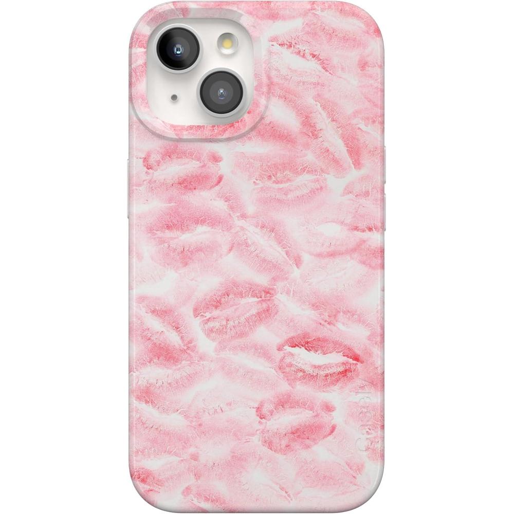 Casely iPhone 15 Case | Falling for You | Plum Floral | Compatible with MagSafe | Classic Ultra Slim Design(Sealed with a Kiss | Pink Lipstick)