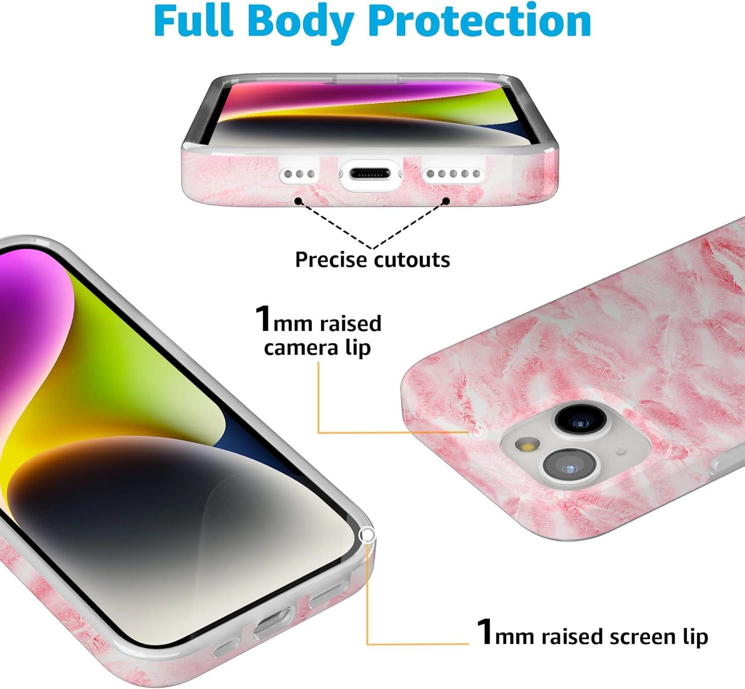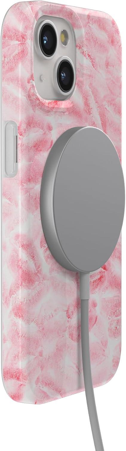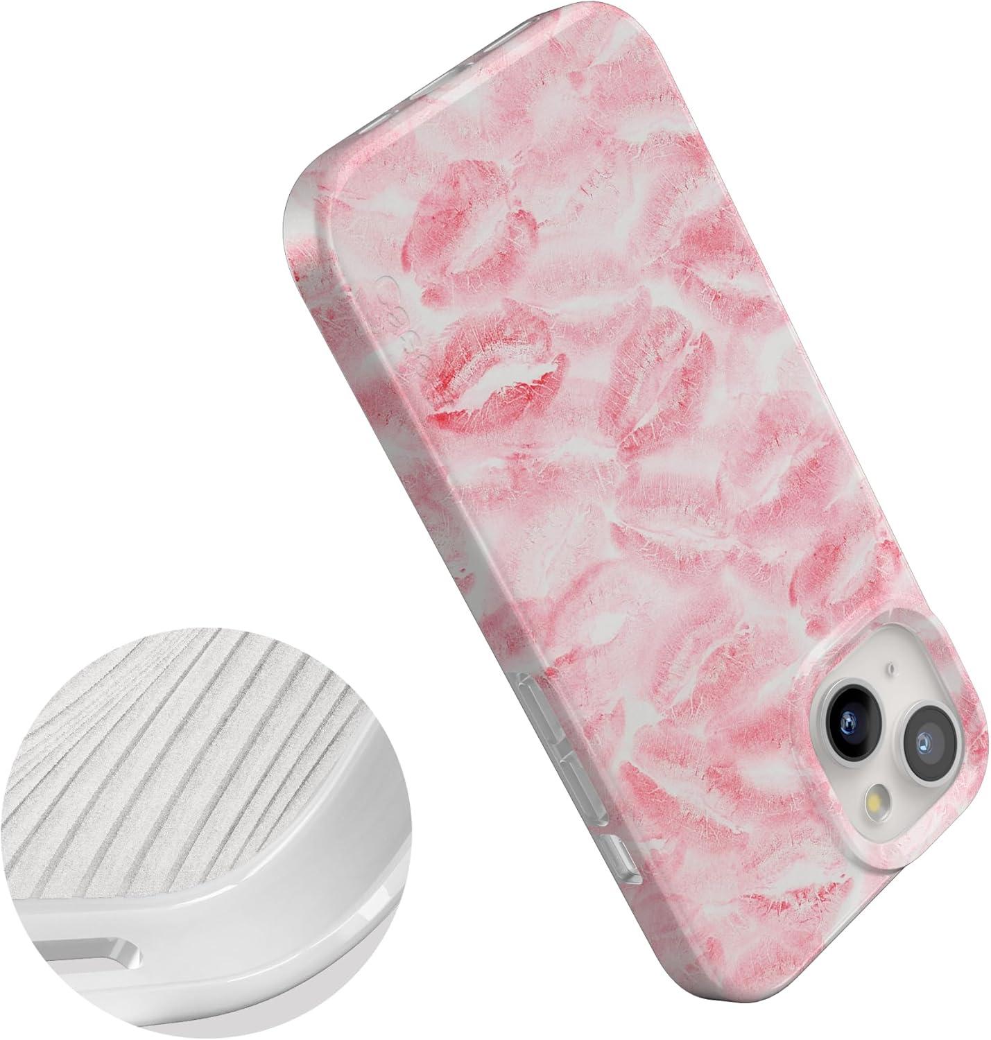 Casely iPhone 15 Case | Falling for You | Plum Floral | Compatible with MagSafe | Classic Ultra Slim Design(Sealed with a Kiss | Pink Lipstick)