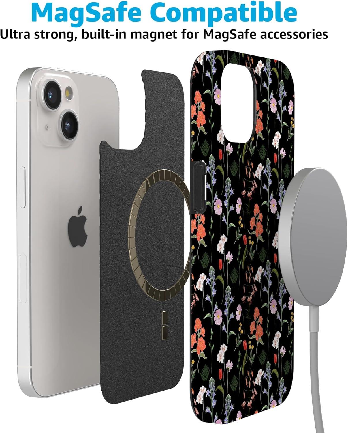 Casely iPhone 15 Case | Falling for You | Plum Floral | Compatible with MagSafe | Classic Ultra Slim Design(Secret Garden | Mixed Floral)