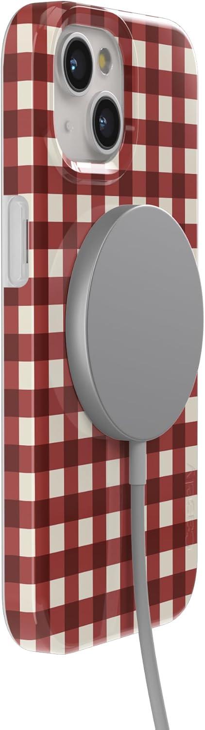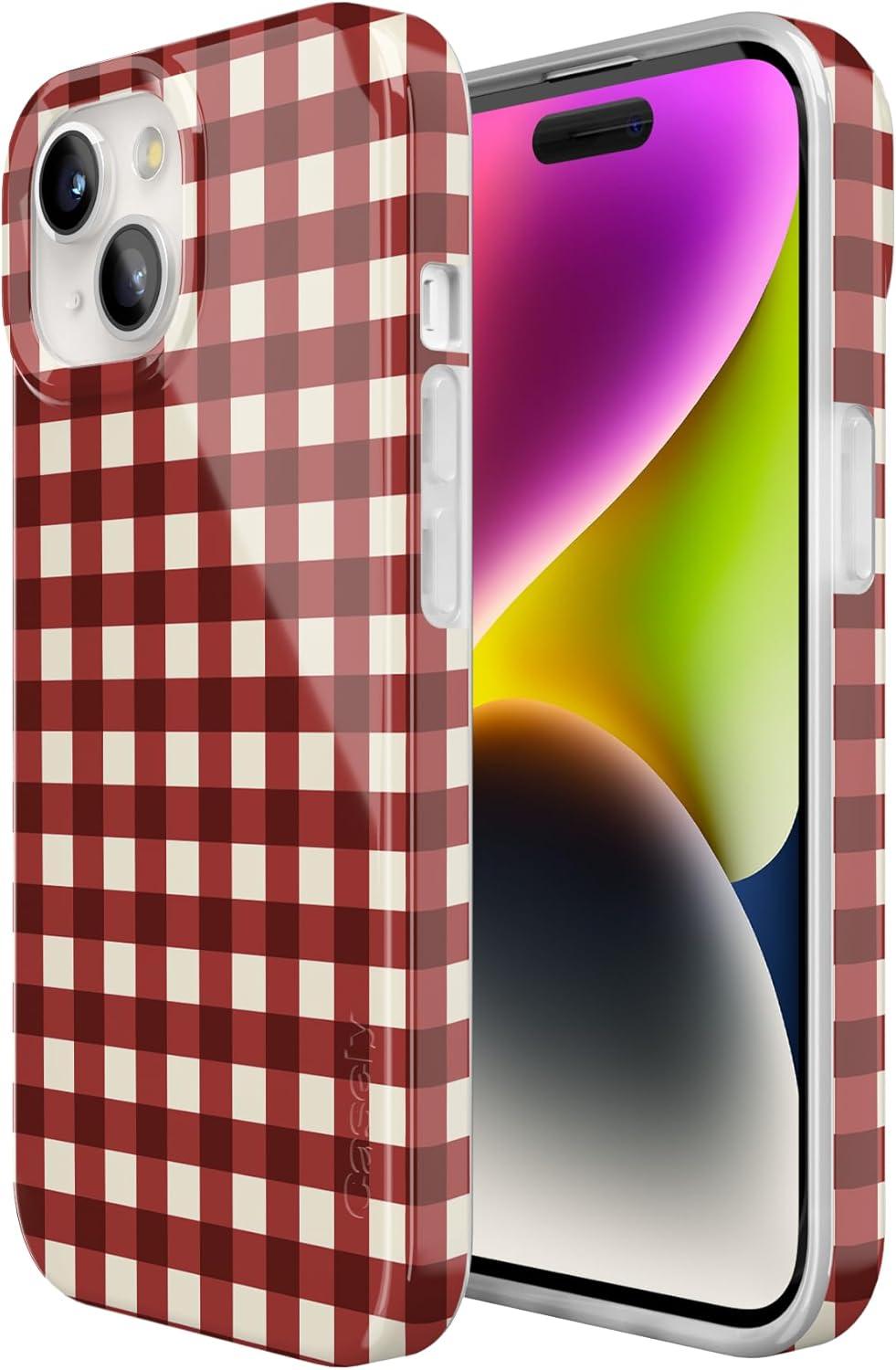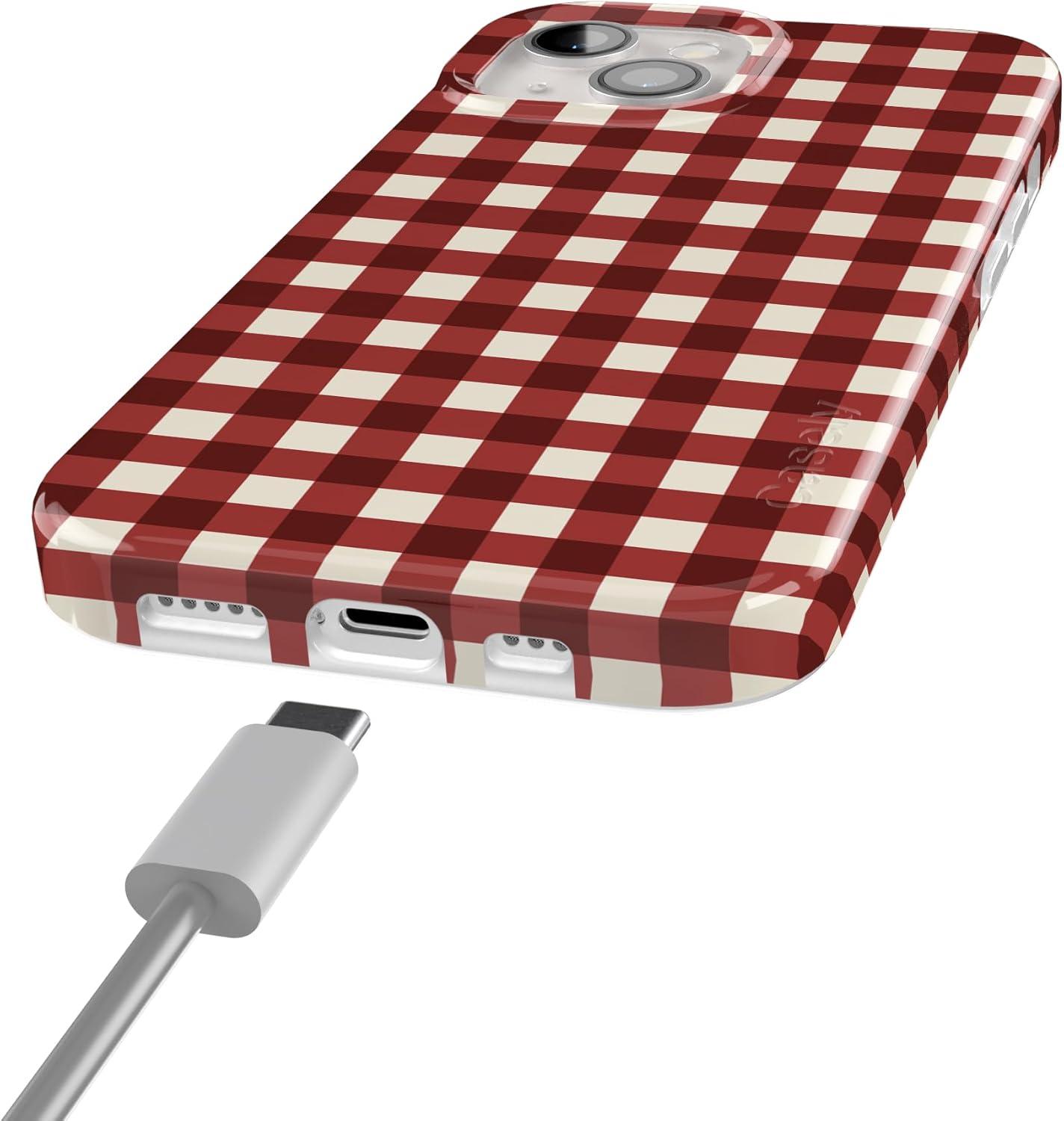 Casely iPhone 15 Case | Hanging Around | Potted Plants Floral | Compatible with MagSafe | Classic Ultra Thin Design(Checked Twice | Red Plaid)