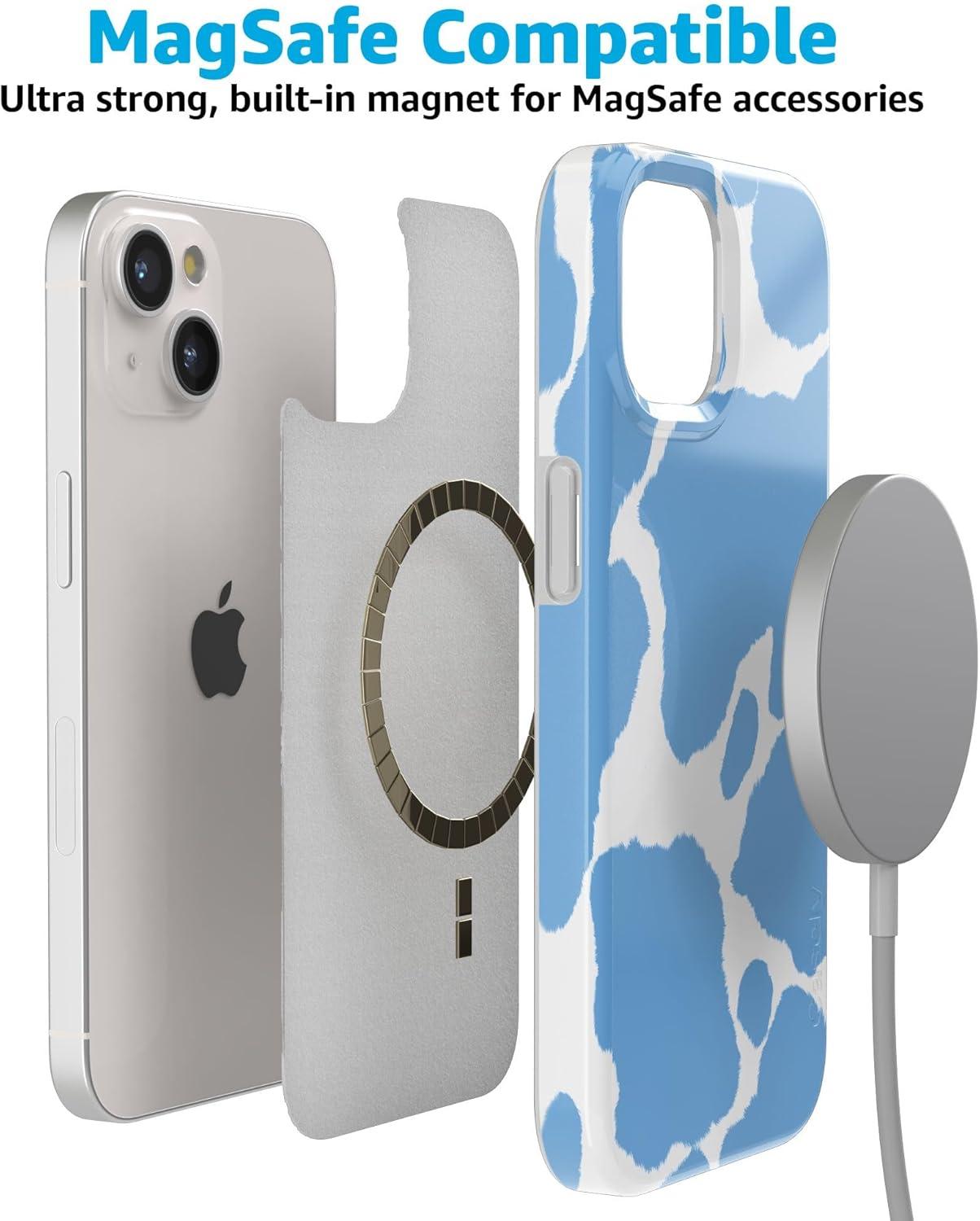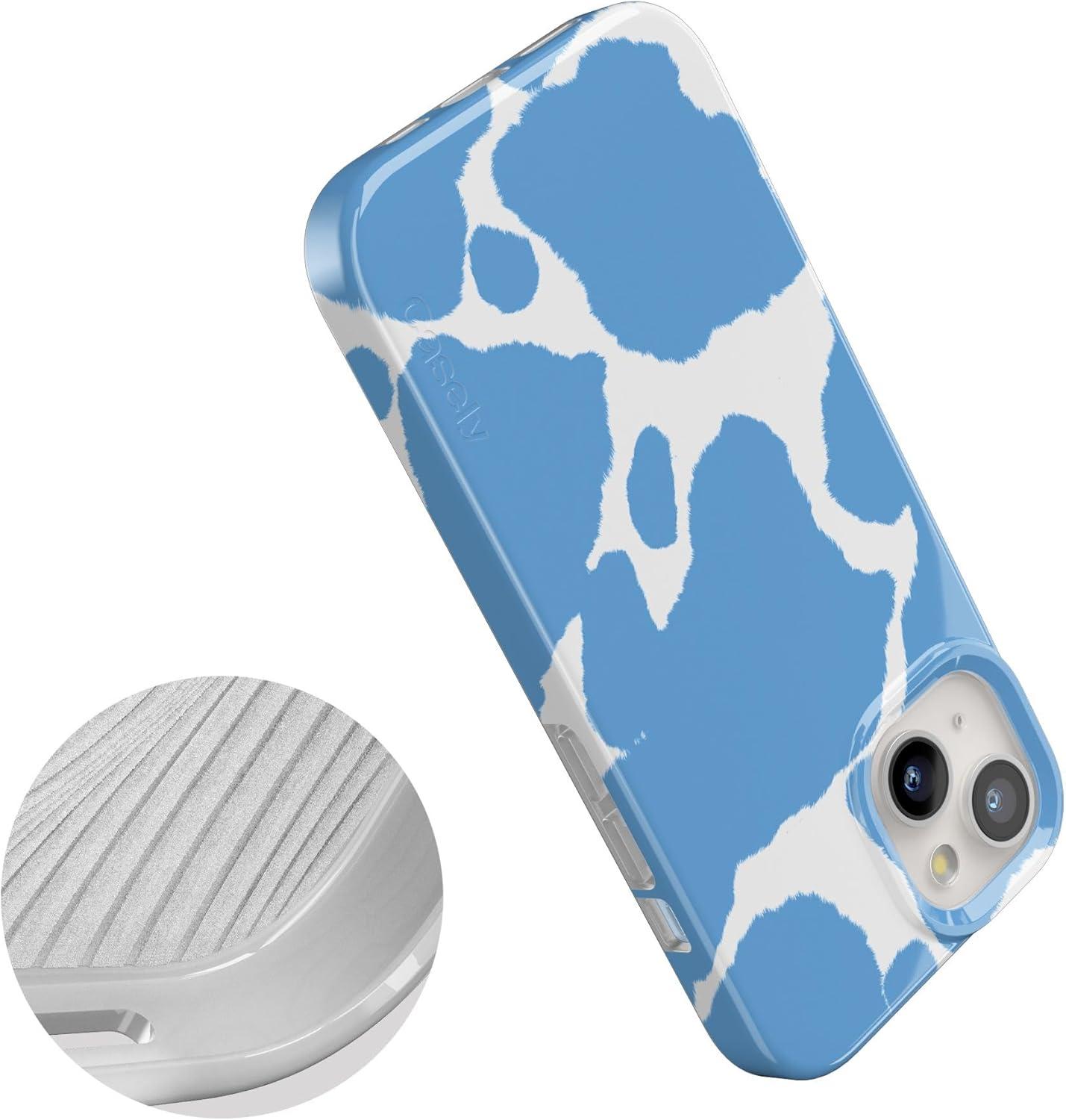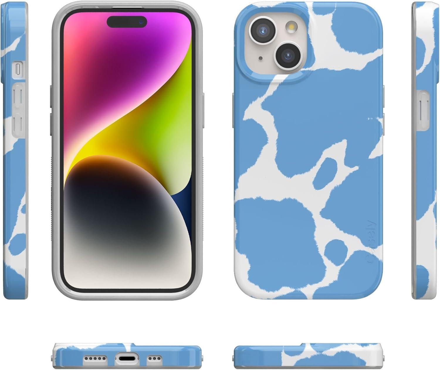 Casely iPhone 15 Case | Hanging Around | Potted Plants Floral | Compatible with MagSafe | Classic Ultra Thin Design(Current MOOd | Light Blue Cow Print)